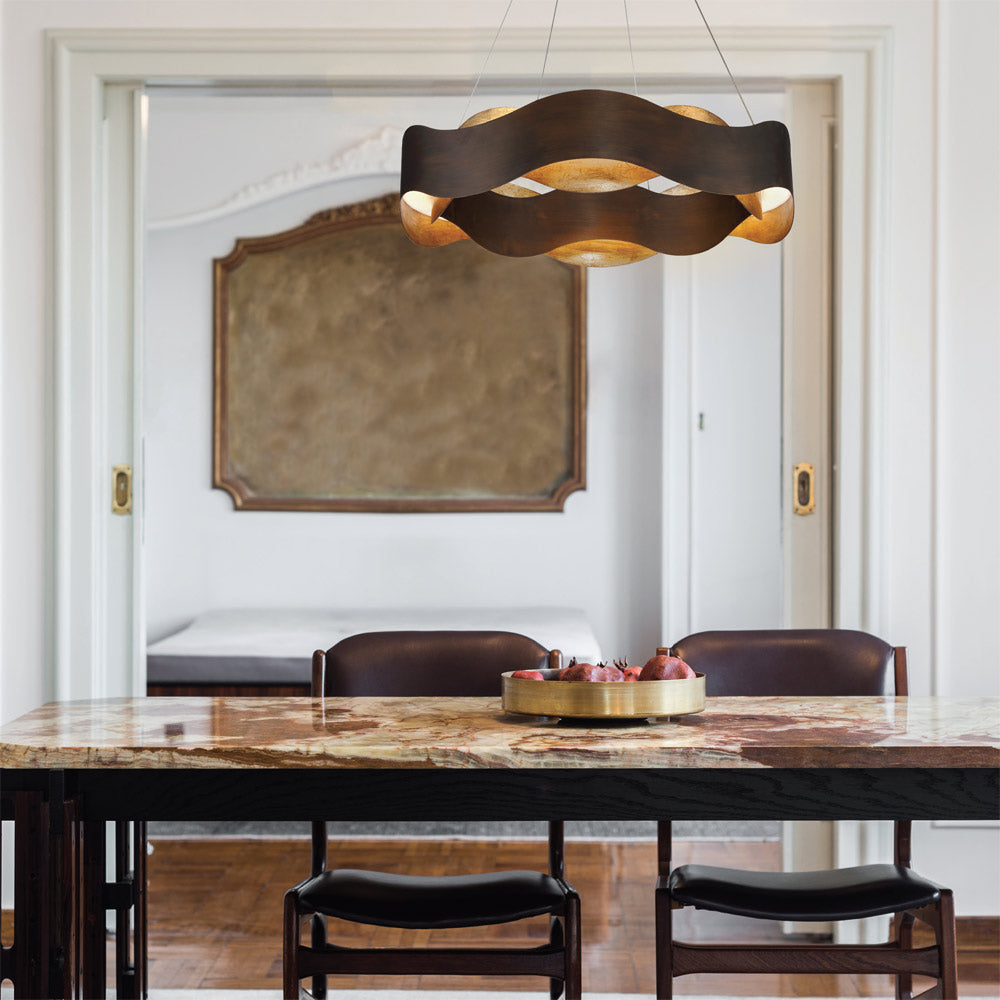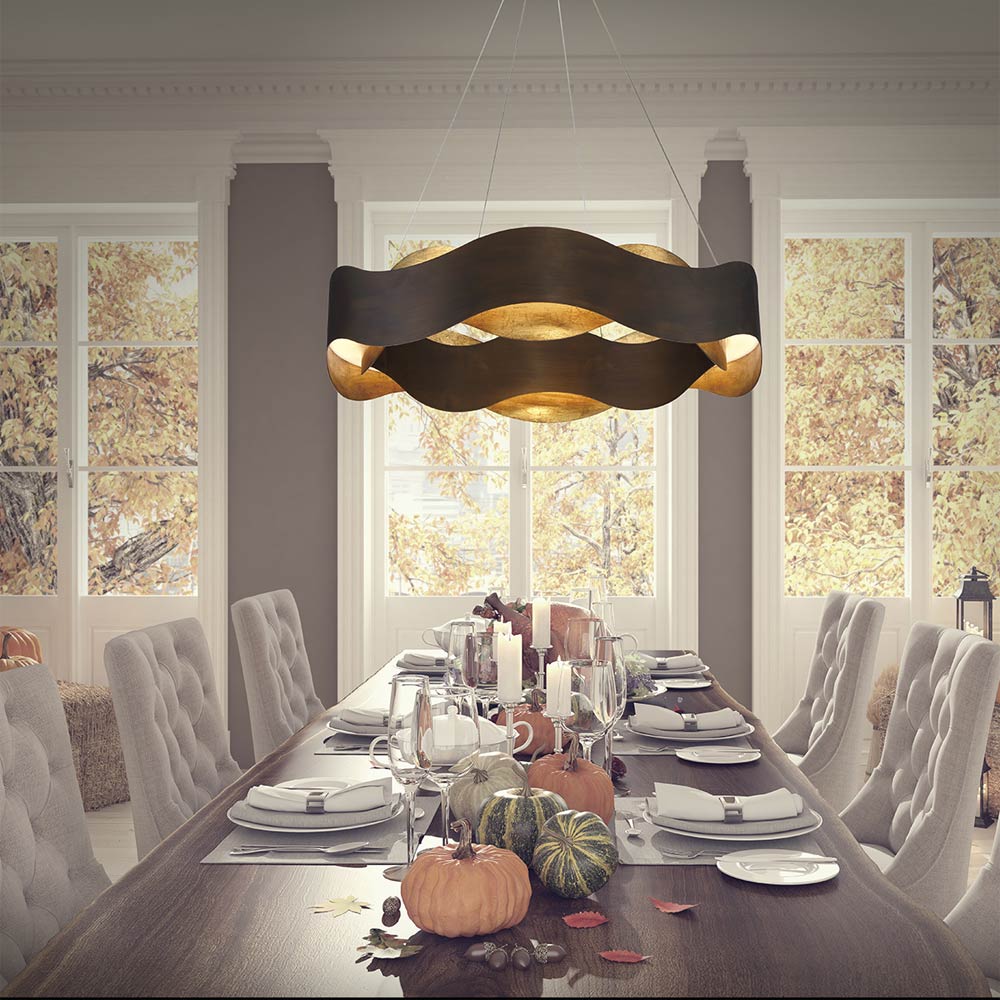 Contrasting ribbon-like strips alternate to embellish a modern space as the Vaughan LED Chandelier from Eurofase delivers sheer charm and style. Choose the seemingly endless waves of a fixture adding refracted lighting and energy-efficiency. This artisanal fixture is both charming and tasteful.