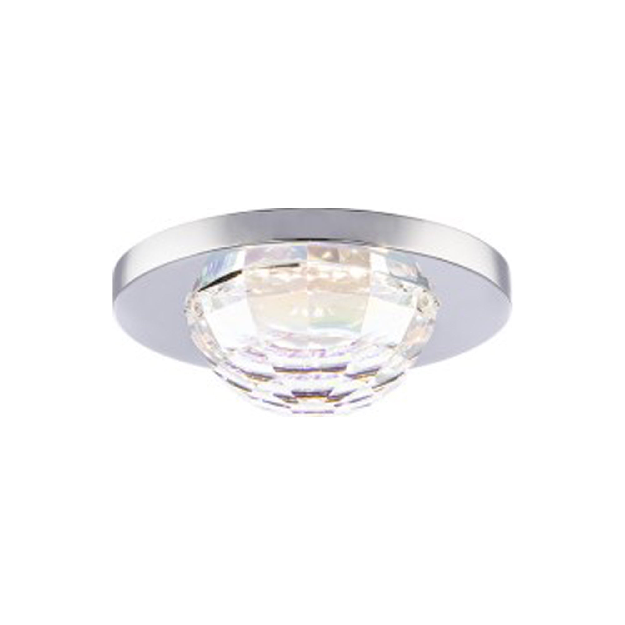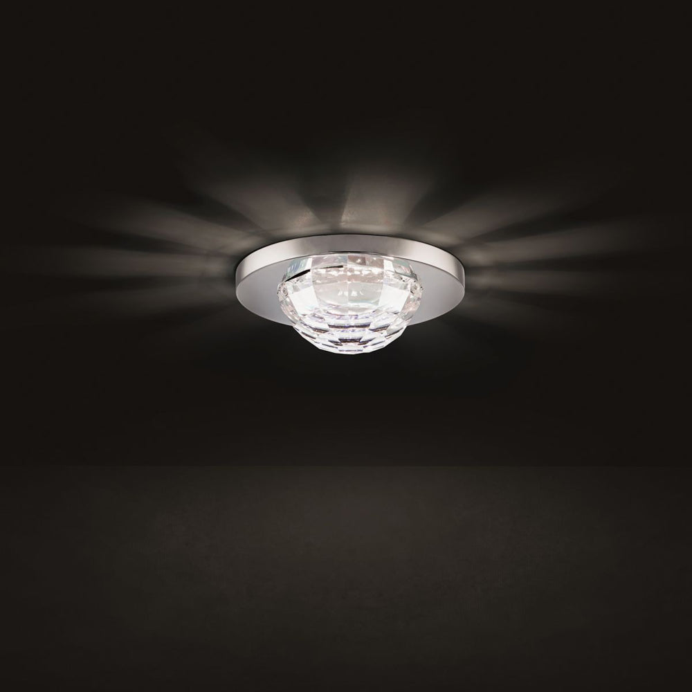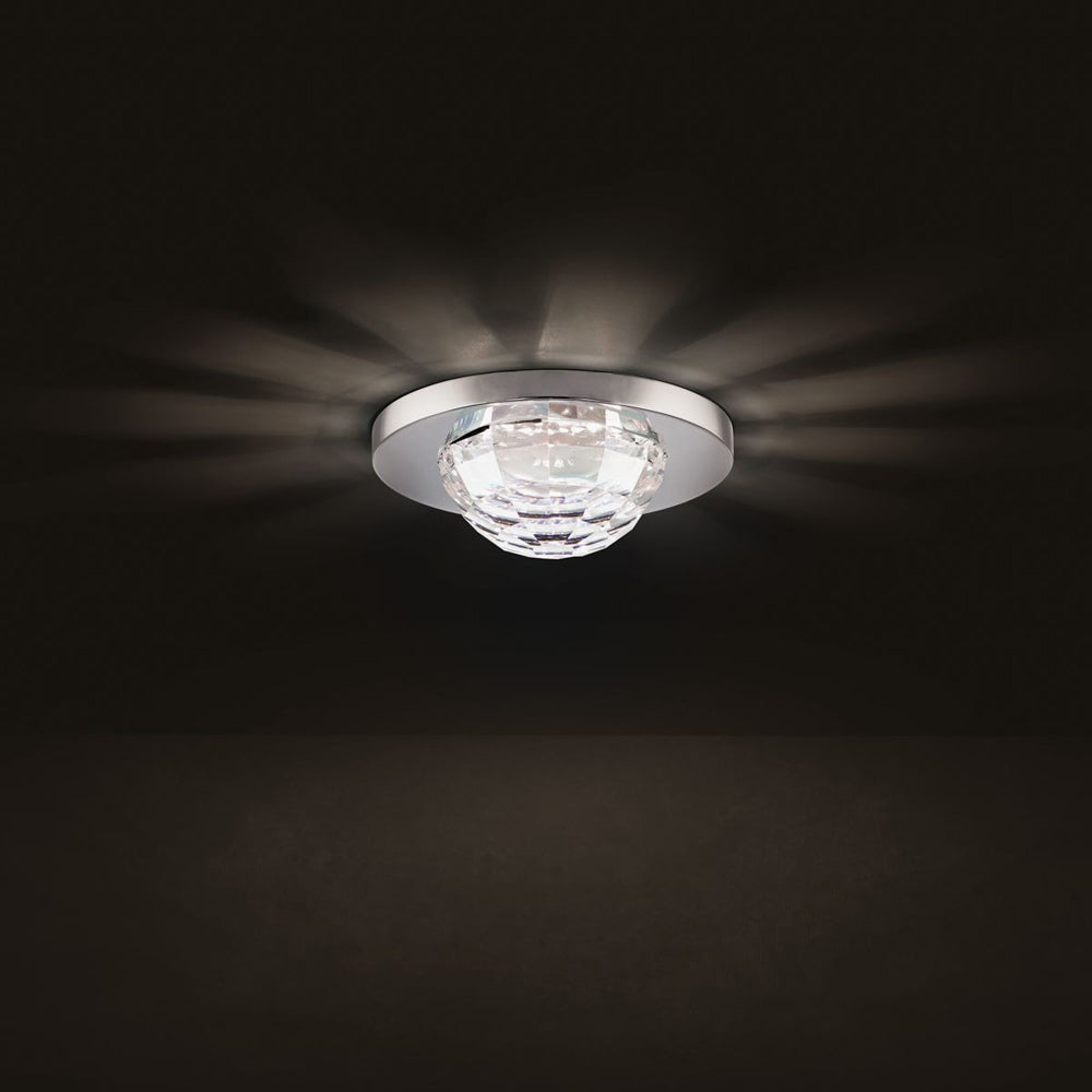 The Vega LED Recessed Light from Schonbek repurposes conventional fixture designs, creating a jewel-like example of decadence in functionality. A rounded shade features Radiance Crystal, mounted with a luscious polished chrome canopy. Take in a chic silhouette of a light fixture offering both energy efficiency and a sculpted gem motif.