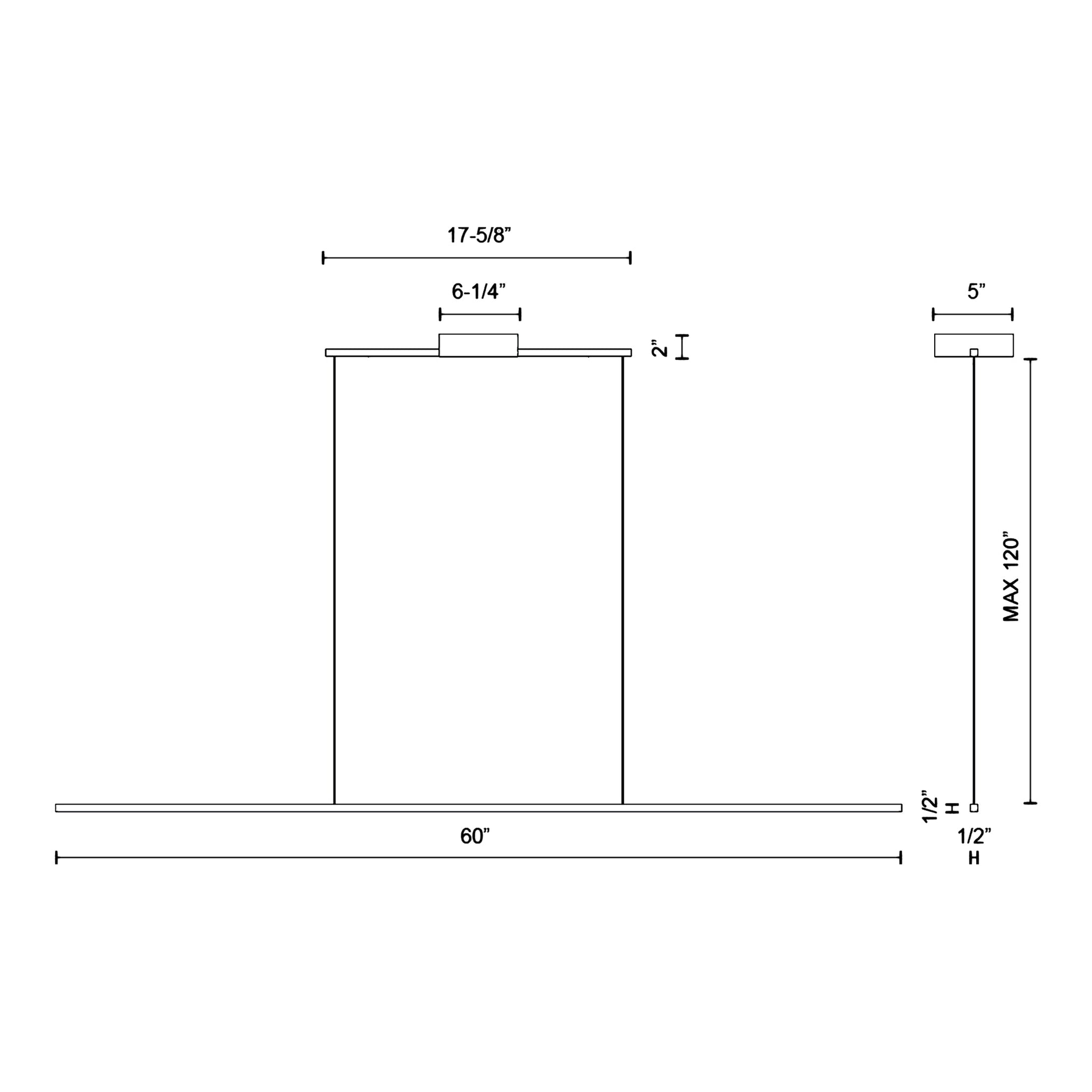 - 60-Inch: 60"W X 0.5"H; 122.5" max height