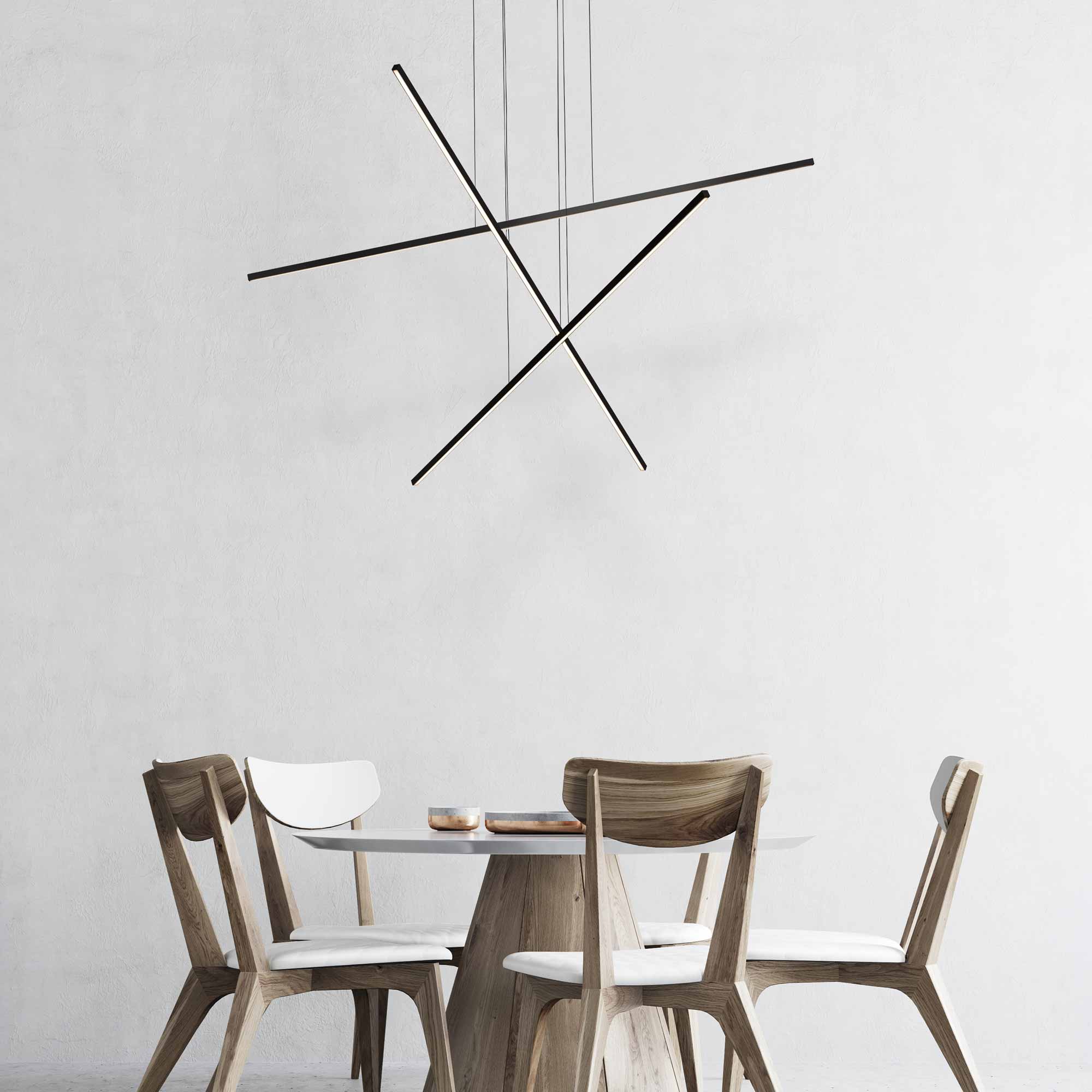 A simple linear silhouette makes a statement in a modern space when the Vega Minor LED Multi Light Pendant Light from Kuzco Lighting highlights a living space or bedroom. Capture the basics of a pickup-stix styled motif available in finish options that customize any space.