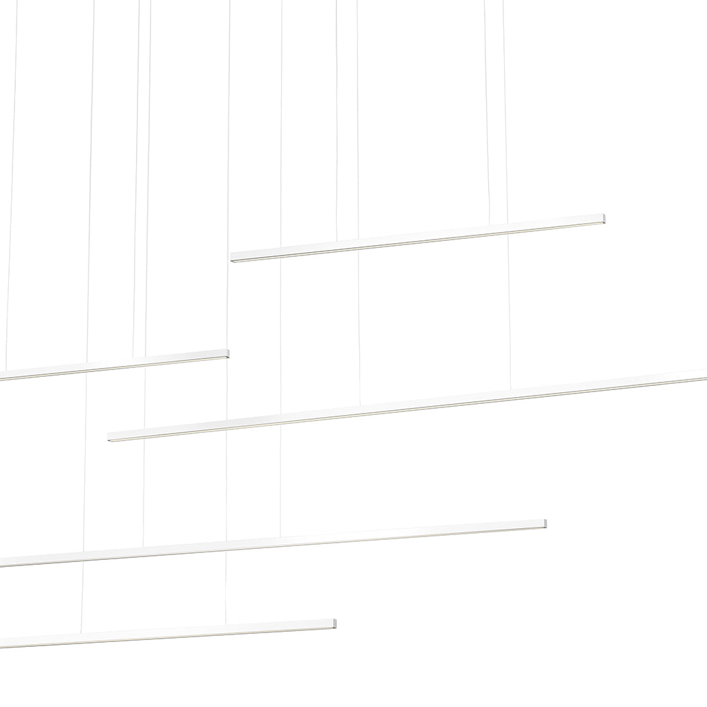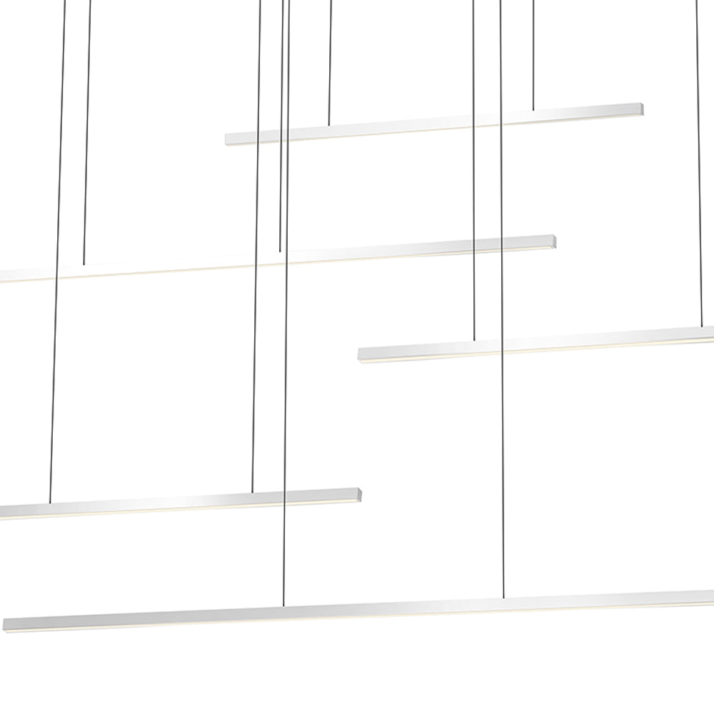 A cluster of disparate glowing lines have the appearance of levitation and movement, each element suspended by exceedingly fine cables. In a singular instance, the Vega Motion LED Multi Light Pendant Light is a sculptural composition and, when used in tandem, an architectural installation. Available in two sizes and three finishes.