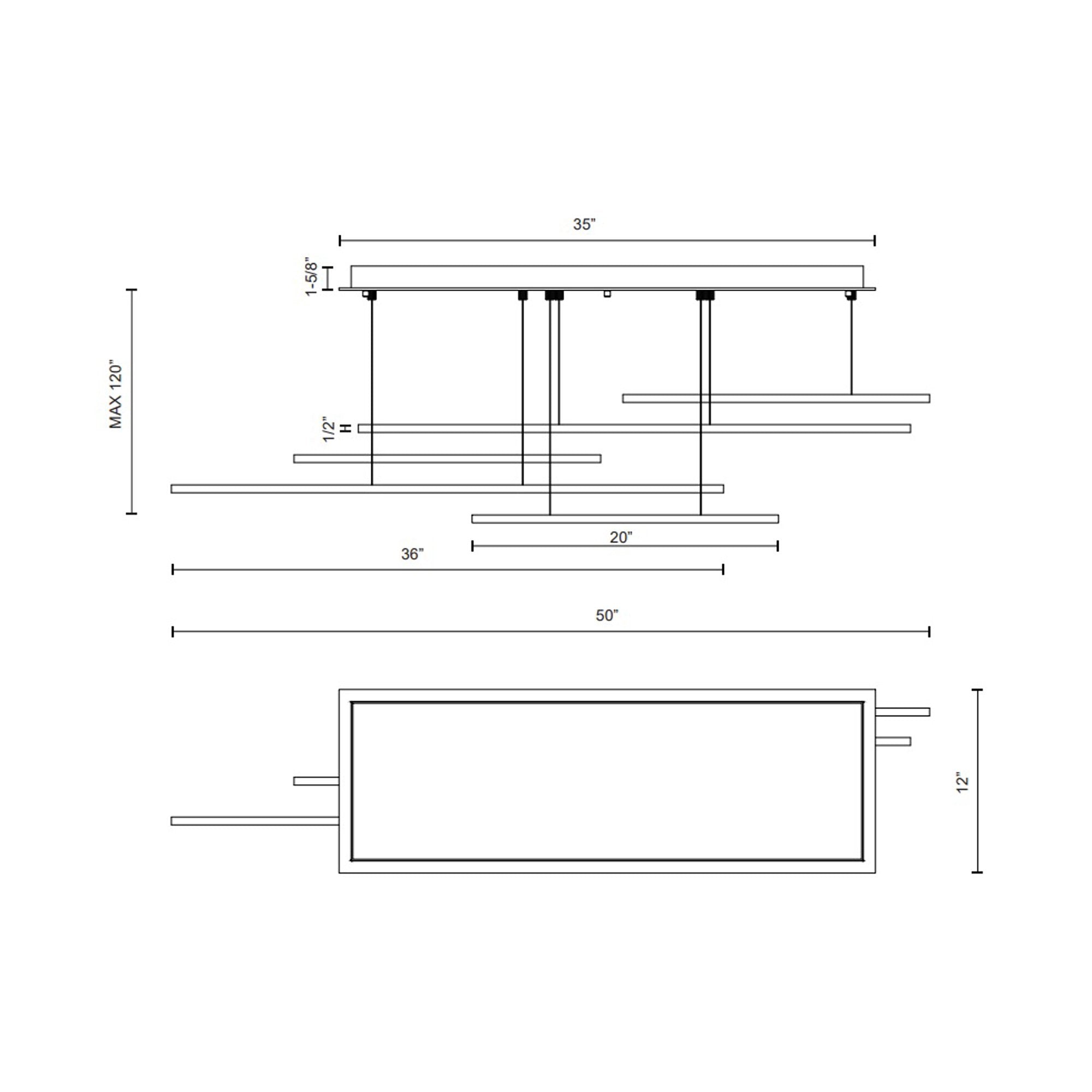 - 50-Inch: 50"W X 0.5"H; 122.13" max height