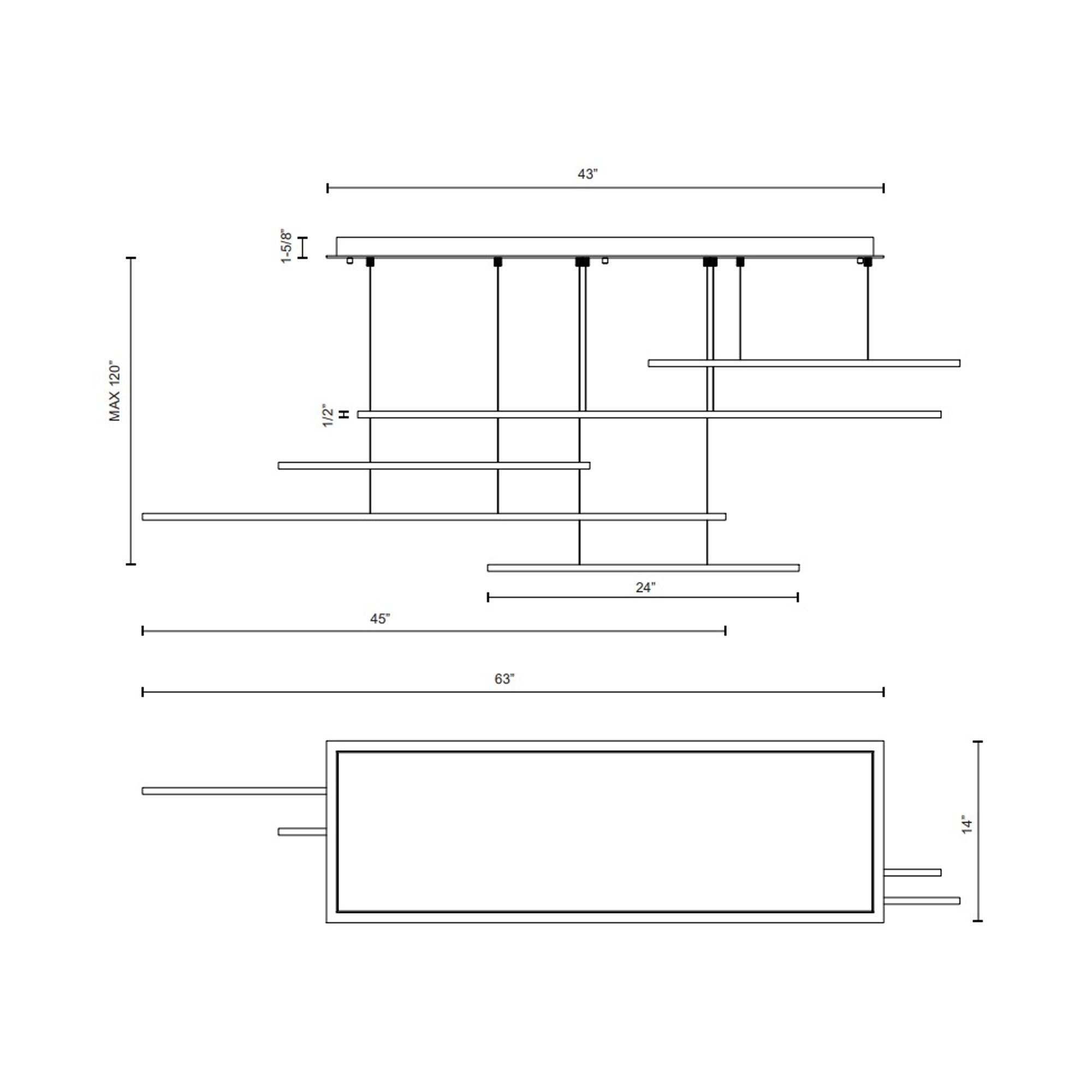 - 63-Inch: 63"W X 0.5"H; 122.13" max height