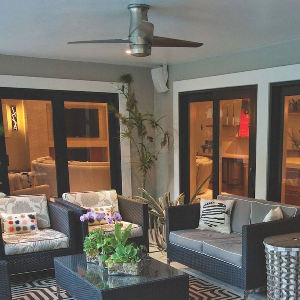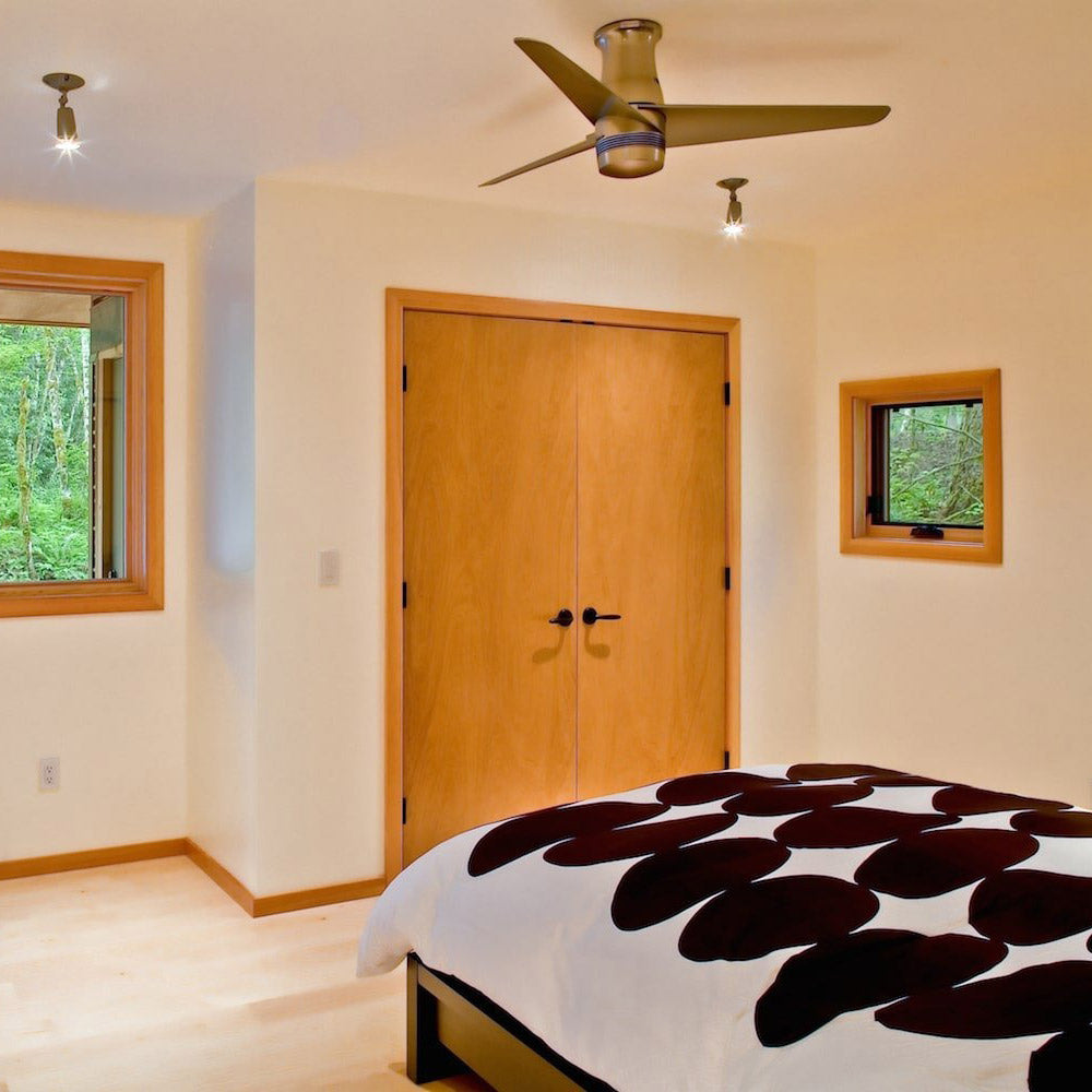 The Velo DC Flush Mount Ceiling Fan from Modern Fan Company is a superb choice for lower ceilings and more compact spaces. Its three-blade design features tapered blades and a shapely DC motor fashioned of die cast aluminum and adding bonuses including six rotation speeds with a reverse function. This fan is suited for mounting on flat ceilings only.