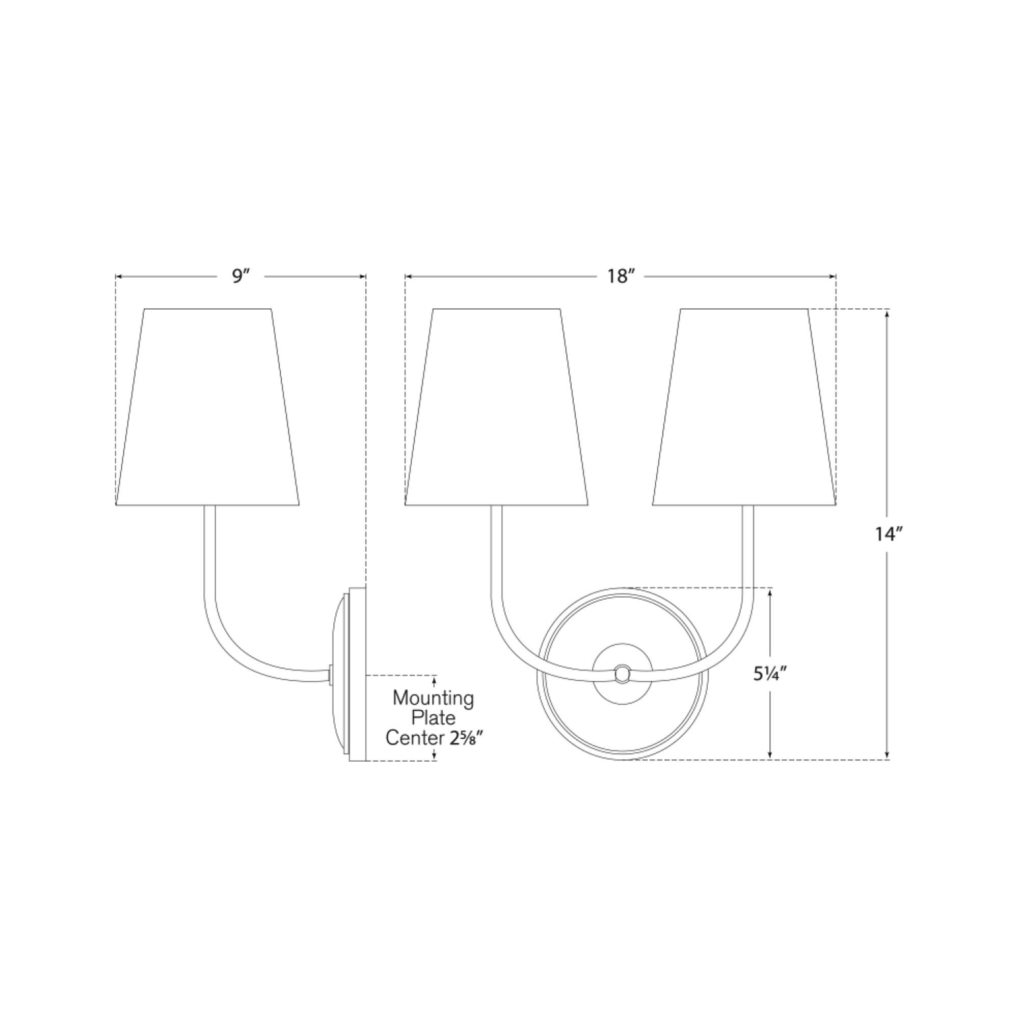 - 2-Light: 2 X 40W 120V E26(medium base) A19 incandescent lamps (not included)