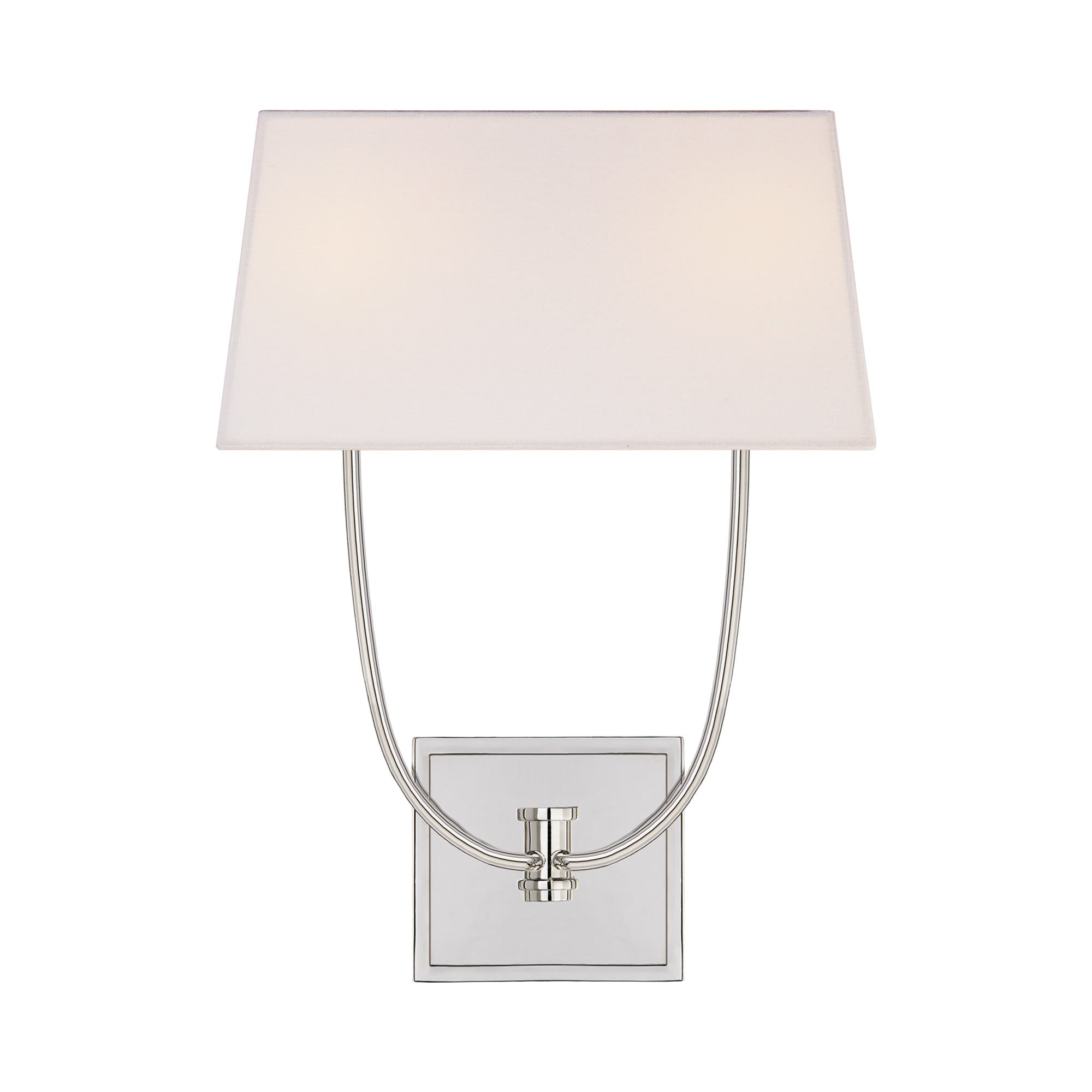Design-forward styling offers an artistic advantage to the Venini Double Wall Light from Visual Comfort Signature, creating a perfect blend of decadence and simplicity to fit any mood. This metal fixture focuses on shaping and symmetry to deliver an inspired ambiance in a hallway or bedroom. Choose this contemporary fixture and enjoy maximum lighting emitting from candelabra bases filtered by a wide linen shade.