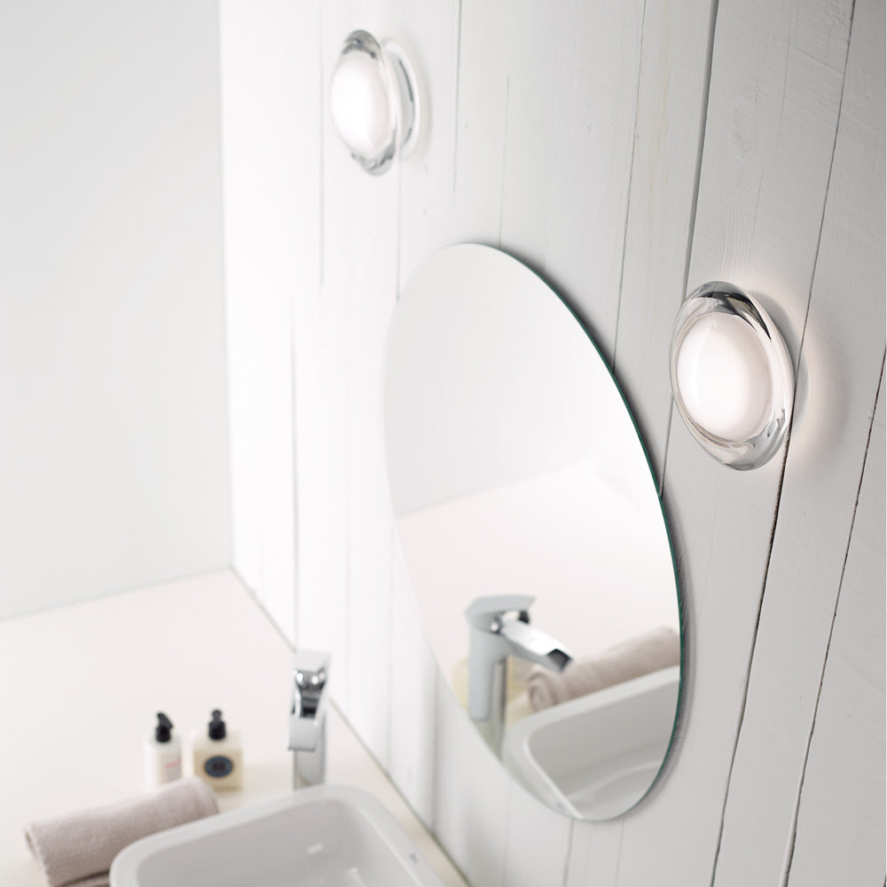 An elegantly minimalist design aesthetic retains simplicity to effect style, casting glowing, warm illumination in a bath or living space. The Venus Indoor/Outdoor Ceiling/Wall Light from Carpyen is versatile yet elegant, conforming to easy silhouetting with a circular shape and glass construction that radiates energy-efficient lighting.