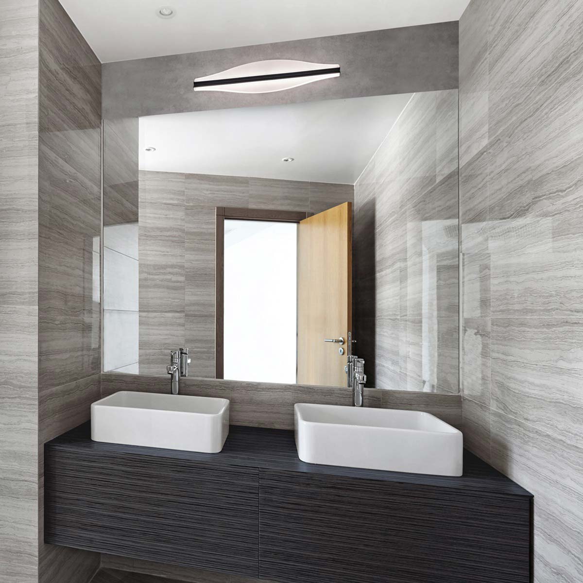 An intriguing bath luminaire that glimmers with a complimentary sublime glow.