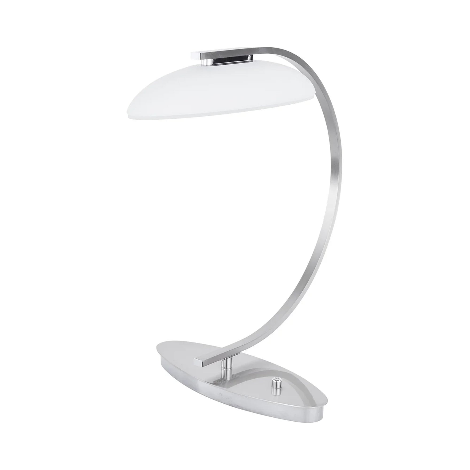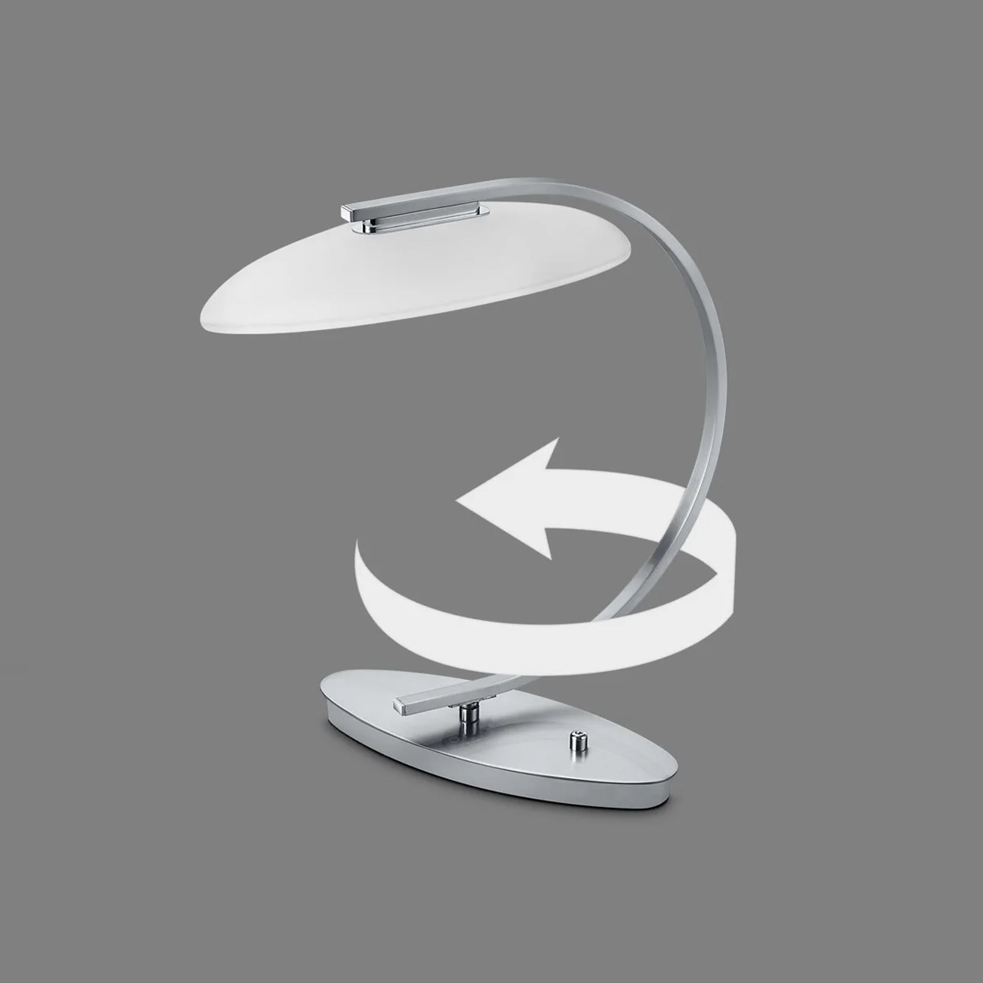 Evoking a cresting wave, the Vetro LED Table Lamp from Zeitlos pairs a softly rounded, oblong shade with a C-shaped arm to bring sophisticated presence to your living area or home office. The shallow shade hosts an integrated, energy efficient LED light that cases a warm glow with a lovely 2700K color temperature.