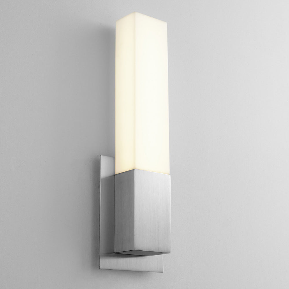 A column of light emanates from the sleek and clean squared silhouette of the Vewga LED Bath Wall Light from Oxygen.