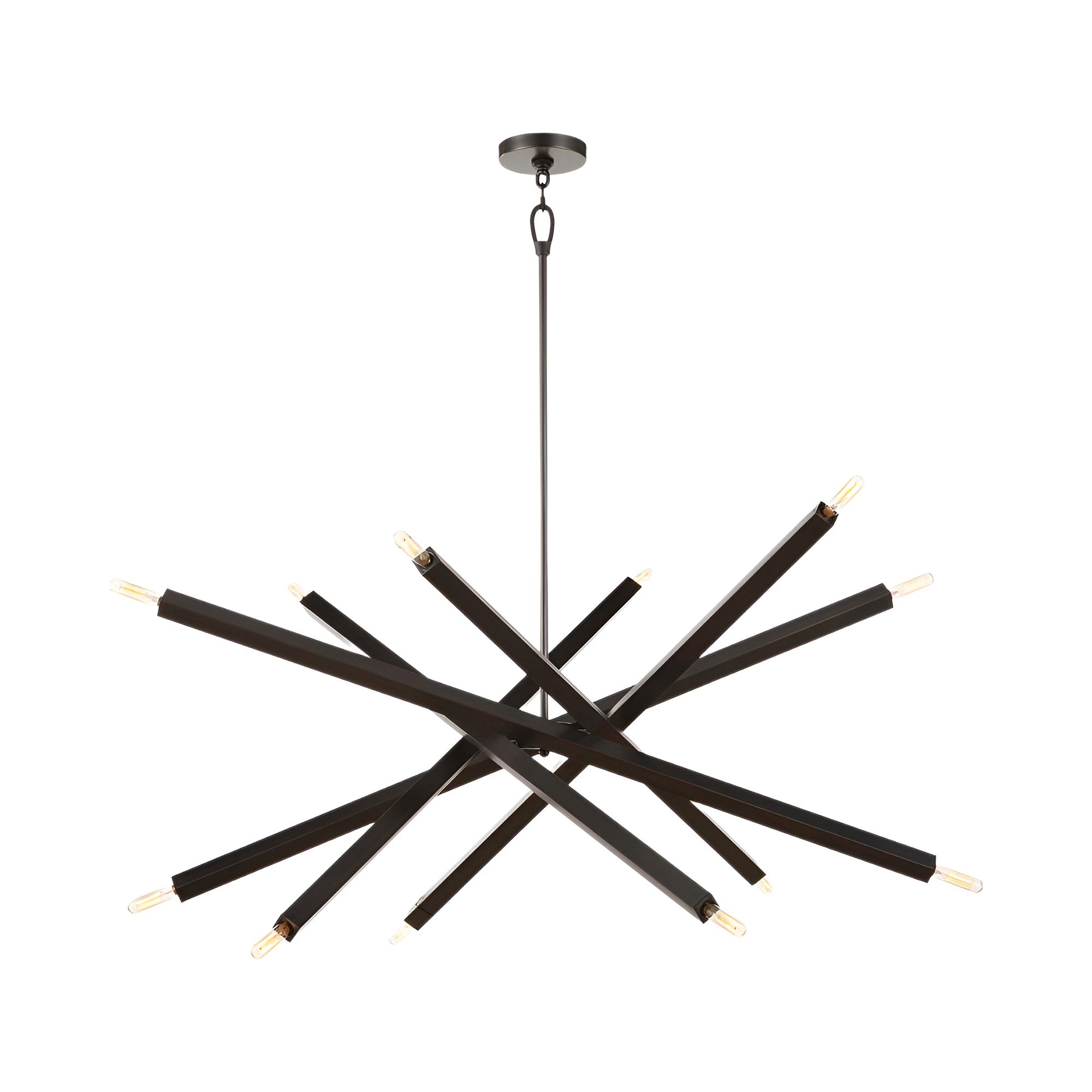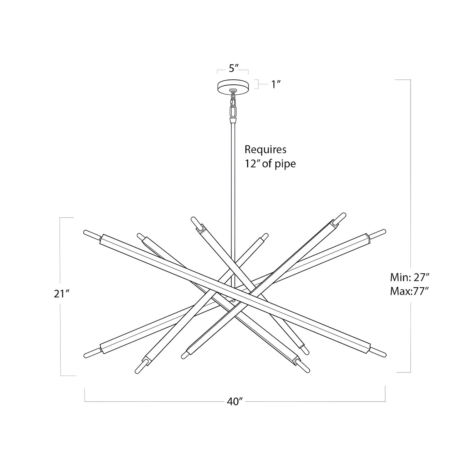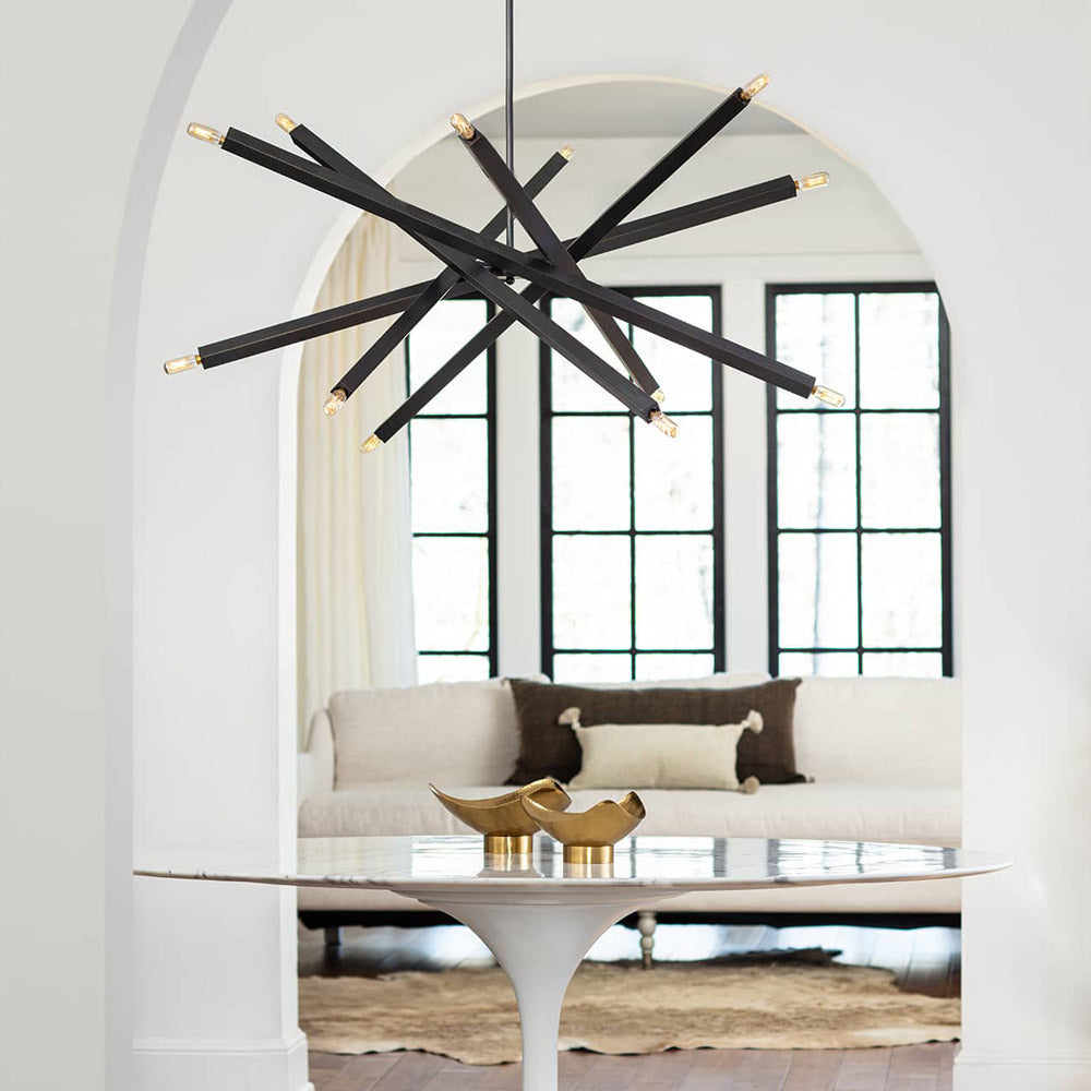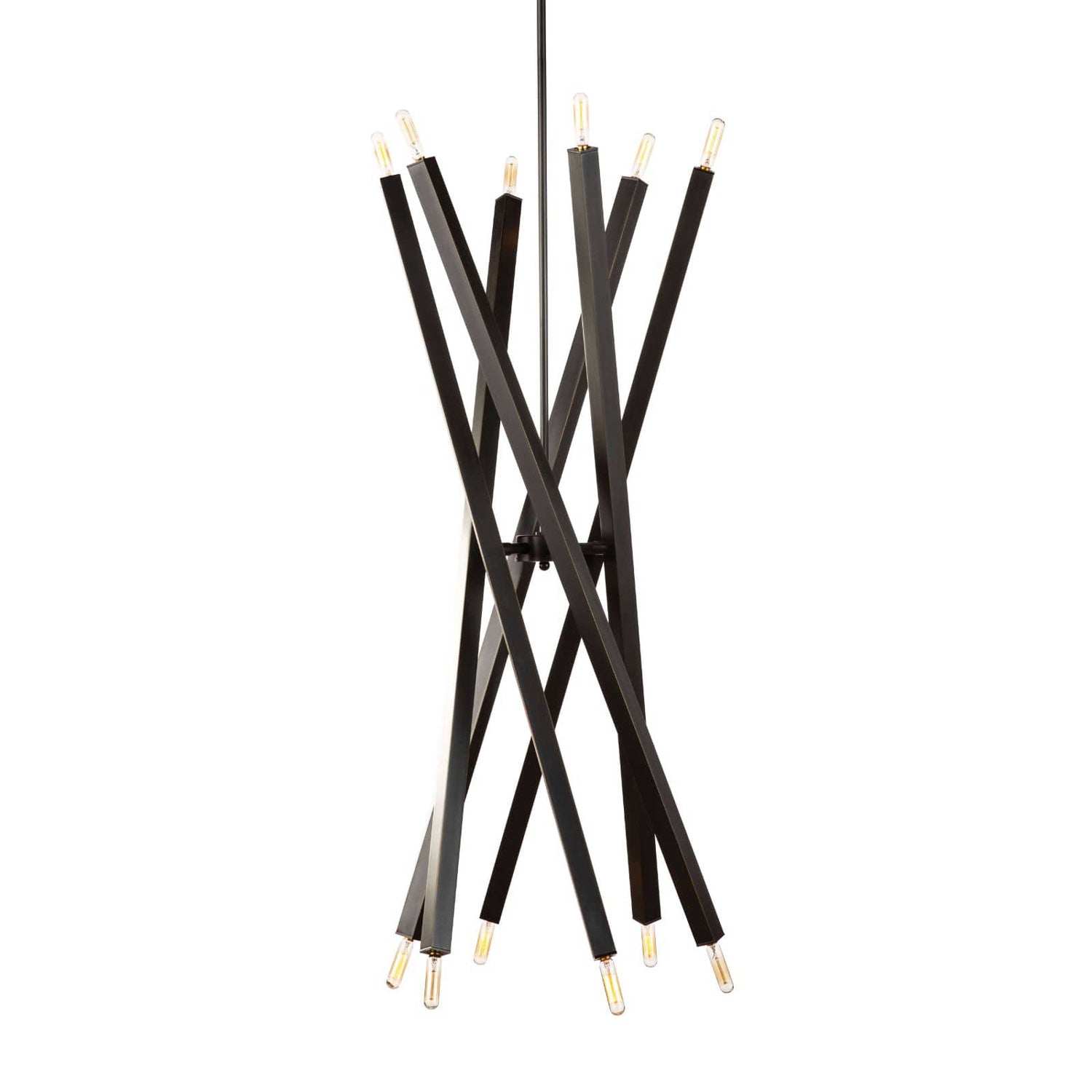 Organic stick-like silhouetting creates optical elegance as the Viper Chandelier from Regina Andrew shakes up a modern space. Metal rods intersect in an orderly yet abstract fashion, delivering a work of art that hangs from the ceiling and illuminates a hallway, foyer, or living space. Add decorative light bulbs to tailor this fixture and match a customized setting.
