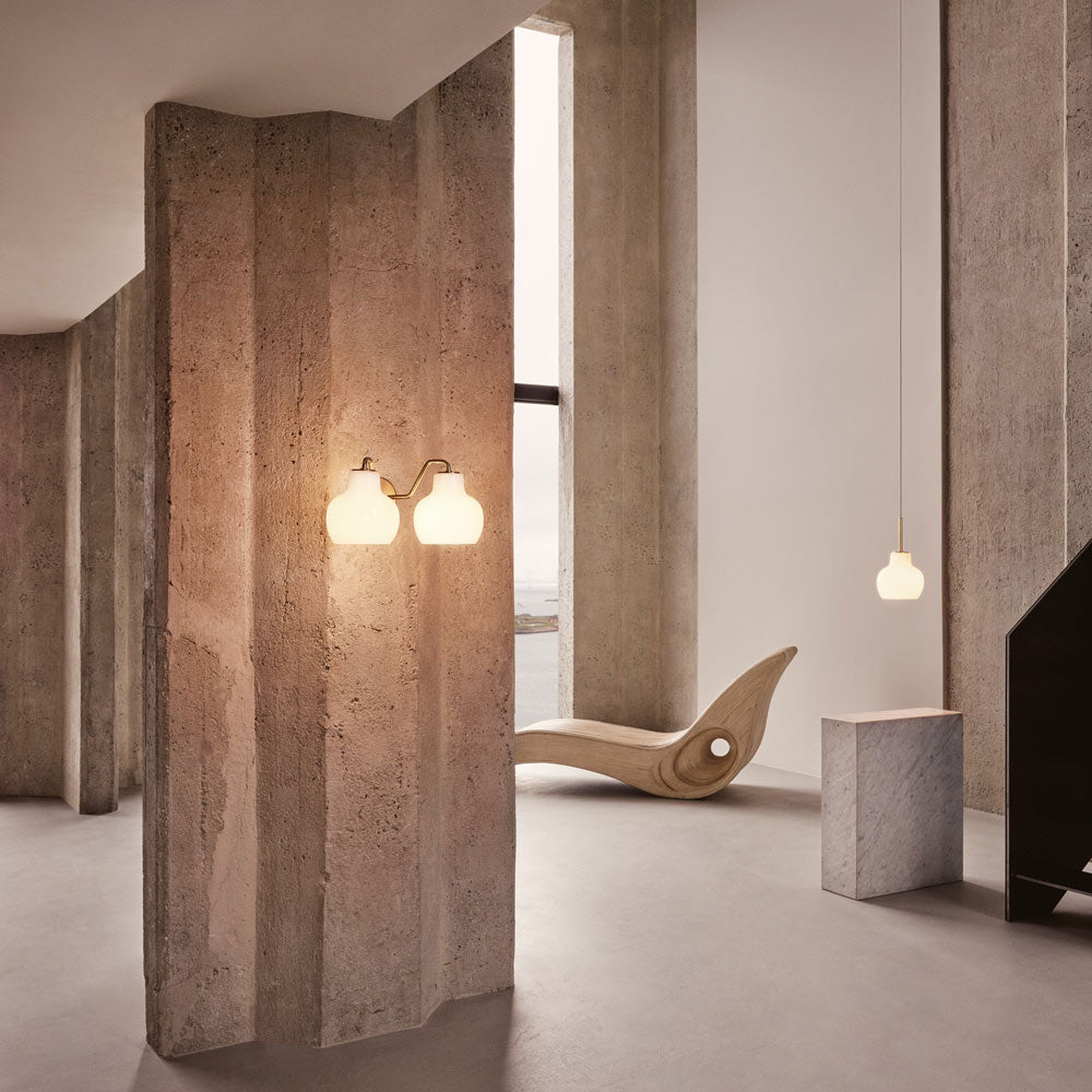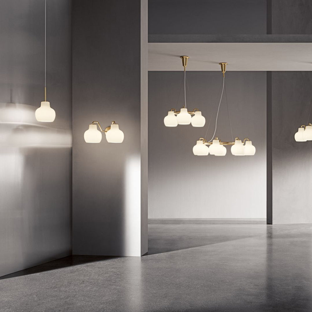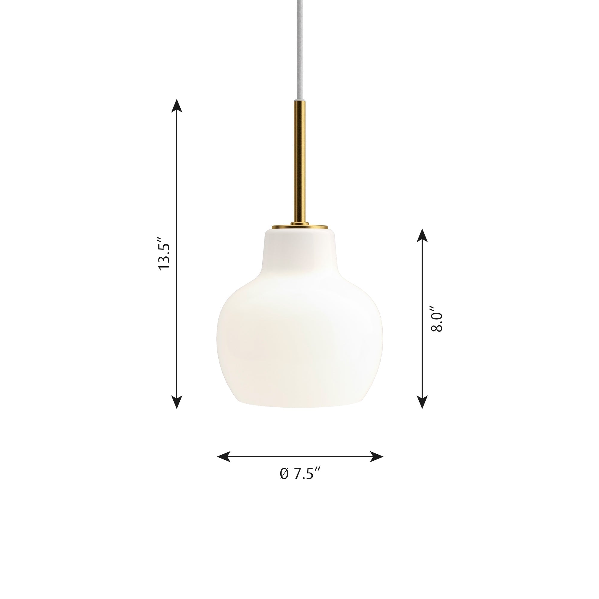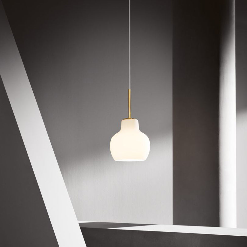 Glossy opal glass brings instant elegance to the VL Crown Pendant Light from Louis Poulsen. Enhanced with brass hardware for warmth, the shade delivers engaging downward illumination as it makes a stylish statement over a kitchen island or in an elegant living space.