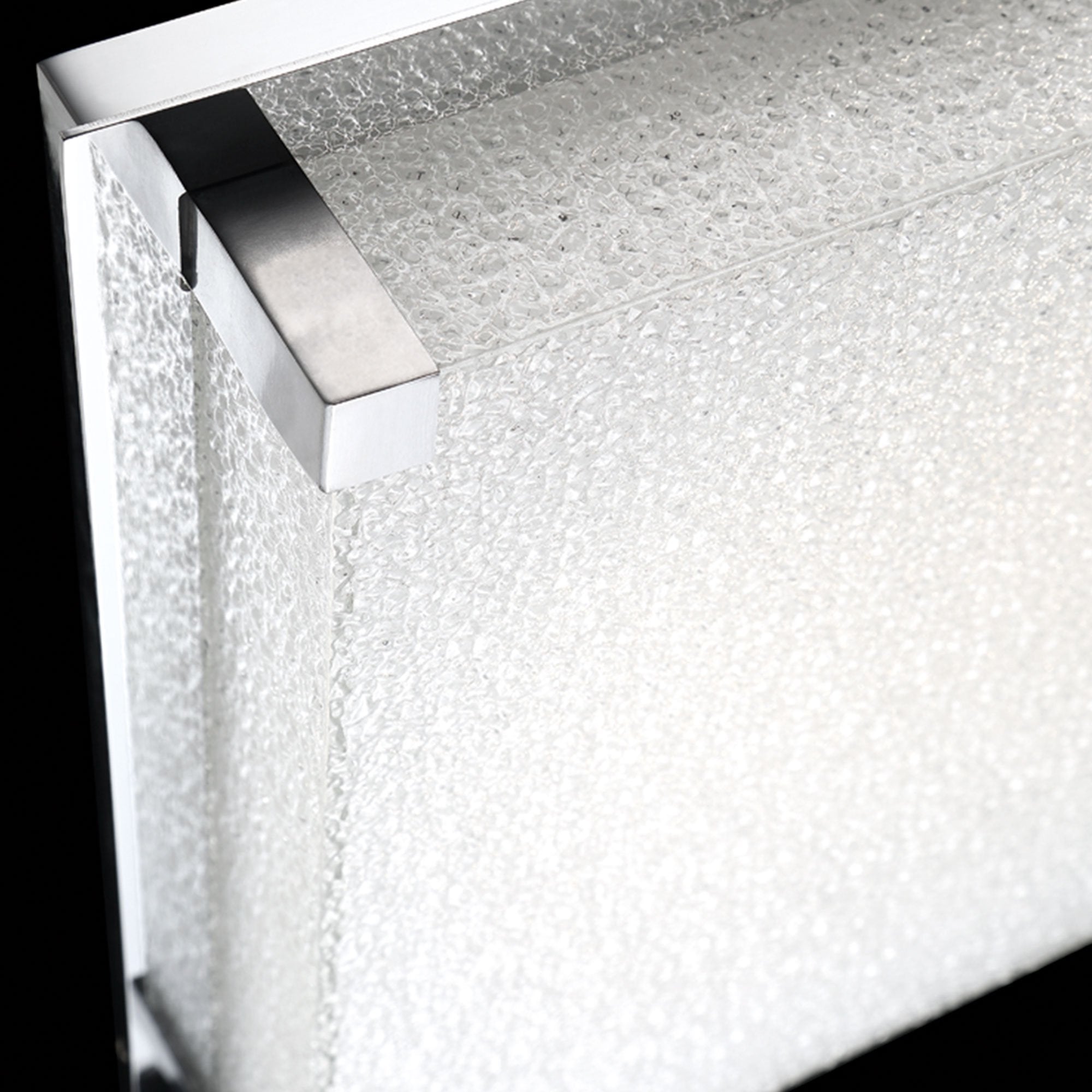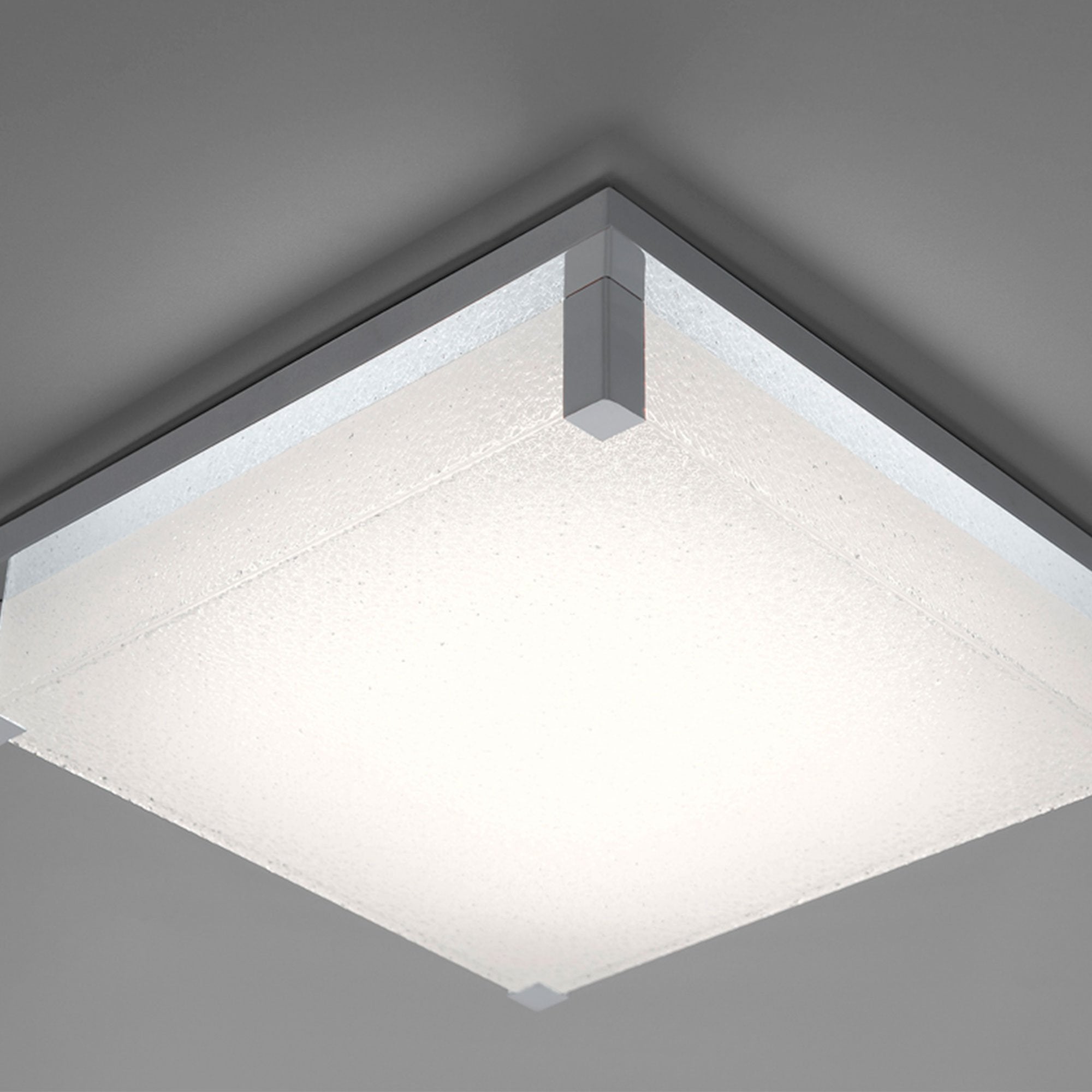 Architectural accents and frame add a sophisticated aesthetic to the sparkling glass lens. The versatile luminaire can be placed as a centerpiece on a ceiling, wall or both. Proprietary LEDs fill the room with even, shadow free illumination and subtle glow.