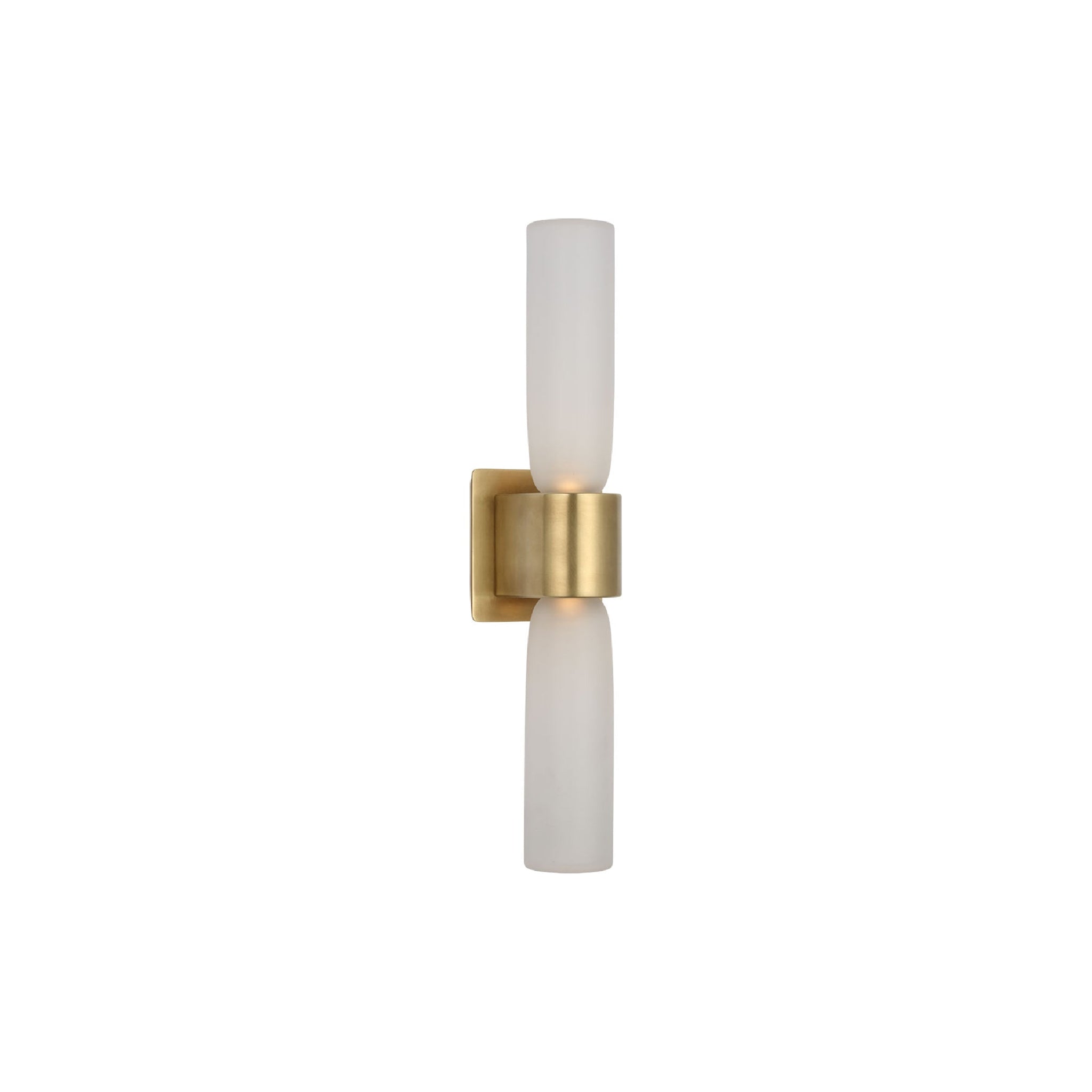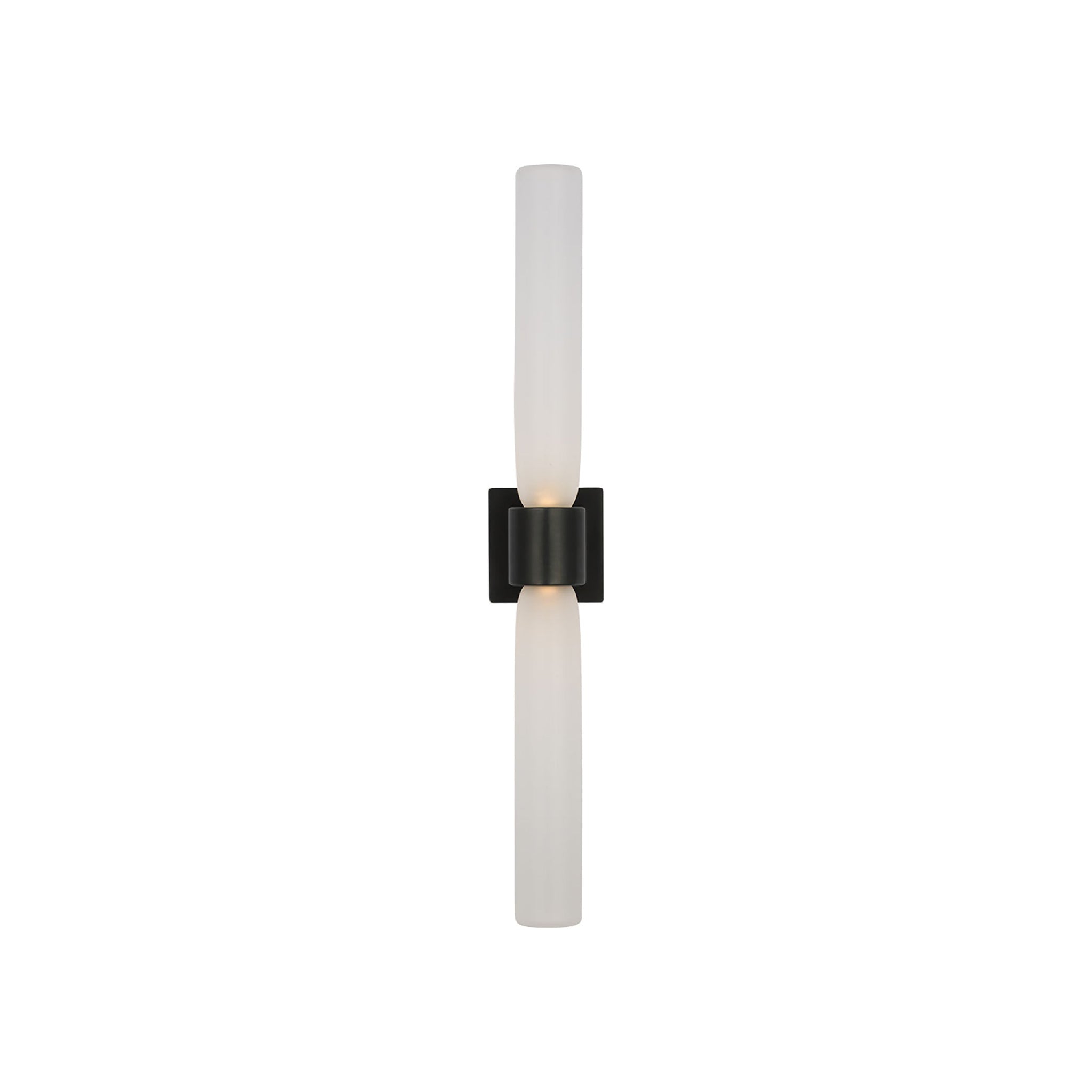 The Volver Double LED Wall Light from Visual Comfort Modern is an easy call when it comes to outfitting a casual space with a sophisticated yet low-key light source. A dual candlestick motif is updated and minimized with an ornate metal wall holder and clear etched glass tapered shades. Energy-efficient illumination flows in all directions, highlighting a living room, hallway, or bedroom.