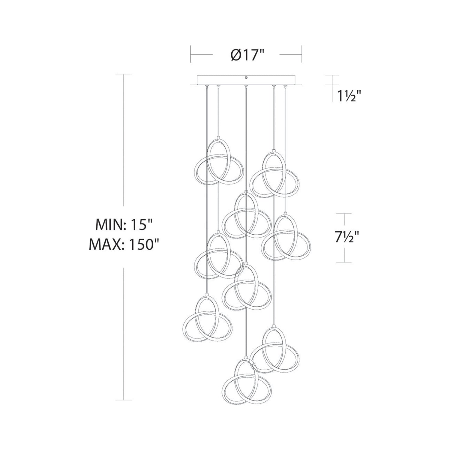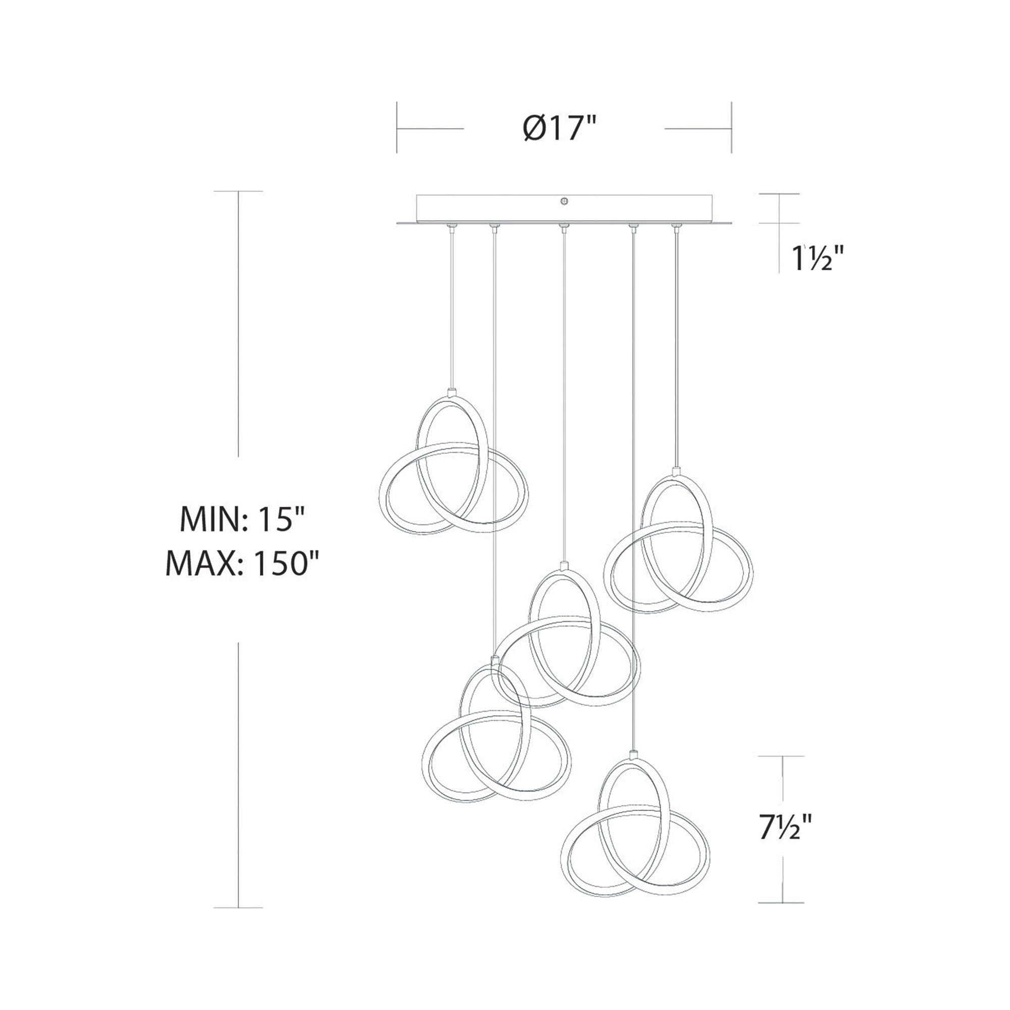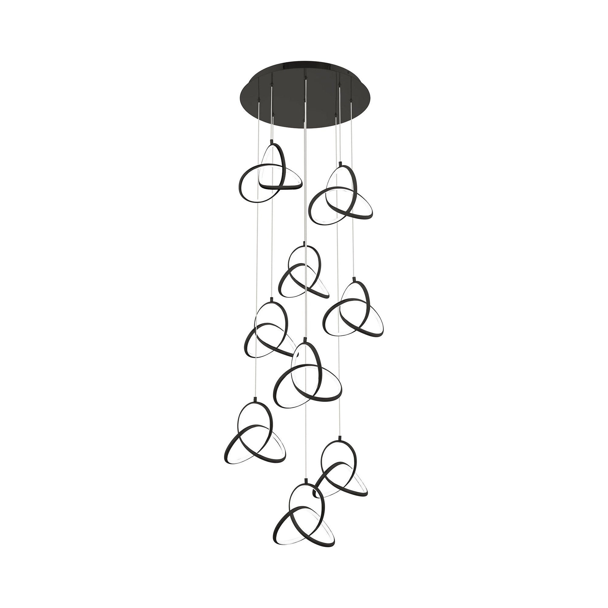 An unapologetic festive ribbon aesthetic brings artistry in functional form to a contemporary space. The Vornado LED Multi Pendant Light from dweLED dabbles in character-rich loops of aluminum, hand-crafted and attached to silicon diffusers glowing with energy-efficient lighting. Nearly stealth adjustable cables offer a host of customizing for your special space.