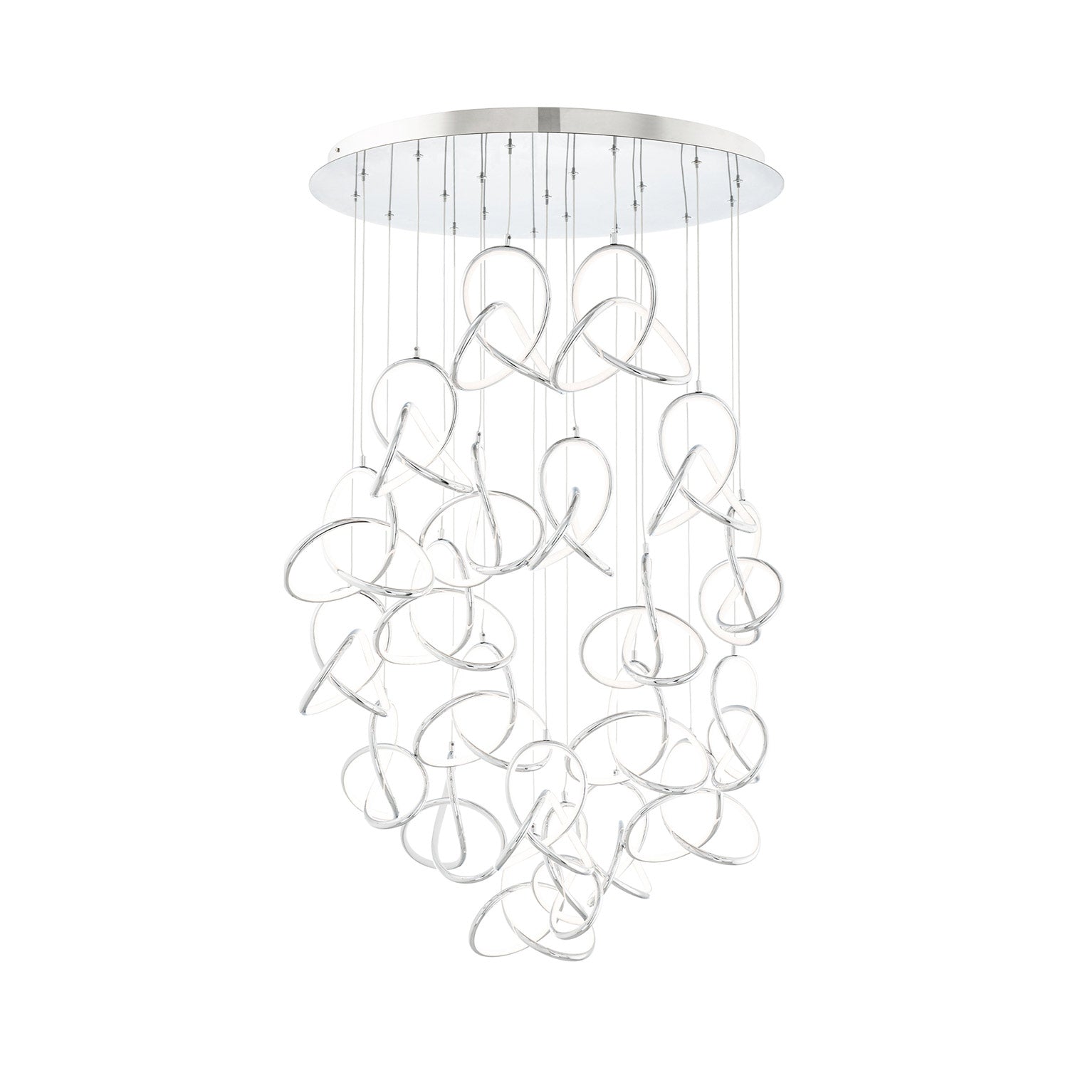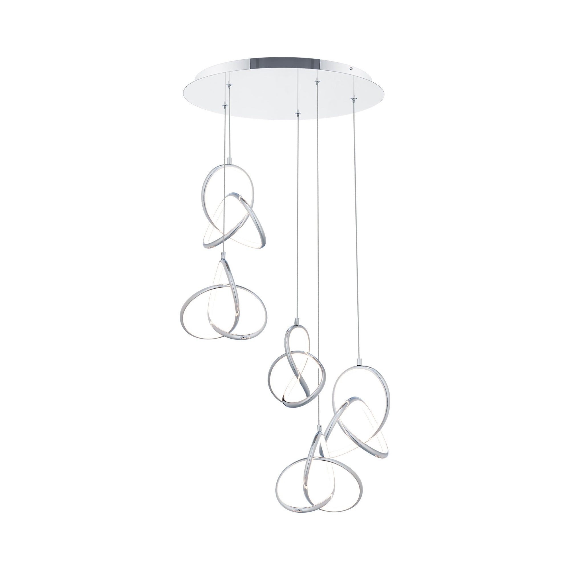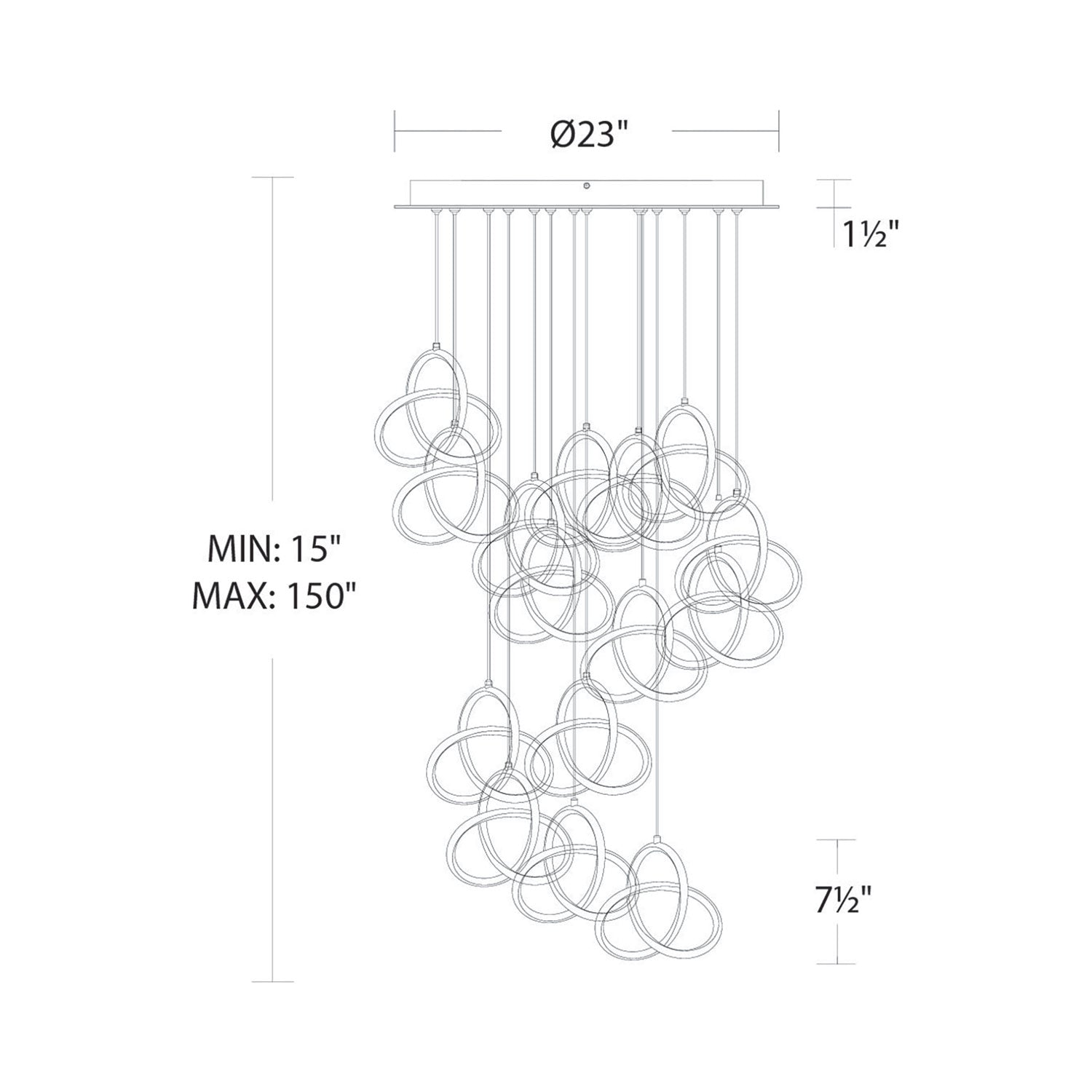An unapologetic festive ribbon aesthetic brings artistry in functional form to a contemporary space. The Vornado LED Multi Pendant Light from dweLED dabbles in character-rich loops of aluminum, hand-crafted and attached to silicon diffusers glowing with energy-efficient lighting. Nearly stealth adjustable cables offer a host of customizing for your special space.