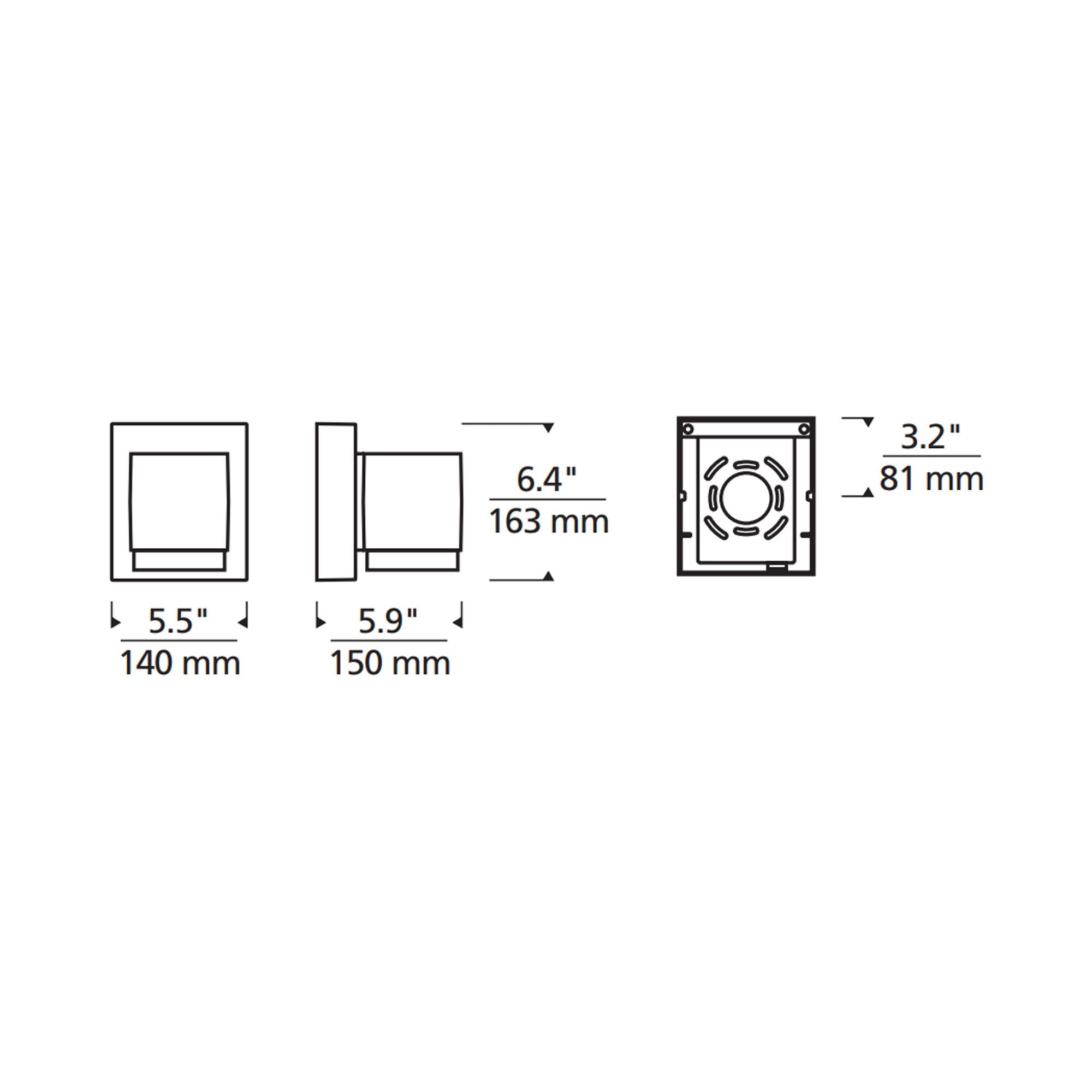 - Small: 5.5"W X 6.4"H; 5.9" Extension