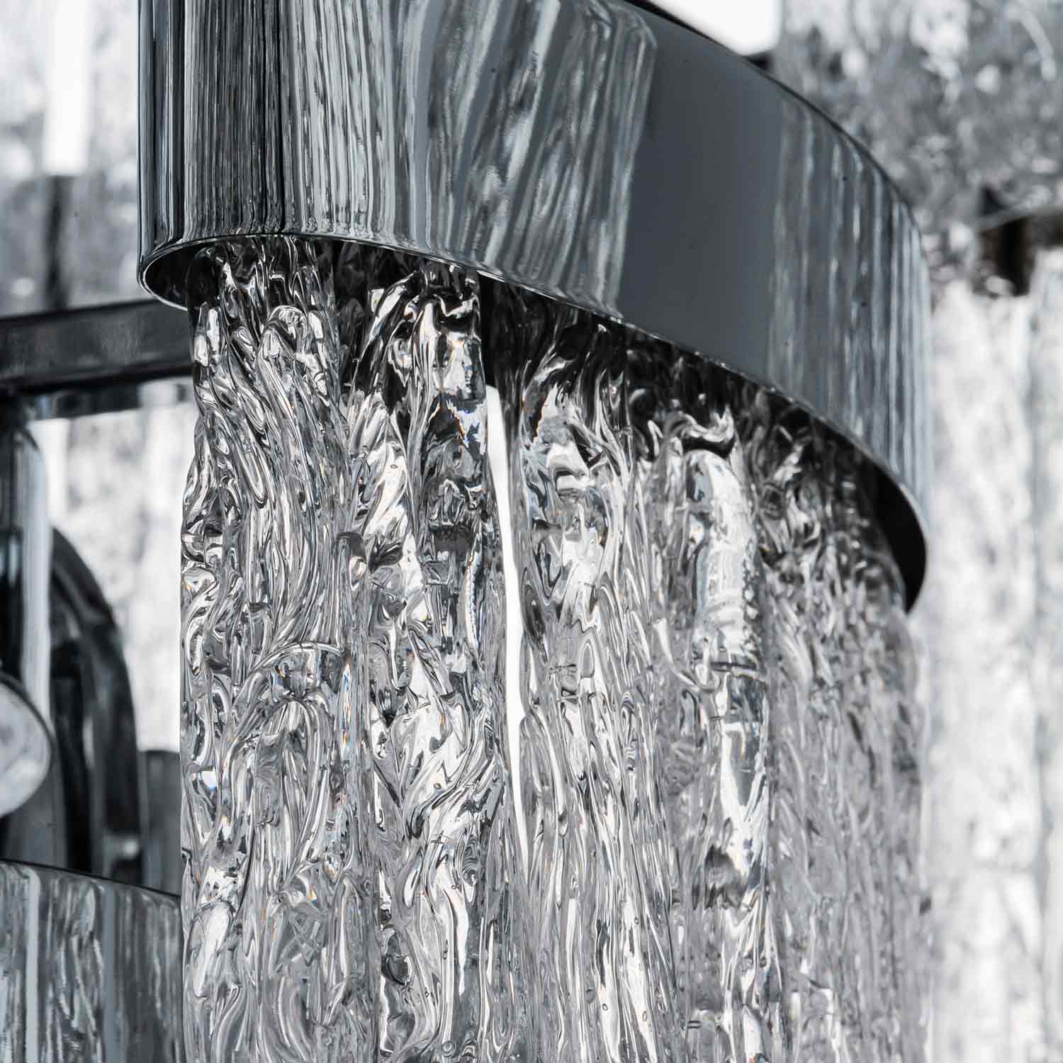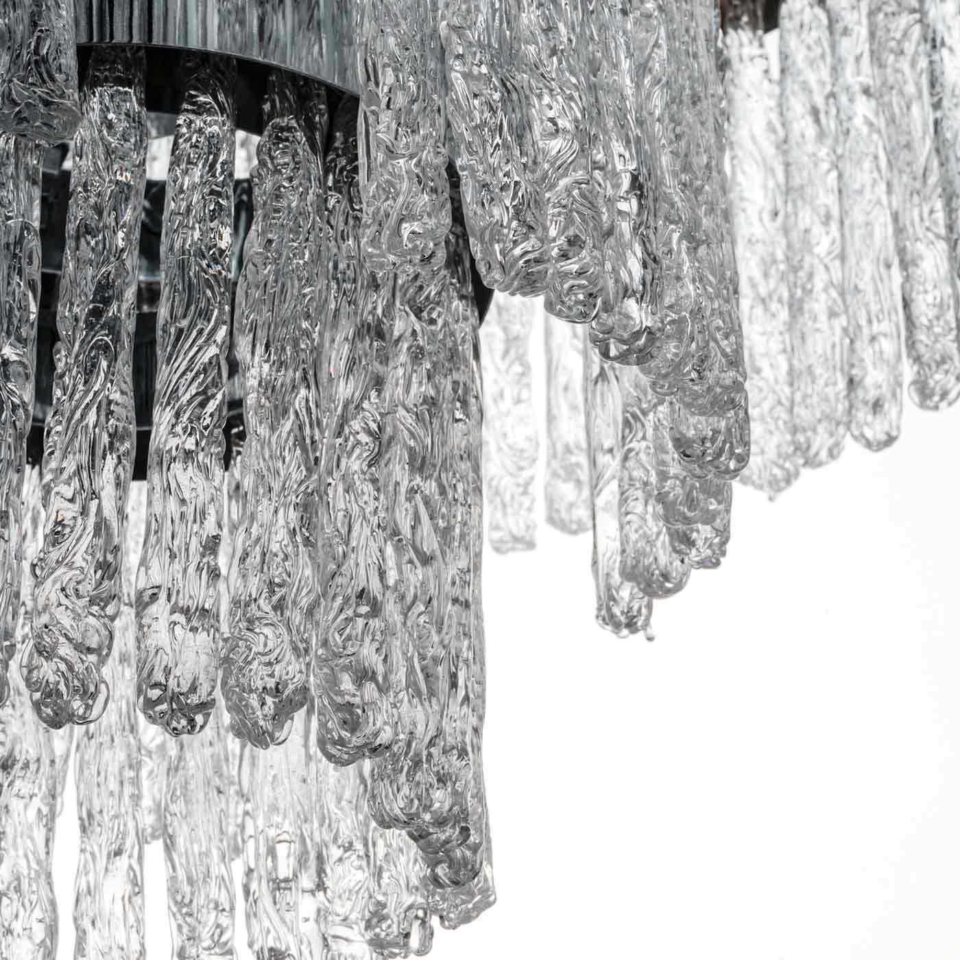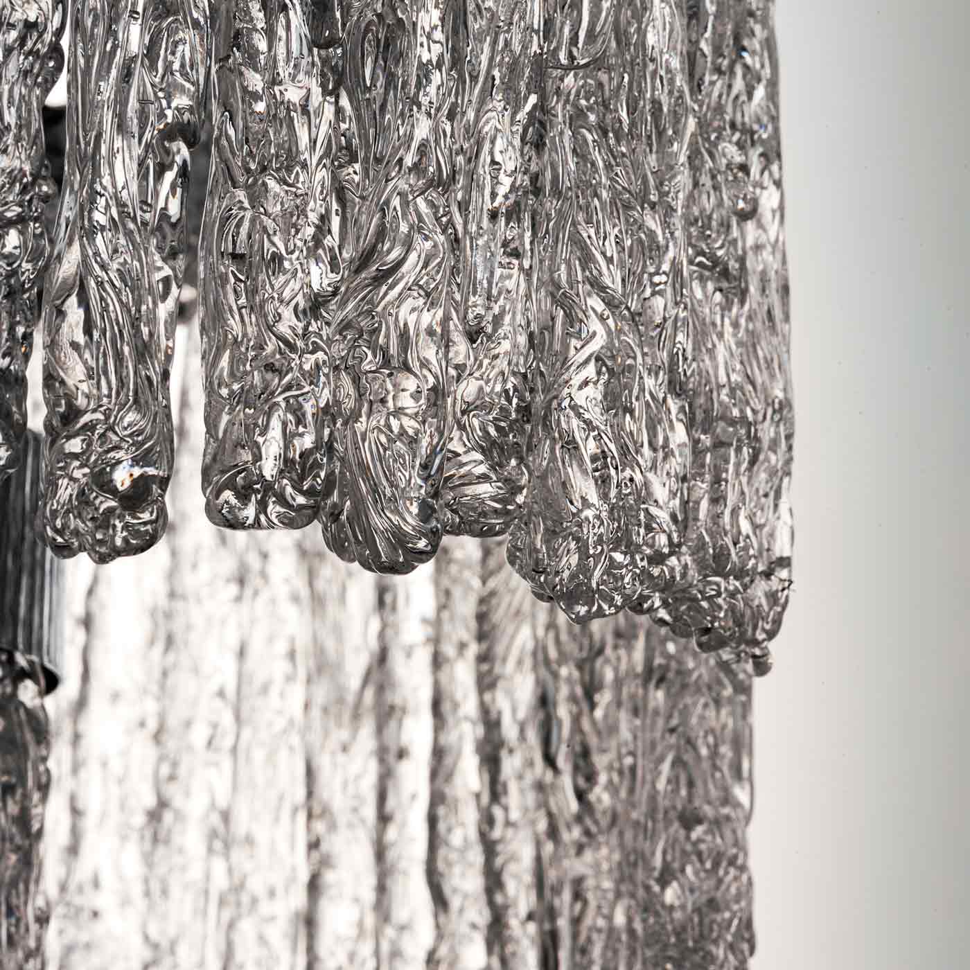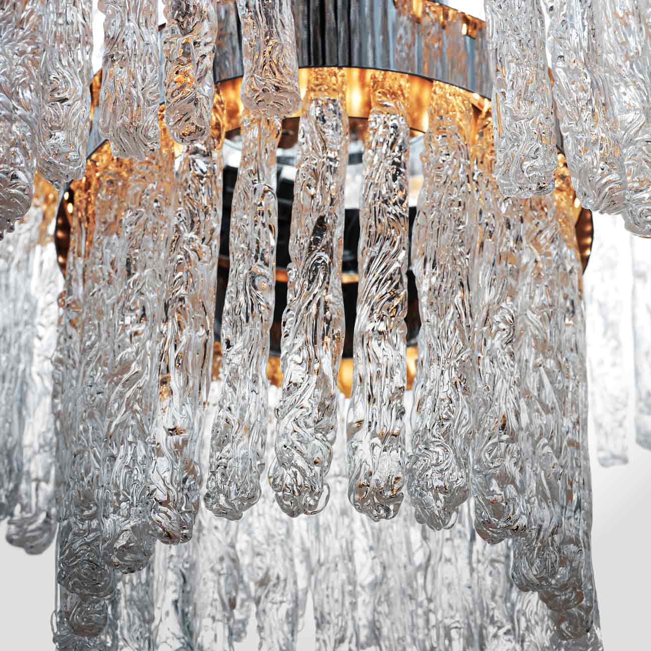 The cascading design of this waterfall-inspired modern glam Waldorf LED Chandelier from Studio M presents a luxurious expression and breathtaking interior addition. Hand crafted Piastra glass crystals lend an artisan quality, sparkling from the polished undulating framework of this energy-efficient tiered chandelier.