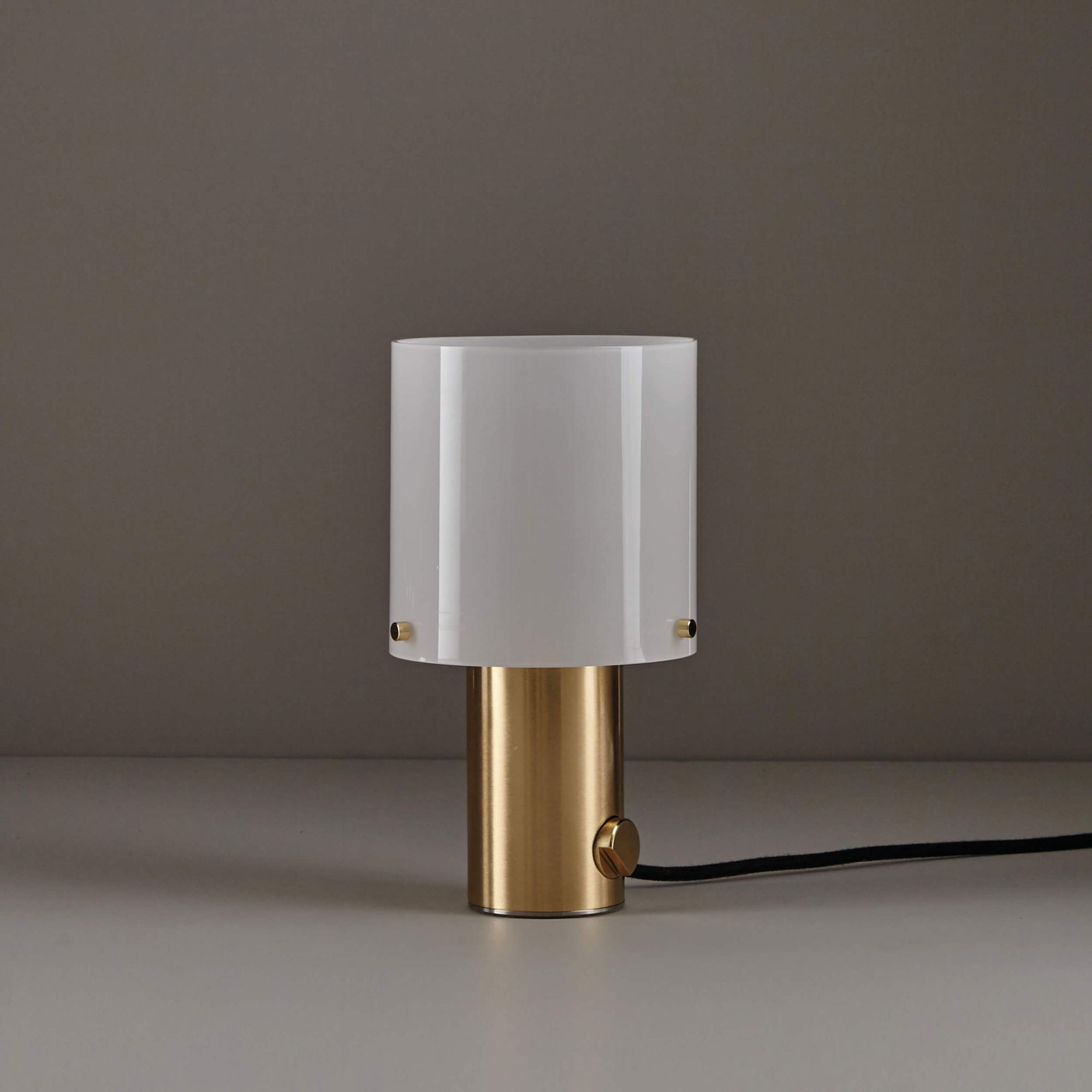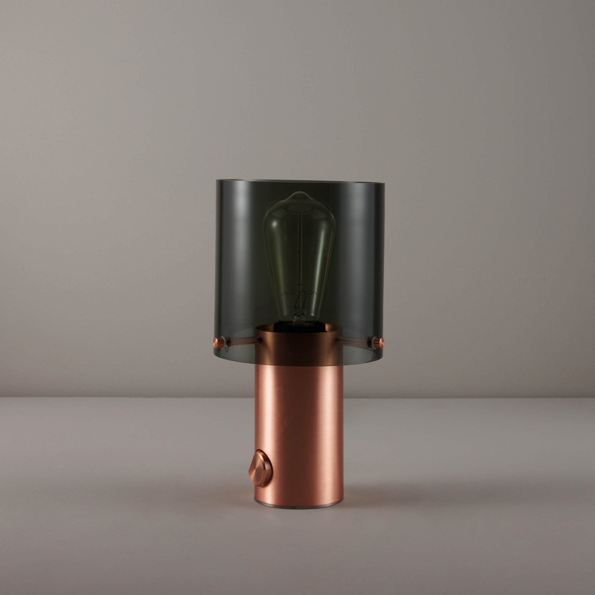 Revisiting a design motif rooted in later years of the mid-century motif, the Walter Table Lamp from Original BTC provides a blend of exquisite style and respectable elegance. Embrace a dramatic cylinder glass shade stacked over a gleaming metal body, a design with approachability. Dimming features are controlled from a body-mounted dial, expanding the range of lighting levels.