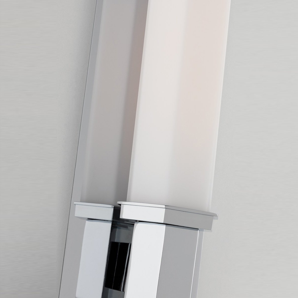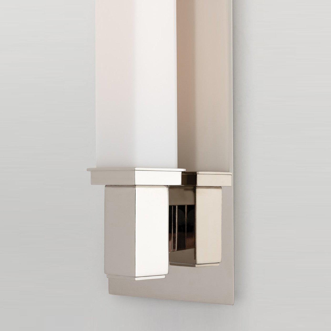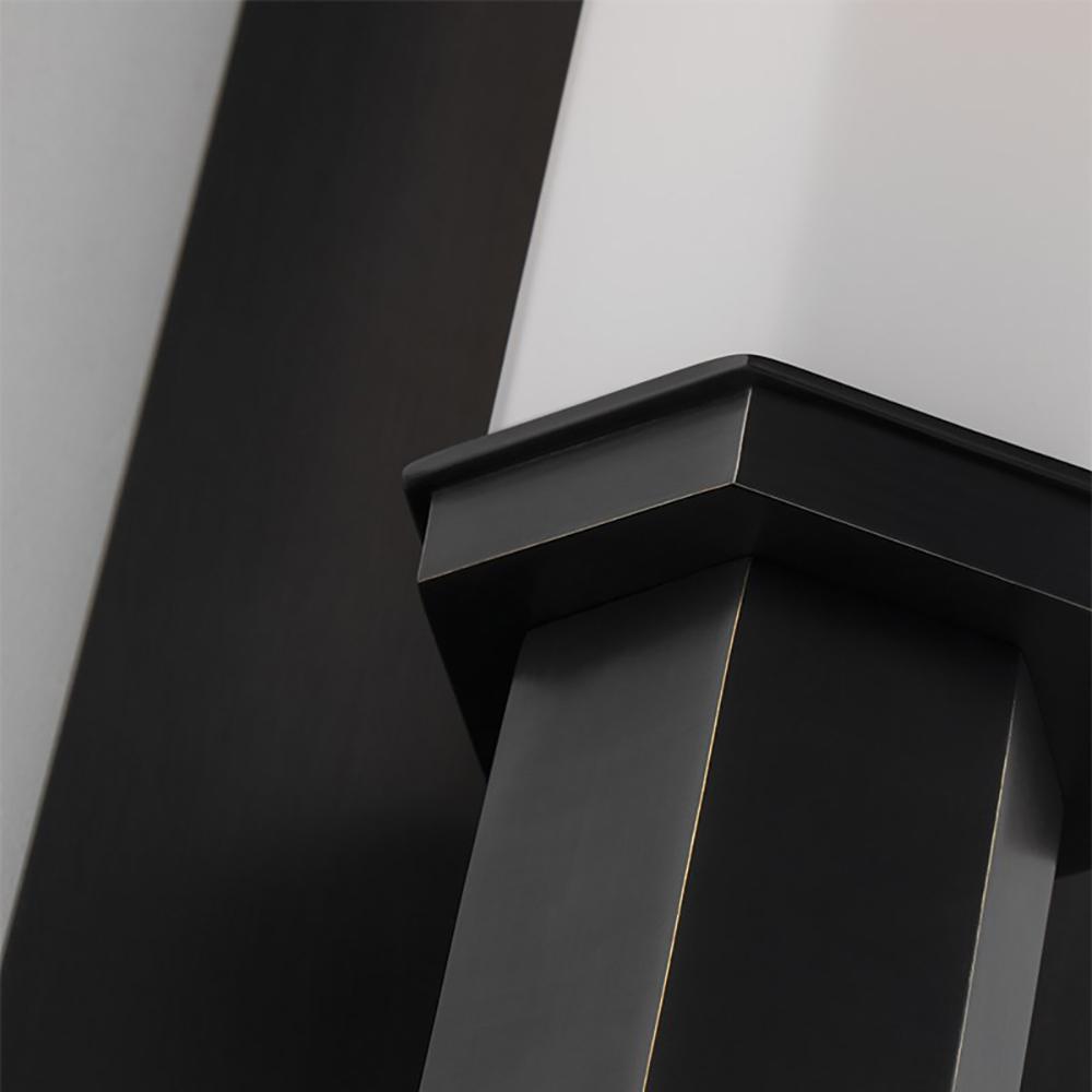 Walton’s white diffuser is a hexagonal column matched by its metal pedestal. Its thoughtful design disguises all mounting hardware, ensuring no distraction from the fixture’s sleek outline and hand-rubbed finish.