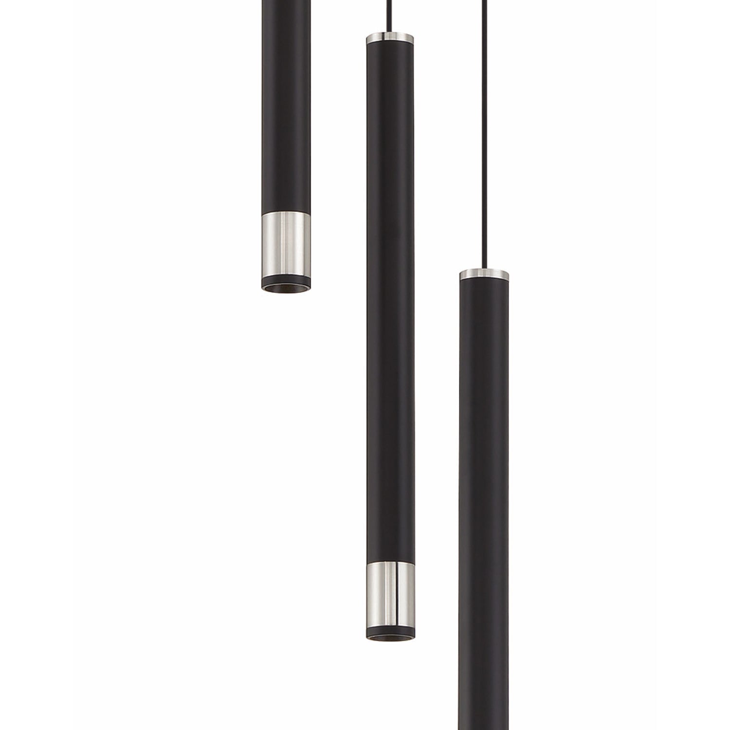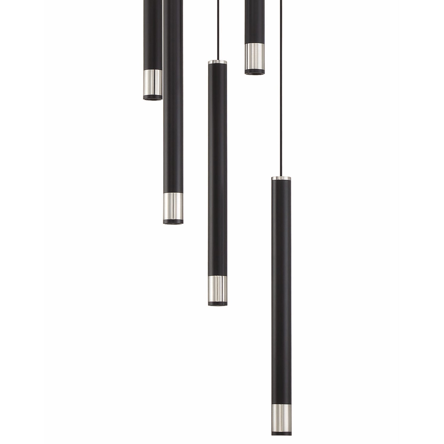 In the spirit of wind chimes design elements, the Wand LED Pendant Light from George Kovacs creates an artisan source of accent lighting with a touch of bold industrial influence. Embrace a delightful aesthetic in an energy-efficient multi-light pendant with slender coal finish metal cylinders and brushed nickel end caps suspended at graduated lengths. Movement and soft illumination merge to offer a decadent look with a distinctive style.