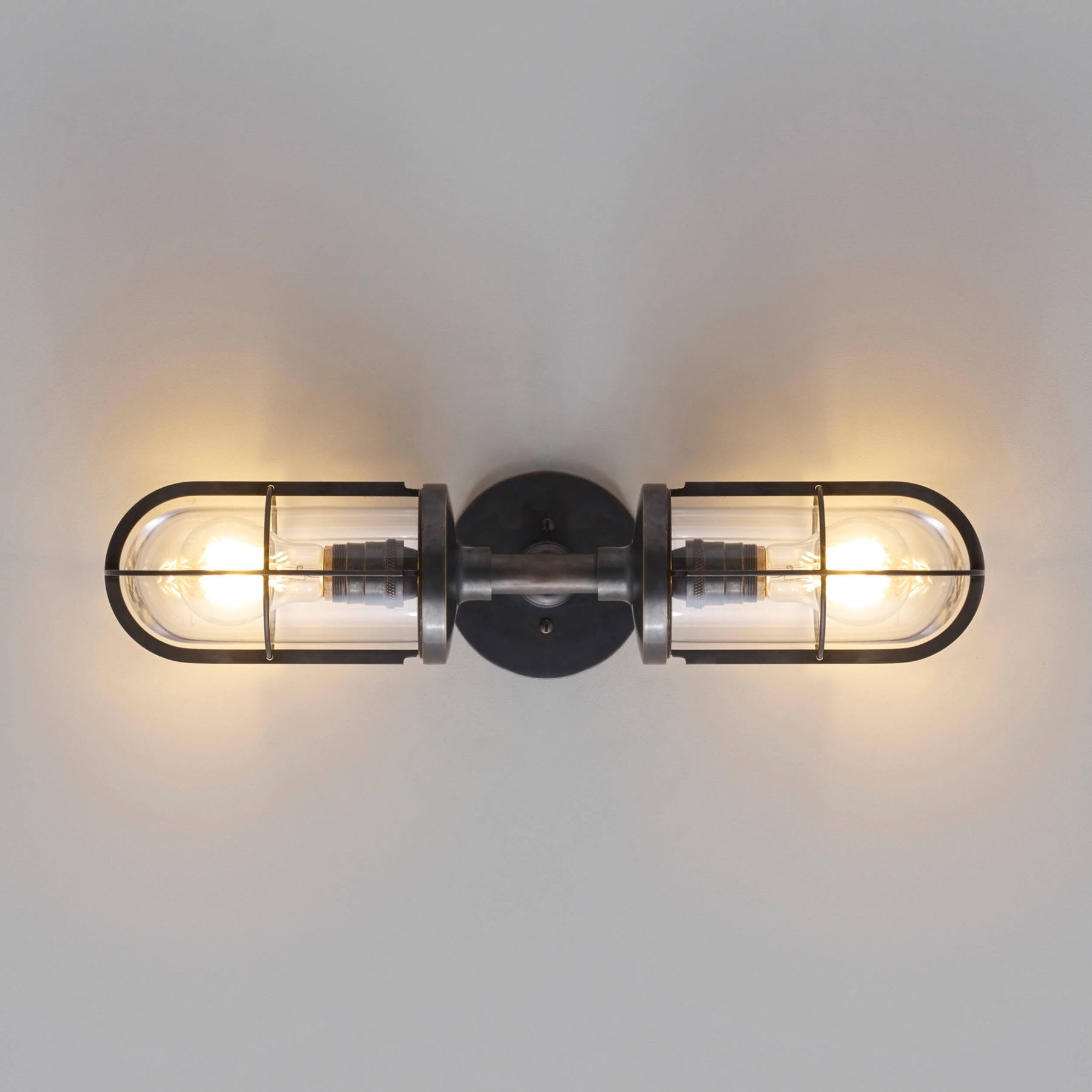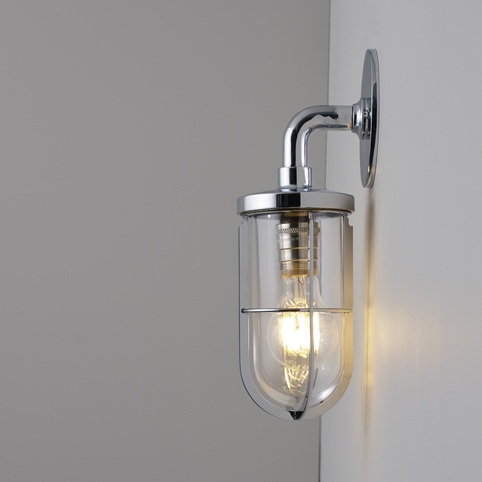 Indulge in a thirst for old-style nautical design with a fixture reflecting both industrial style and precision engineering. The Weatherproof Ship's Well Glass Wall Light from Original BTC is a superb choice for illuminating bath spaces and living areas themed with a familiar retro vibe. Glass and metal create a classic blend with a subtle, low-key cage design and corresponding artisan metal elements.