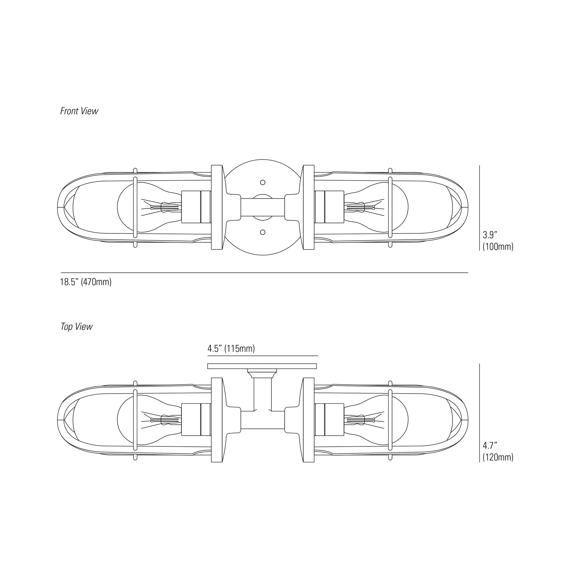 - 2-Light: 2 X 60W 120V E26(medium base) A19 incandescent lamps (not included)