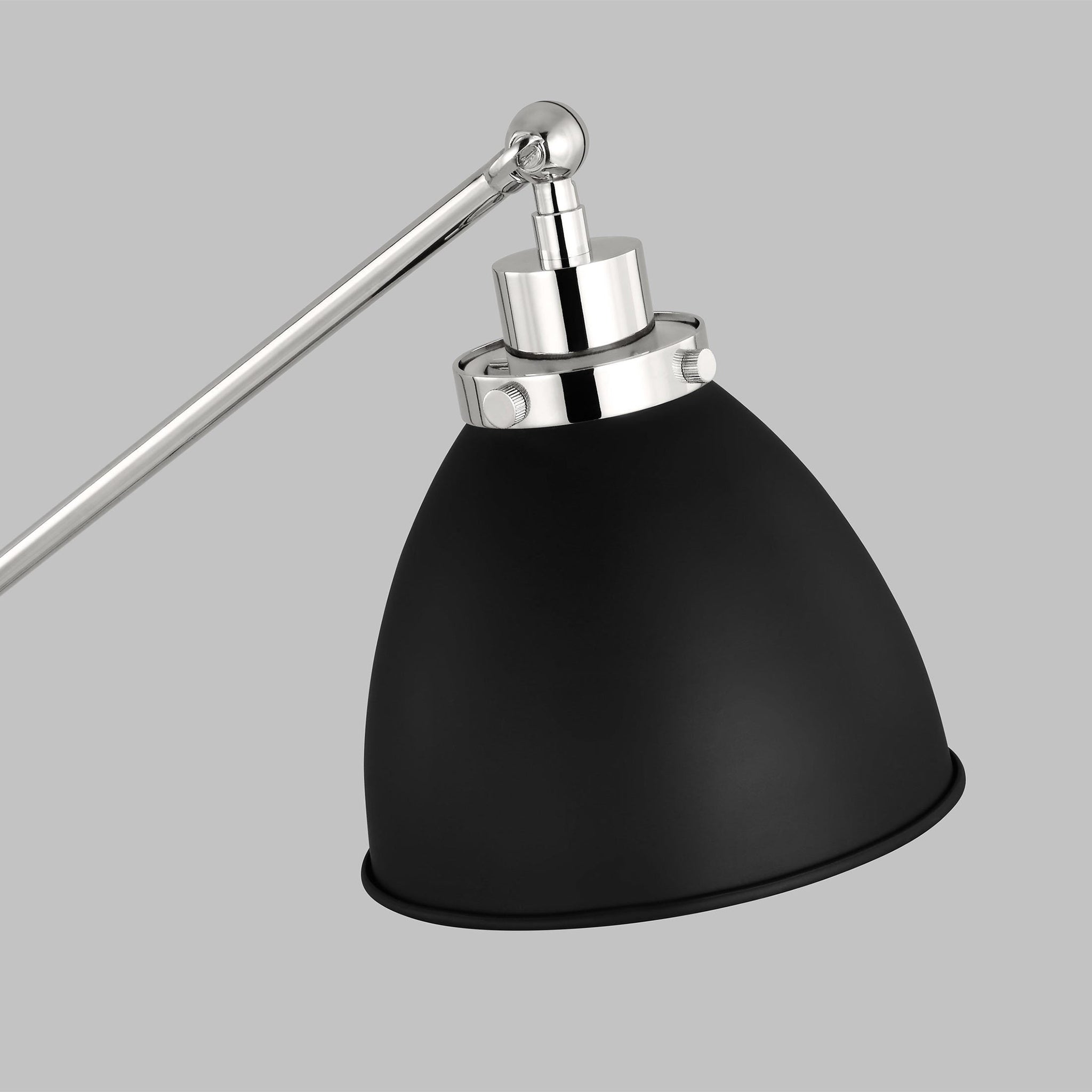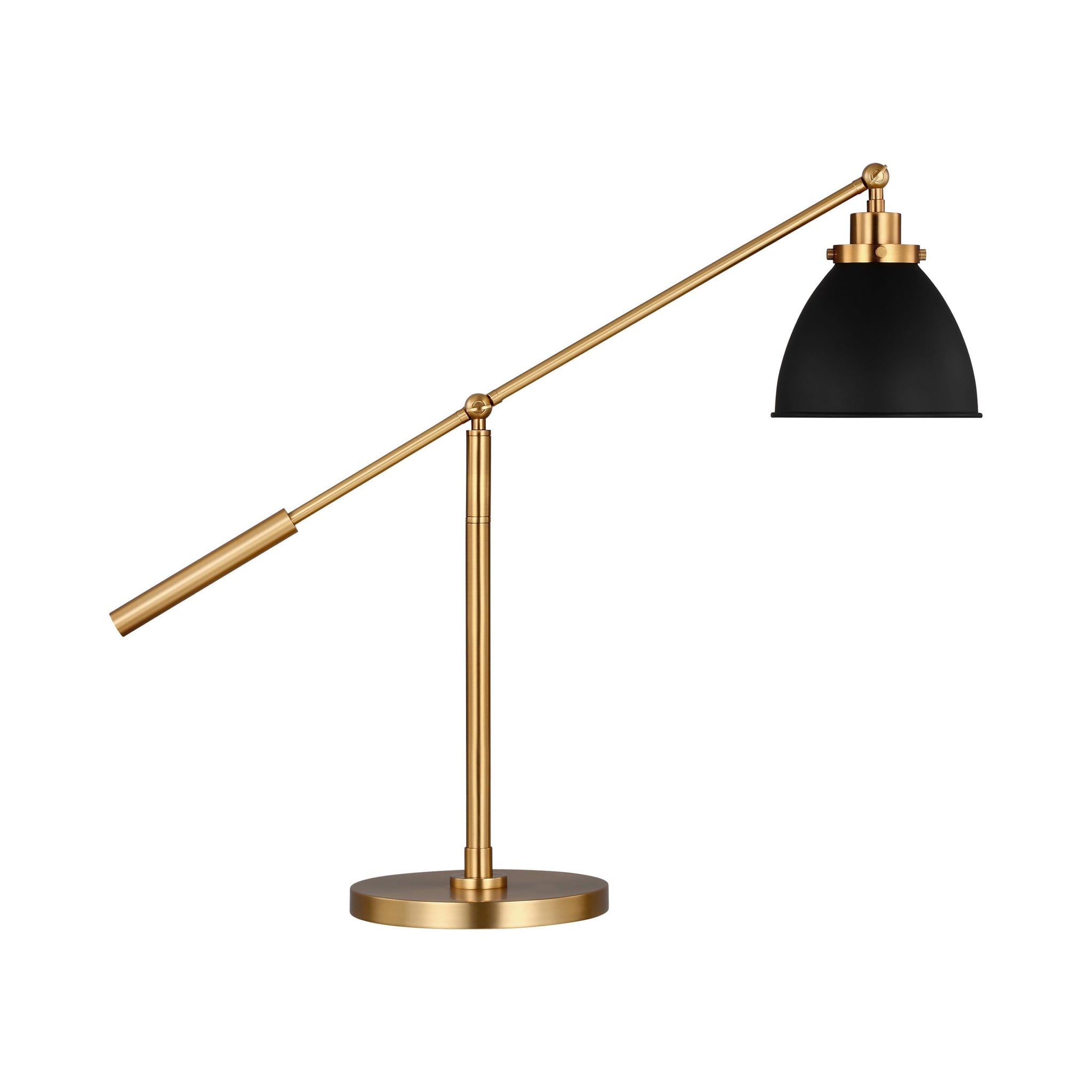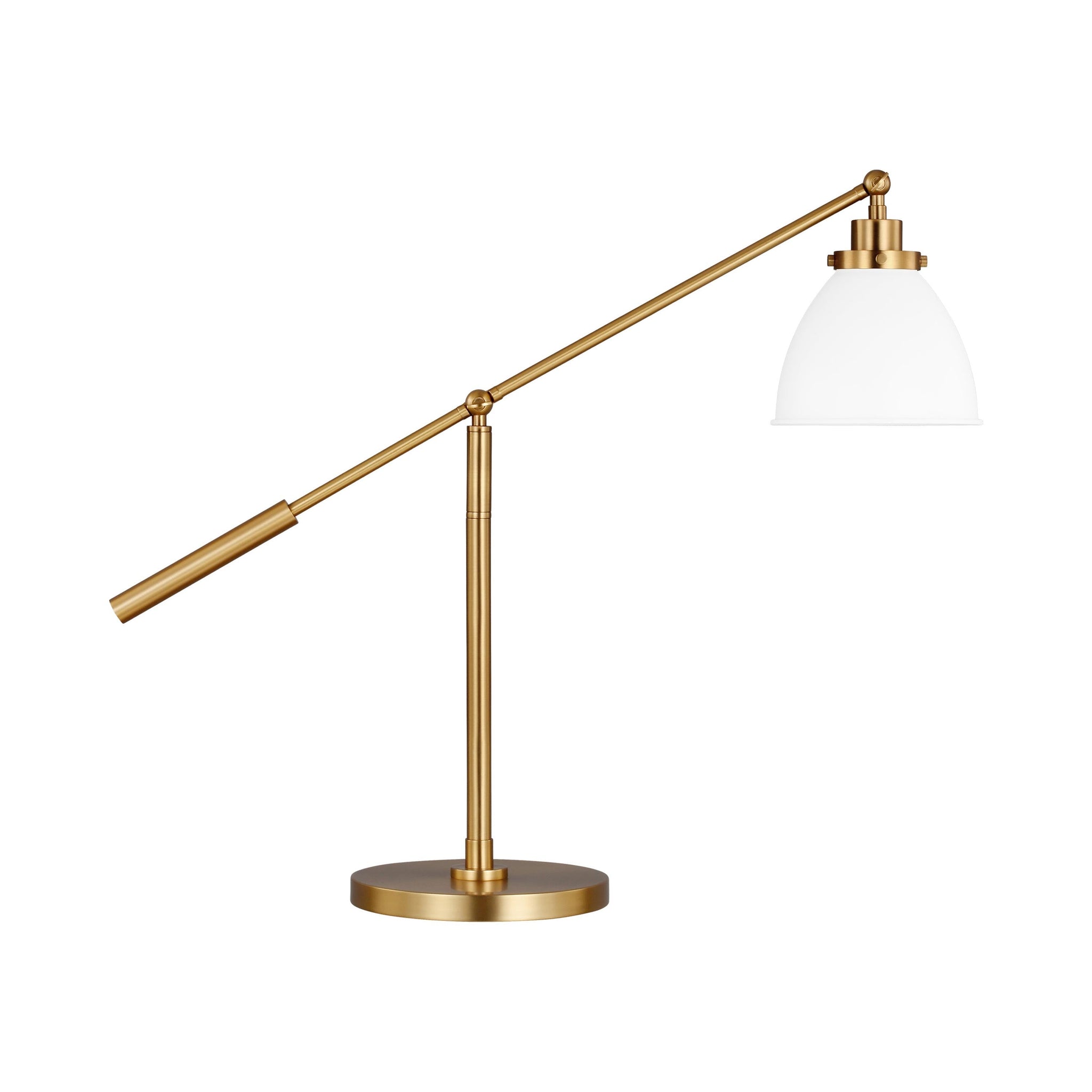 The Wellfleet Dome Desk Lamp by Chapman & Myers is inspired by various classic utility silhouette’s - from factory lighting to barn sconces - capped by contrasting metal hardware. Each shade of the Wellfleet collection is available multiple sizes of 3 versatile profiles; either a flat farm dome, a traditional factory dome, or tapered cone. The shades are available with either a black or white finish and are paired with either a burnished brass or polished nickel collar, chain and canopy.