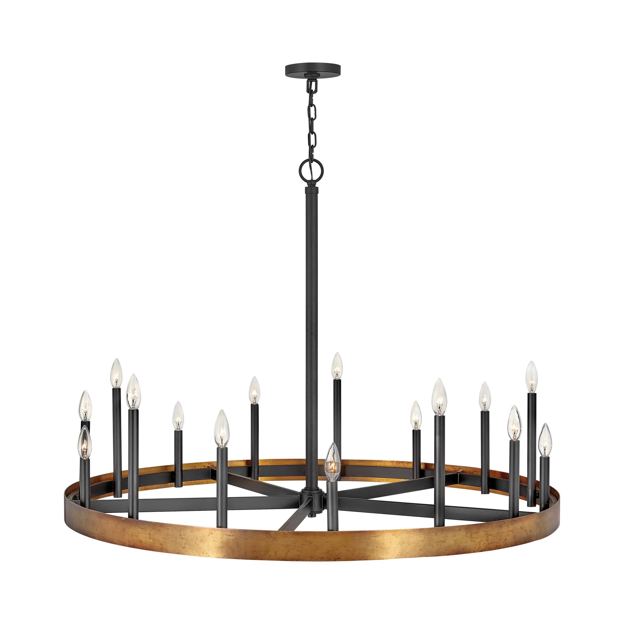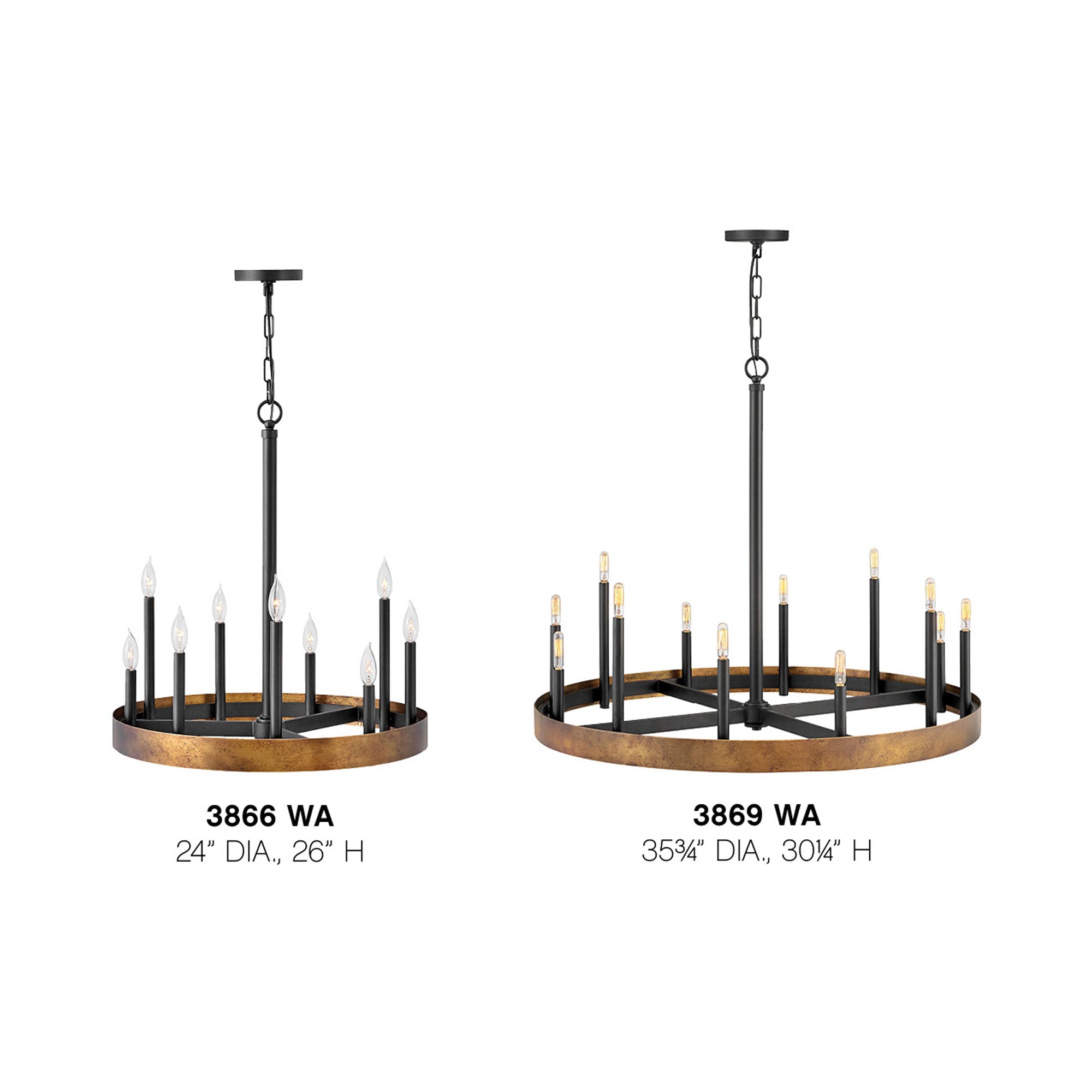 Authentic, vintage lighting that feels at home in an industrial setting is right in the wheelhouse for Wells Chandelier. A wide, weathered band of solid weathered brass lays a firm foundation for a striking centerpiece to any space. Tapered candle sleeves reach up at staggered heights to create a true old world aesthetic.