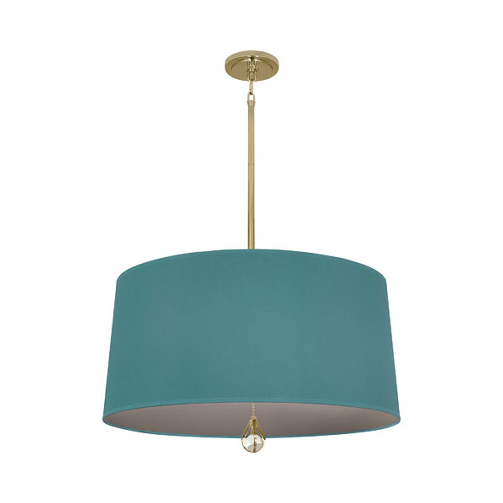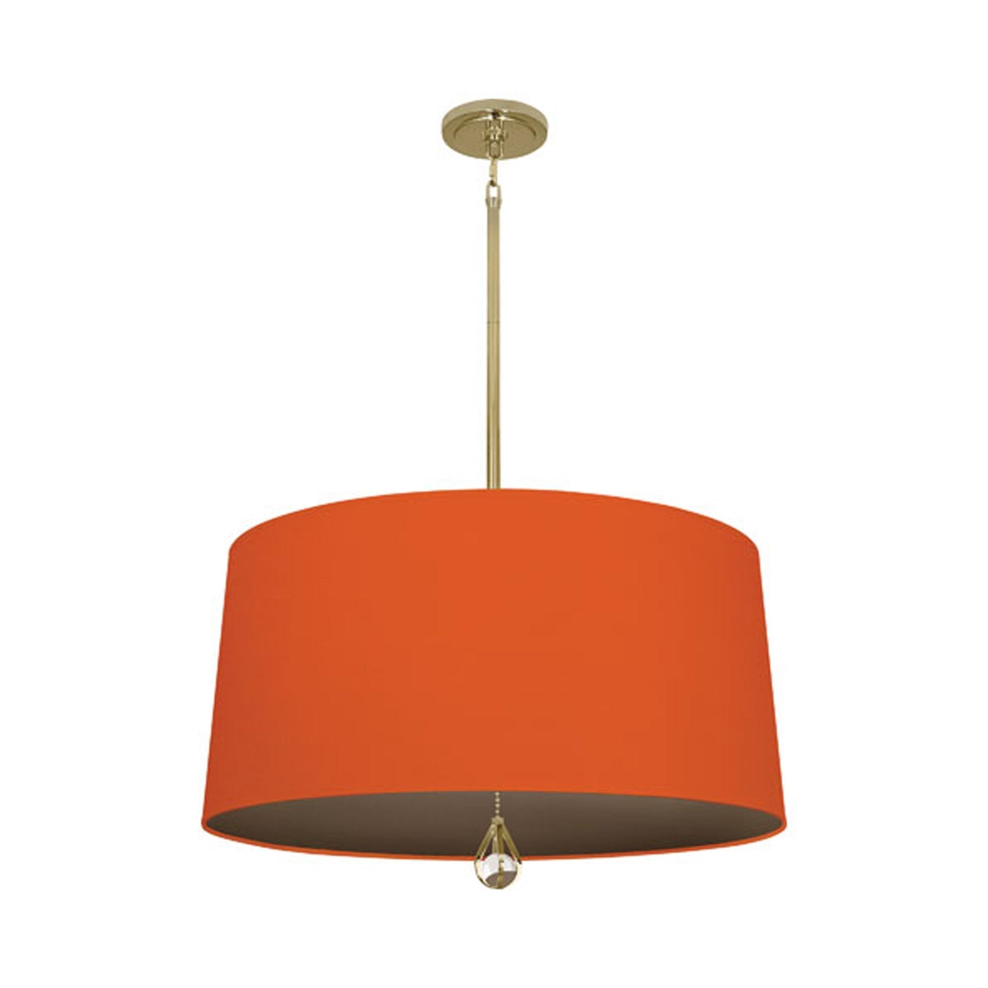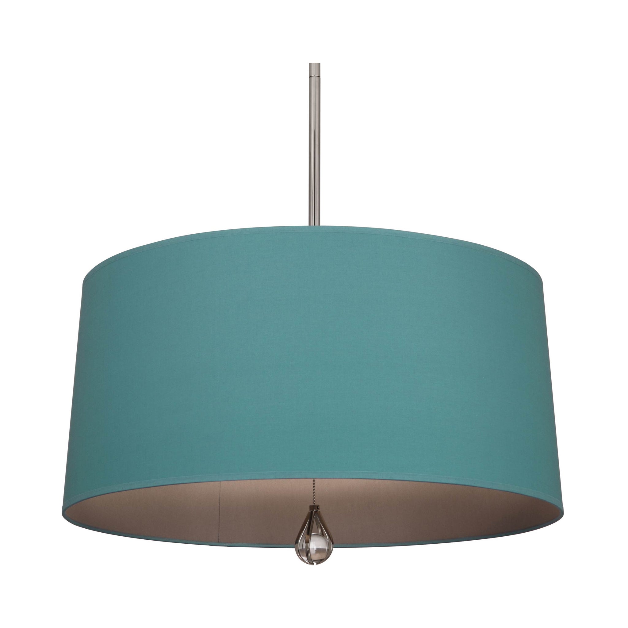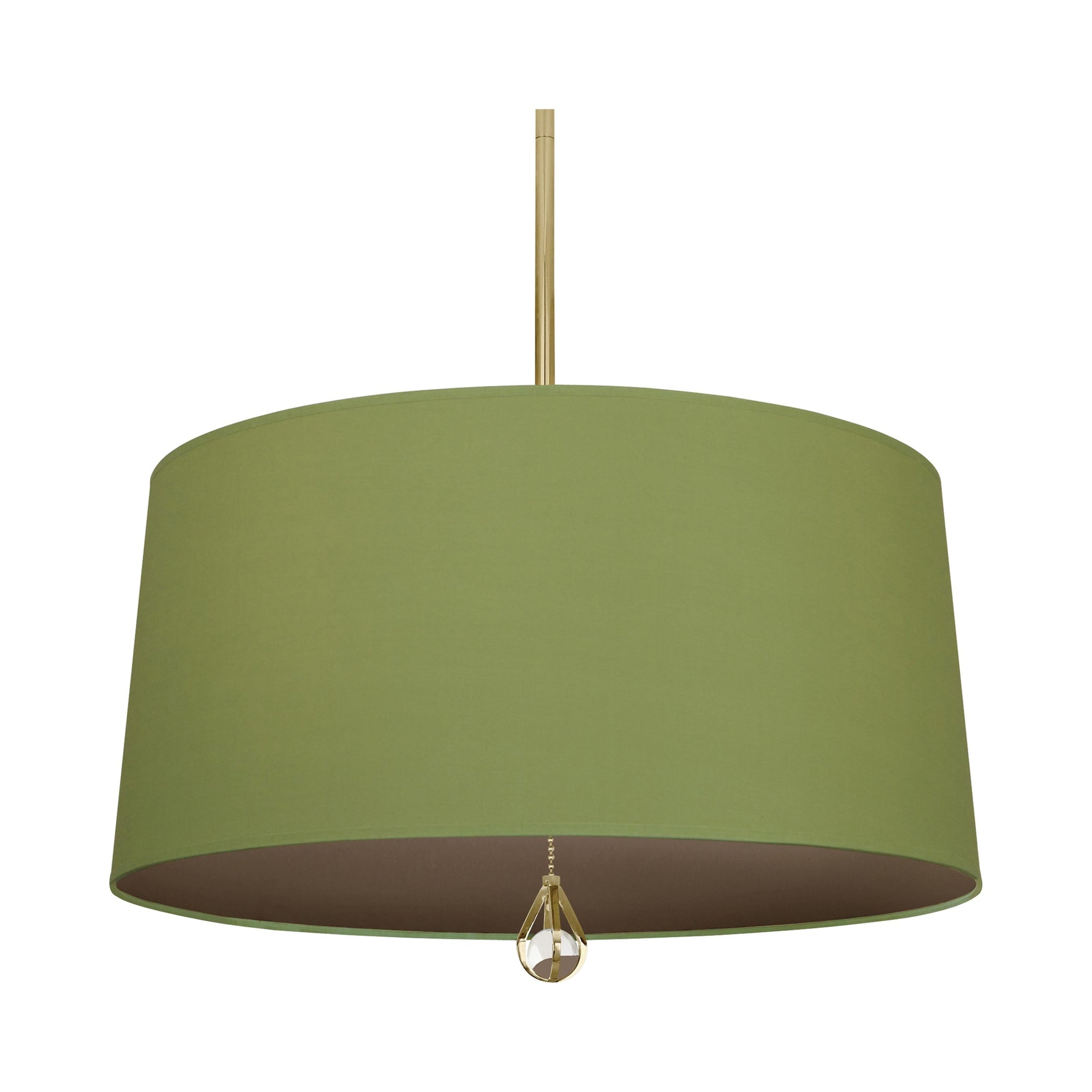 Color becomes the central focus in lighting décor when the Williamsburg Custis Pendant Light from Robert Abbey fashions a fabric shade in an array of finish combinations, turning a simple style into an artistic way to send targeted lighting throughout a dining or living space.