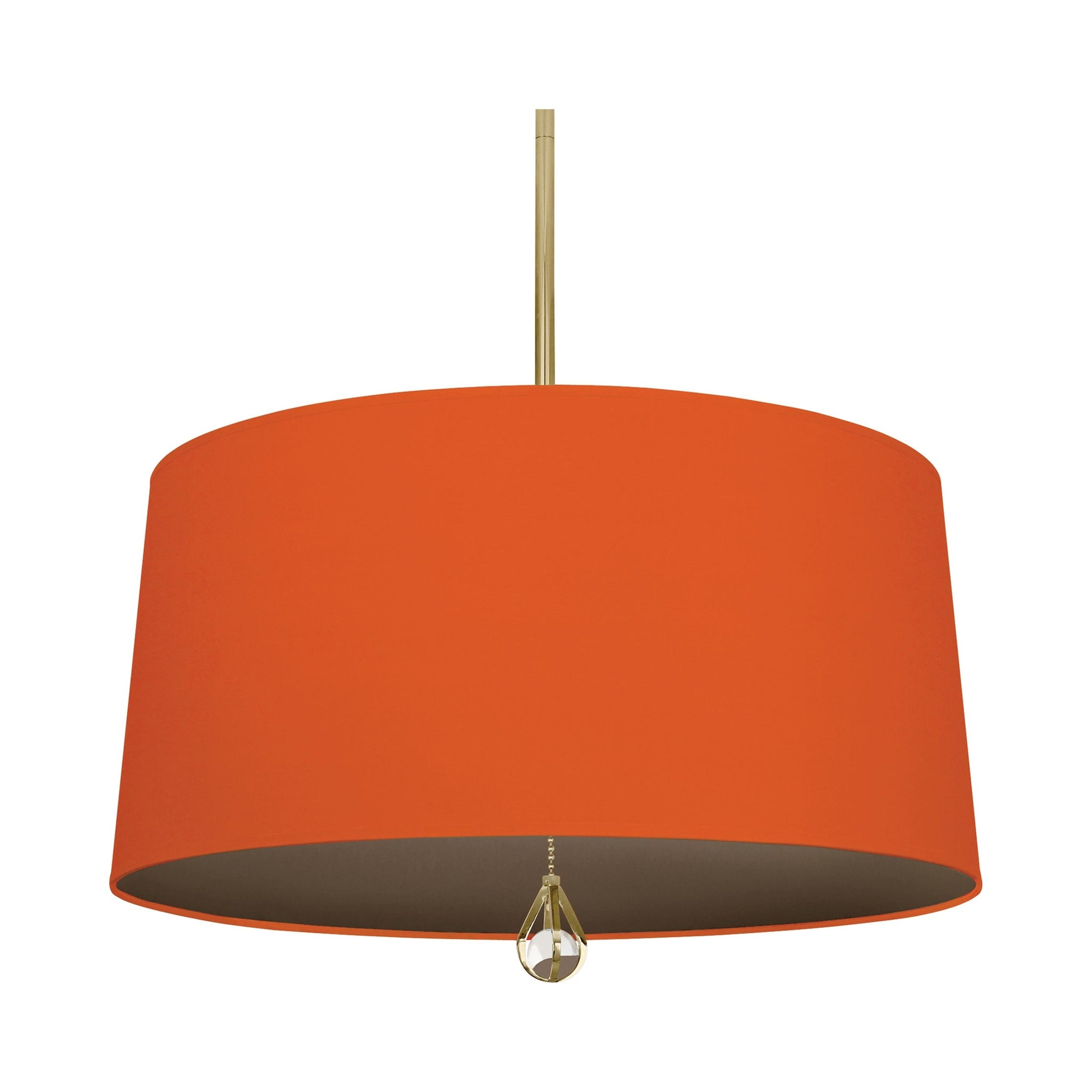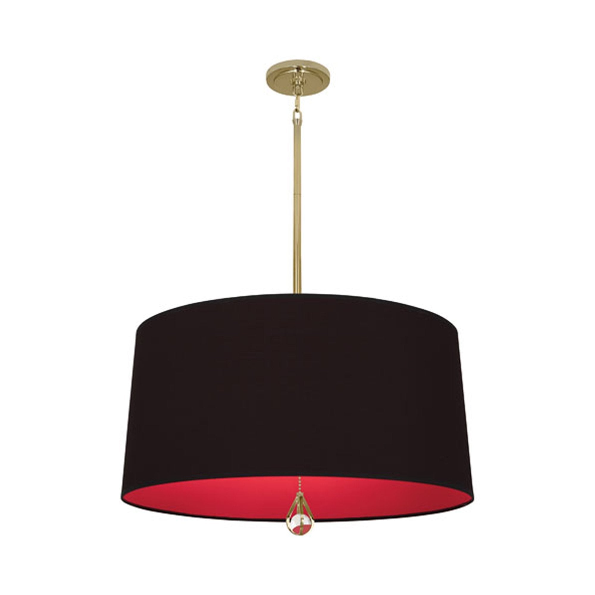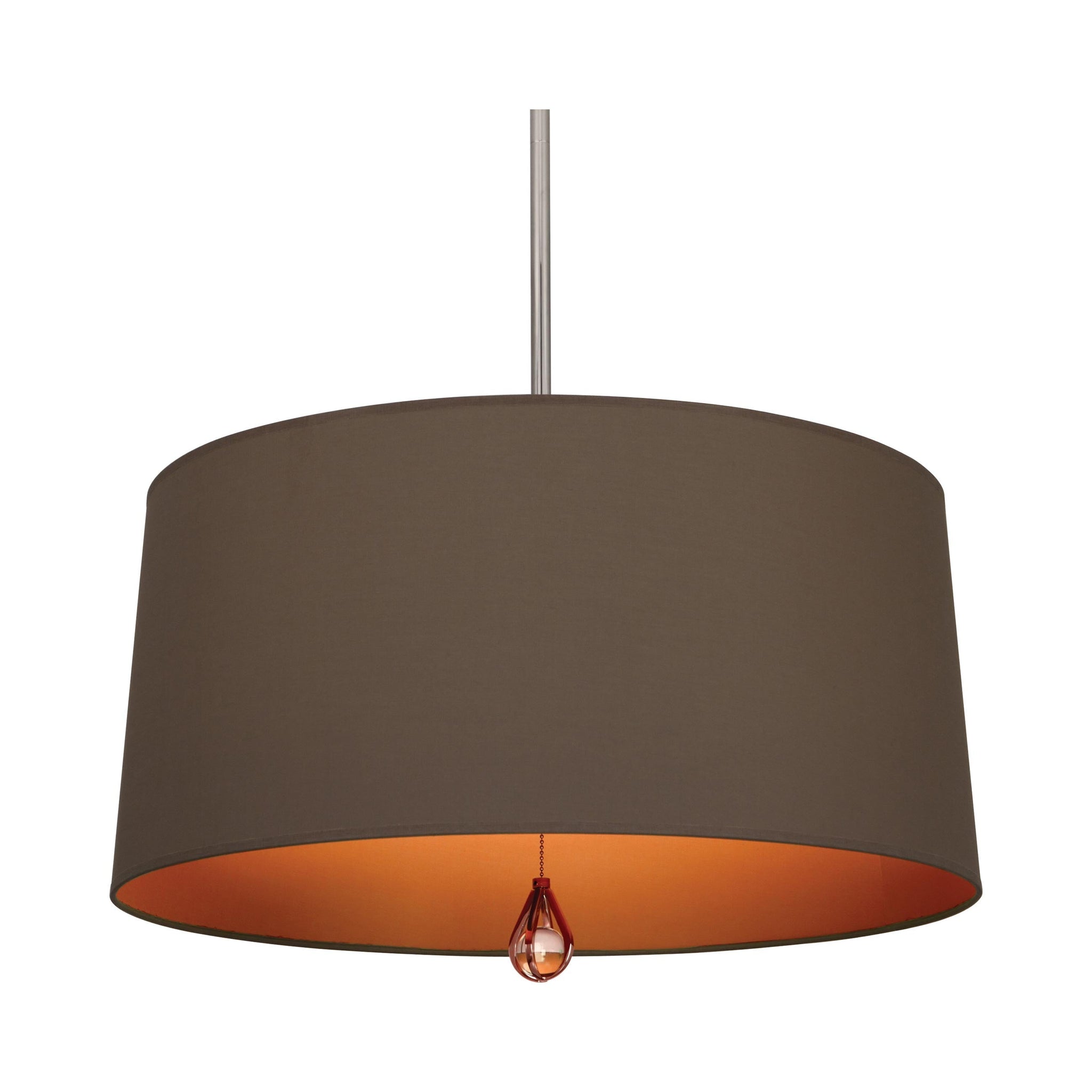 Color becomes the central focus in lighting décor when the Williamsburg Custis Pendant Light from Robert Abbey fashions a fabric shade in an array of finish combinations, turning a simple style into an artistic way to send targeted lighting throughout a dining or living space.