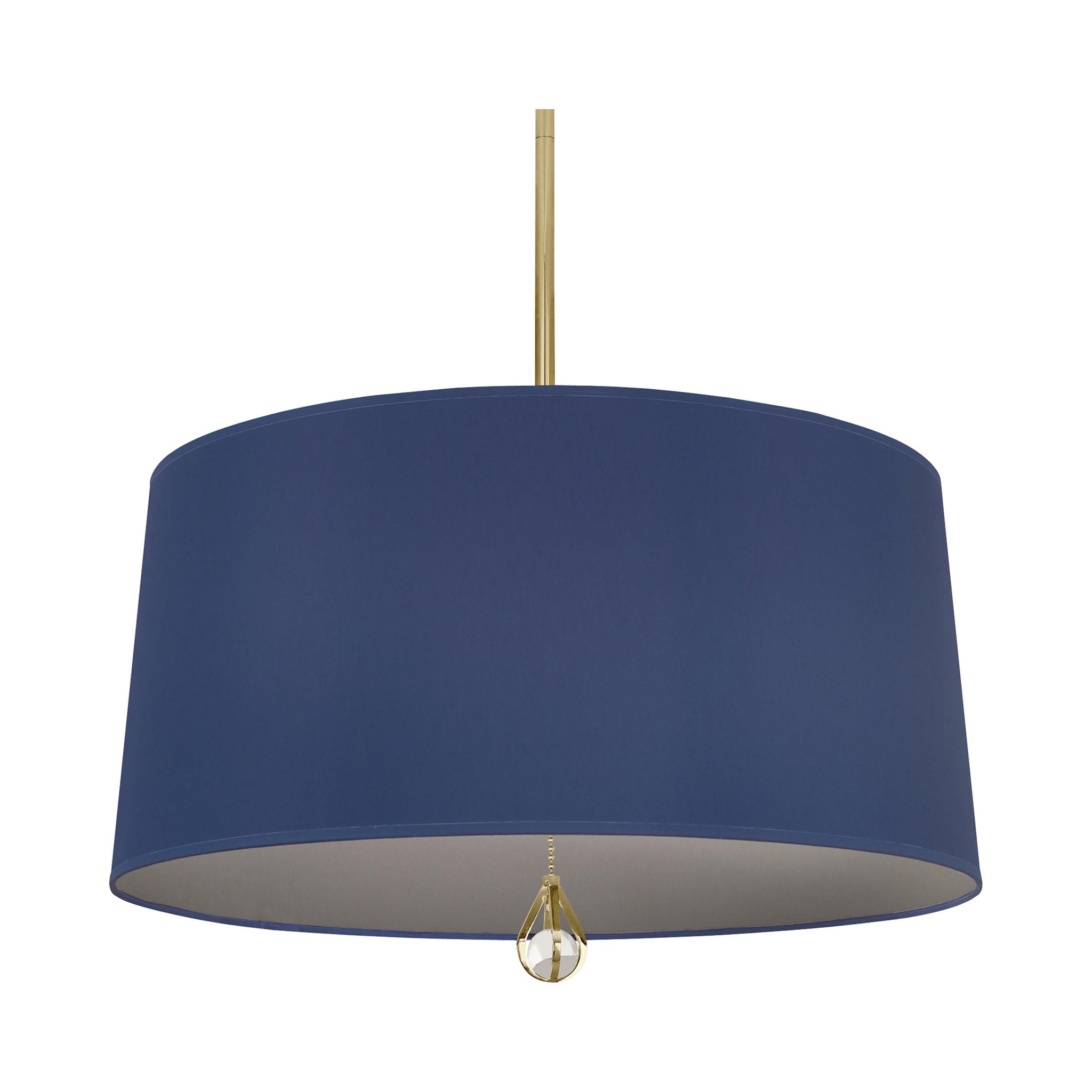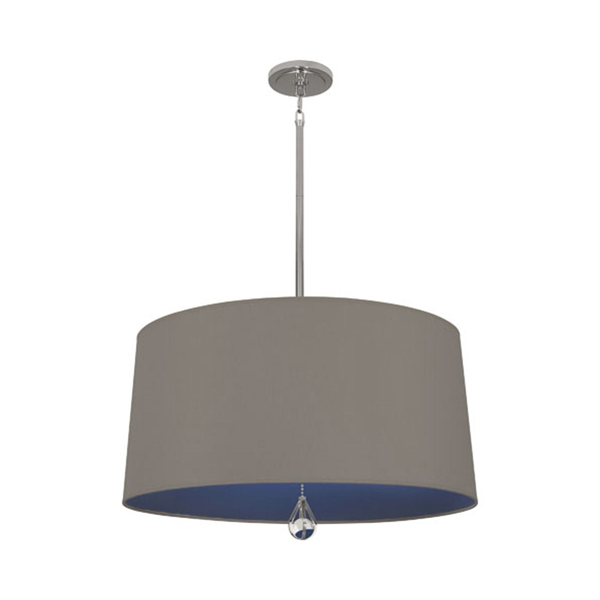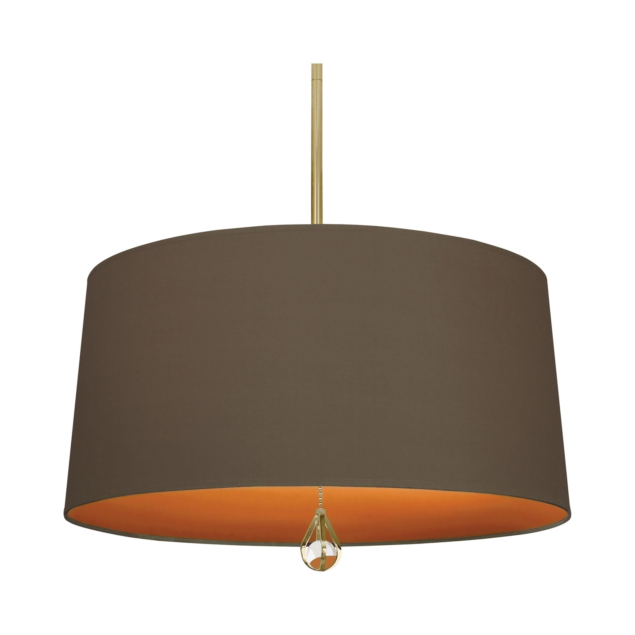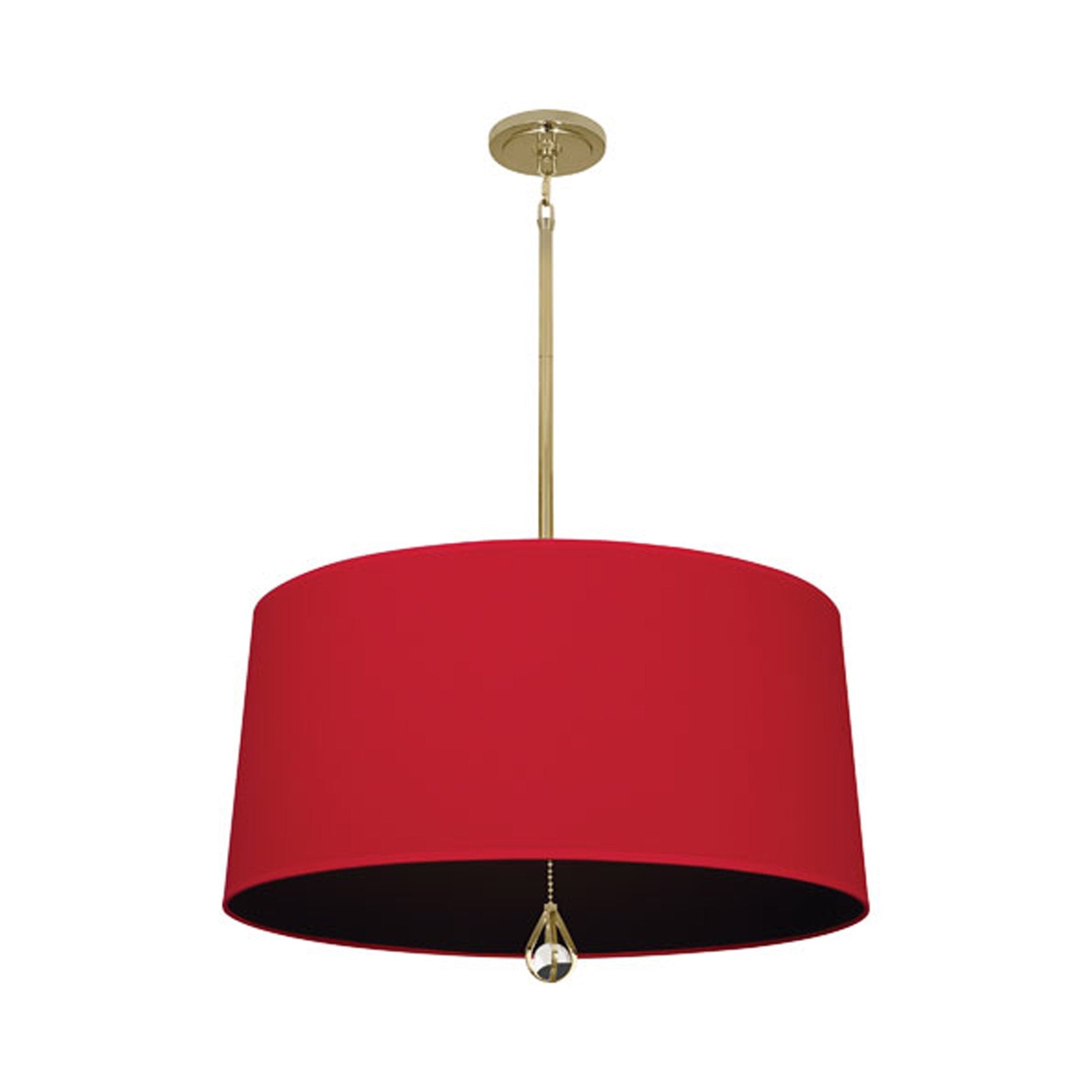 Color becomes the central focus in lighting décor when the Williamsburg Custis Pendant Light from Robert Abbey fashions a fabric shade in an array of finish combinations, turning a simple style into an artistic way to send targeted lighting throughout a dining or living space.