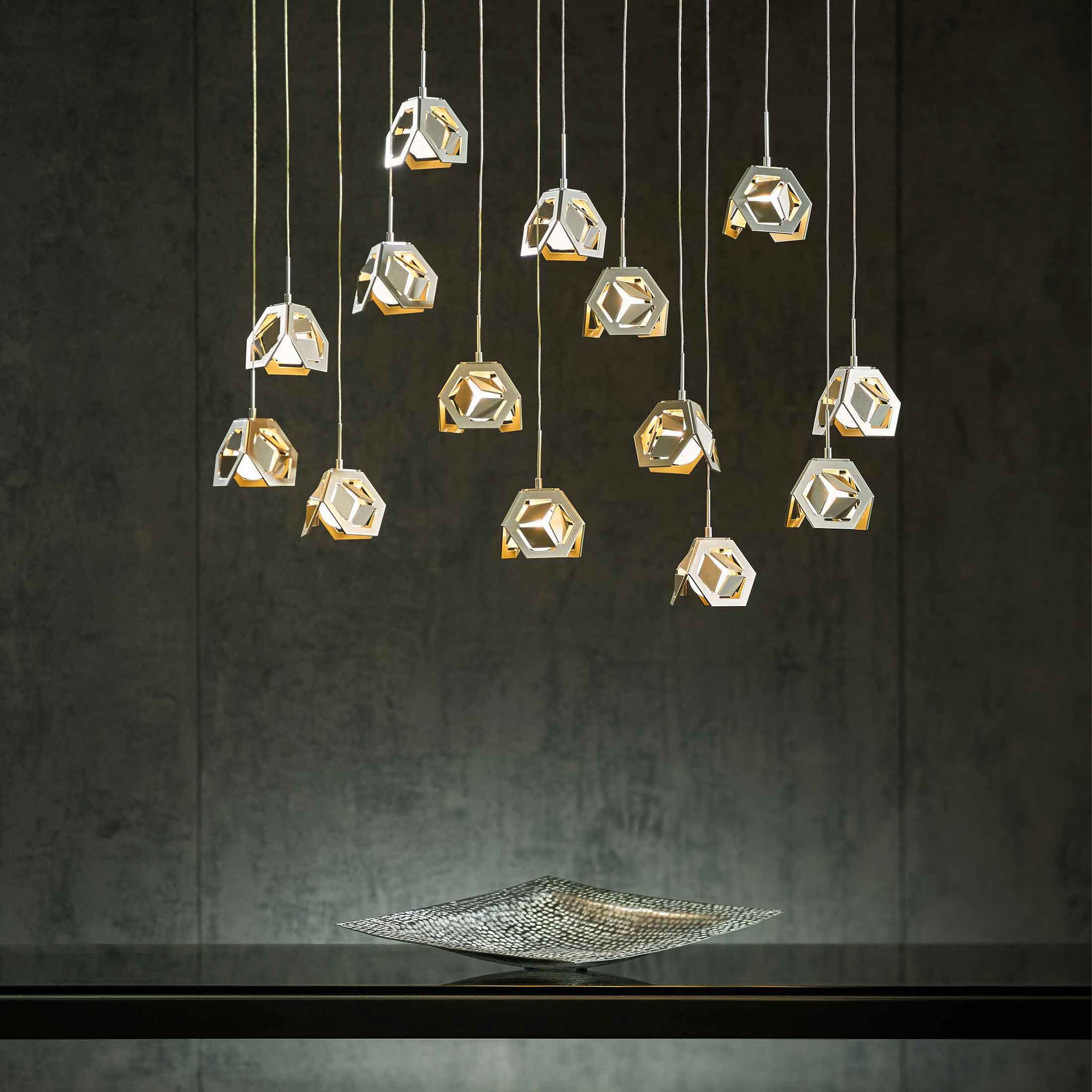 The Winter Mini Pendant Light from Hubbardton Forge offers the appeal of sparkling snow under moonlight.