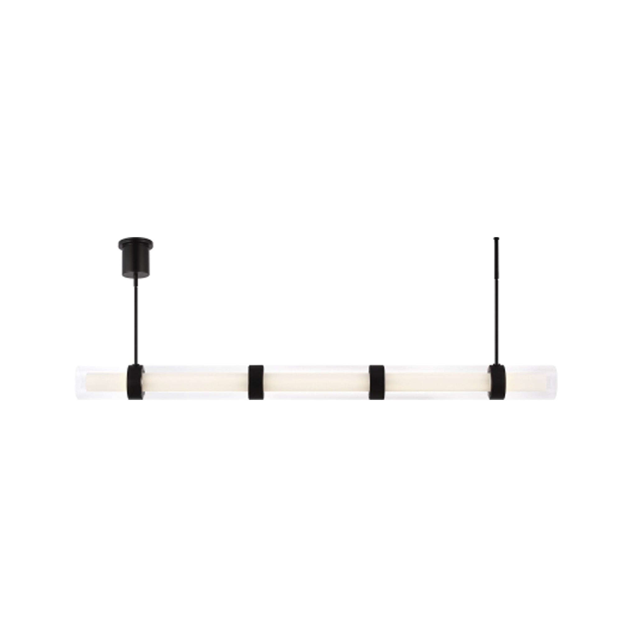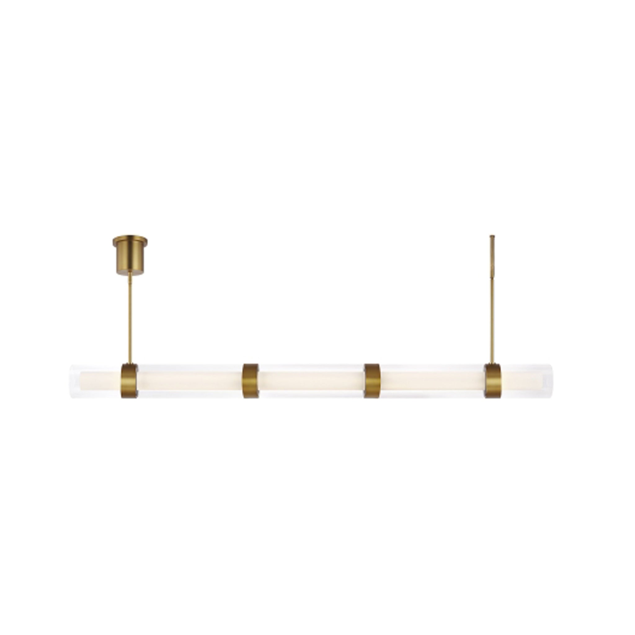Wit Linear LED Suspension Light by Sean Lavin for Visual Comfort Modern is a modern design with cylindrical glass elongated by sleek metal bands. When lit, the integrated LED fixture has a striking linear illumination and presents as modern decor when turned off. Offered in two handsome finishes, aged brass and black, and various lengths identified by the number of metal bands. For full room coordination, also available as a pendant. Lamping options are compatible with most dimmers. Refer to Dimming Chart for more information.