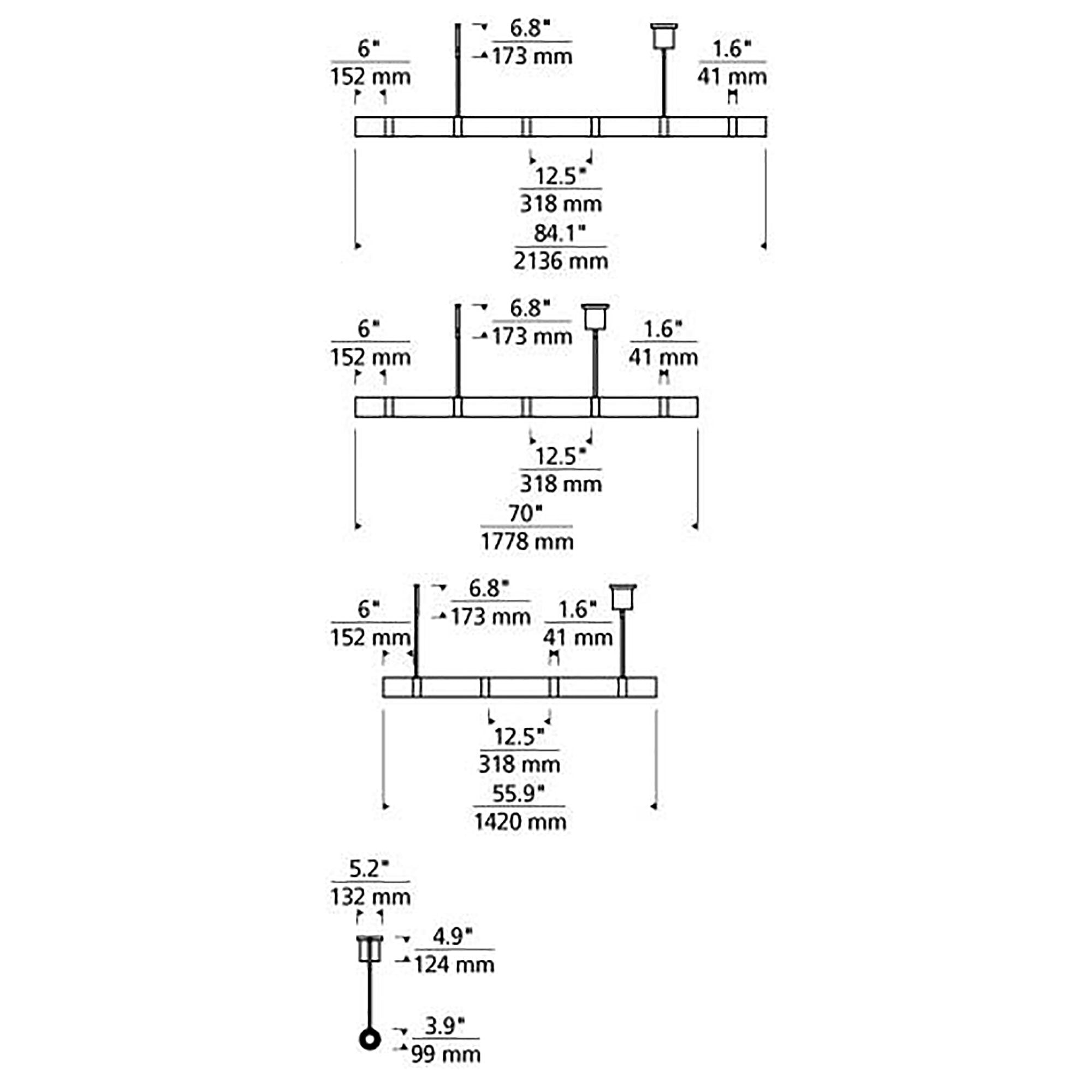 - 5-Glass: 55.93"W X 3.9"H; 68.8" max height