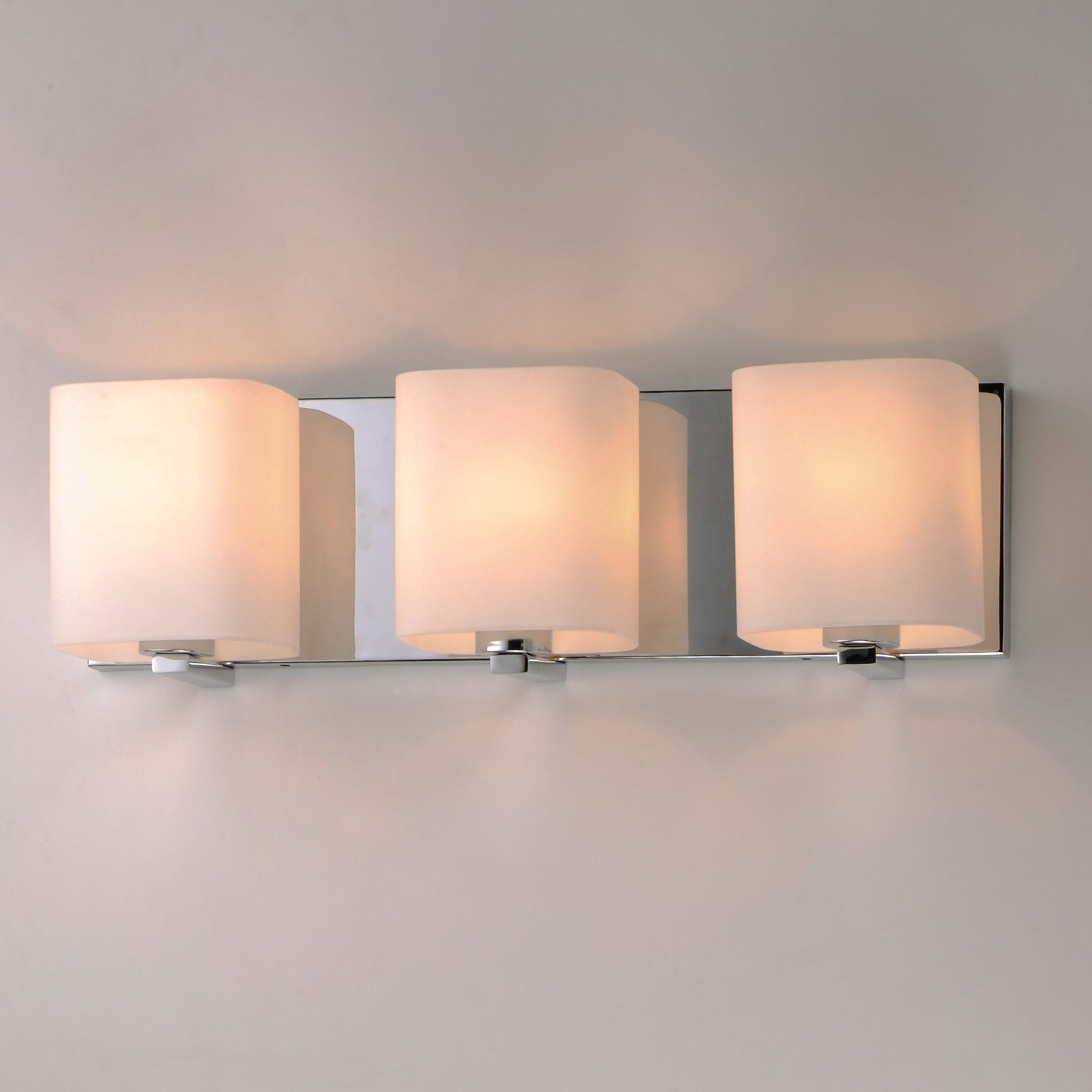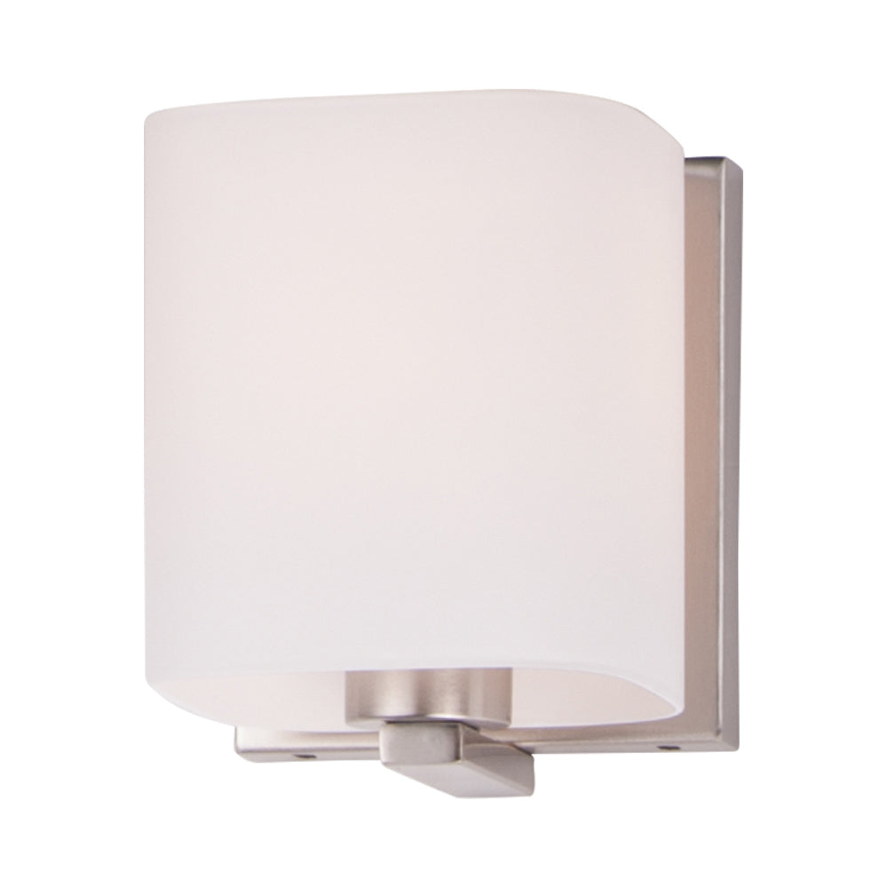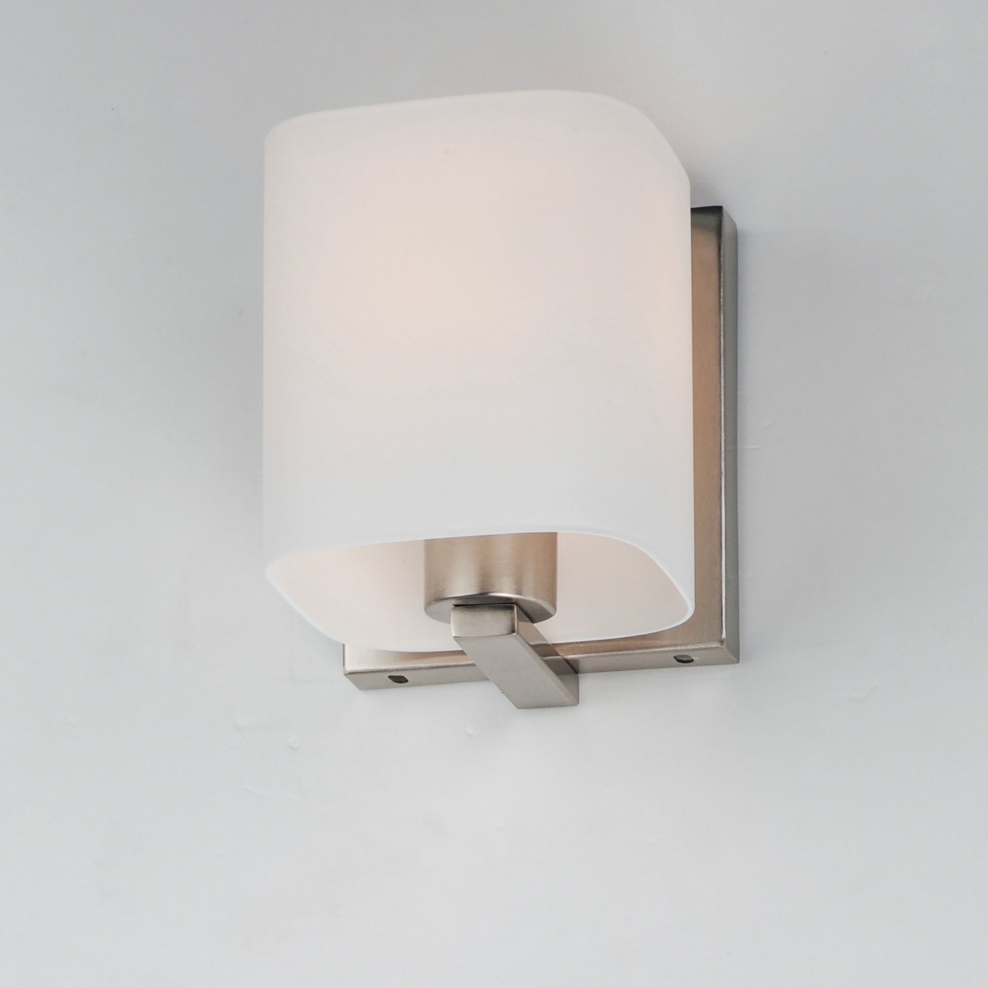 Soft satin white glass bands enrobe the Wrap Bath Vanity Light from Maxim Lighting. Perfect for bright ambient illumination in your bath or at the vanity, it delivers fresh, contemporary style. A metallic backplate is a chic complement.