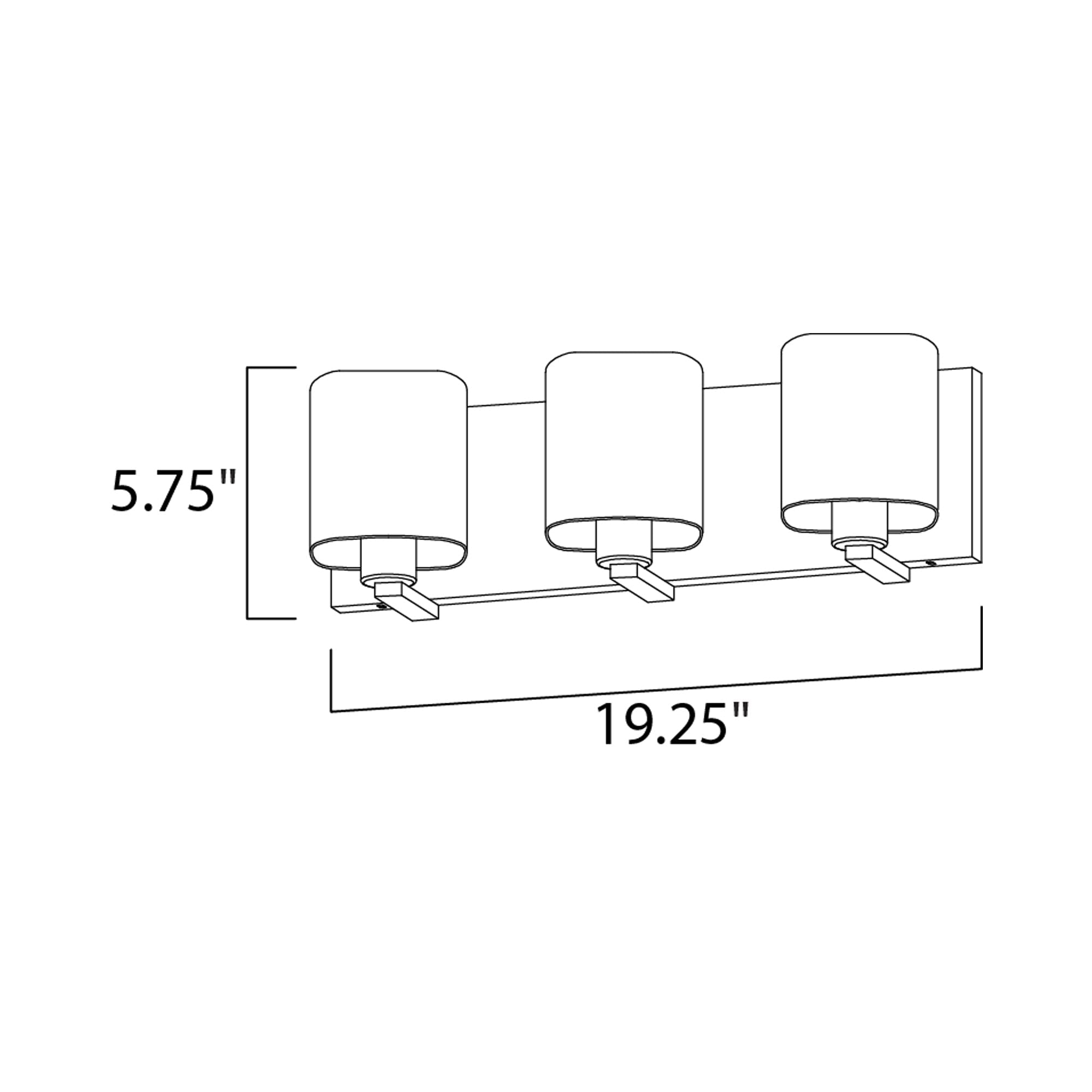 - 3-Light: 19.25"W X 5.75"H; 5.5" Extension