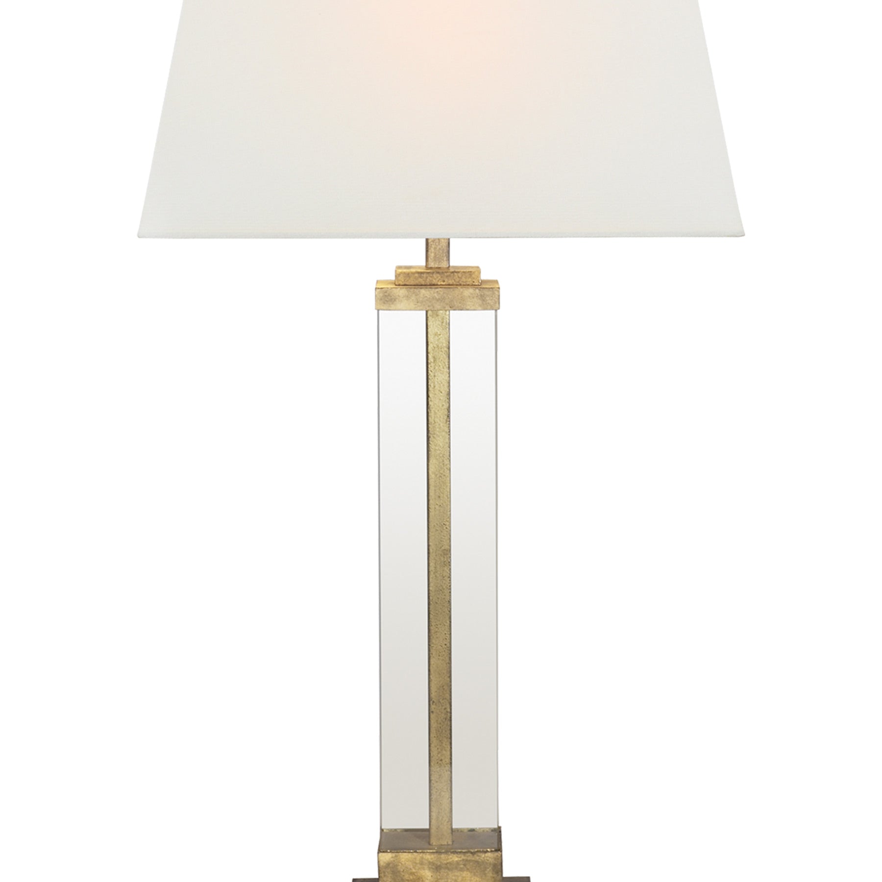 Tall and stately, the Wright Table Lamp from Visual Comfort Signature is a chic choice for a classic side table or console. Embracing traditionalism and blending timeless elegance, it features a gilded iron finish with a square column body and stepped base design that creates a sense of precision and structure. A tapering rectangular shade is the perfect complement, delivering soft, warm lighting that enhances welcoming aesthetics.