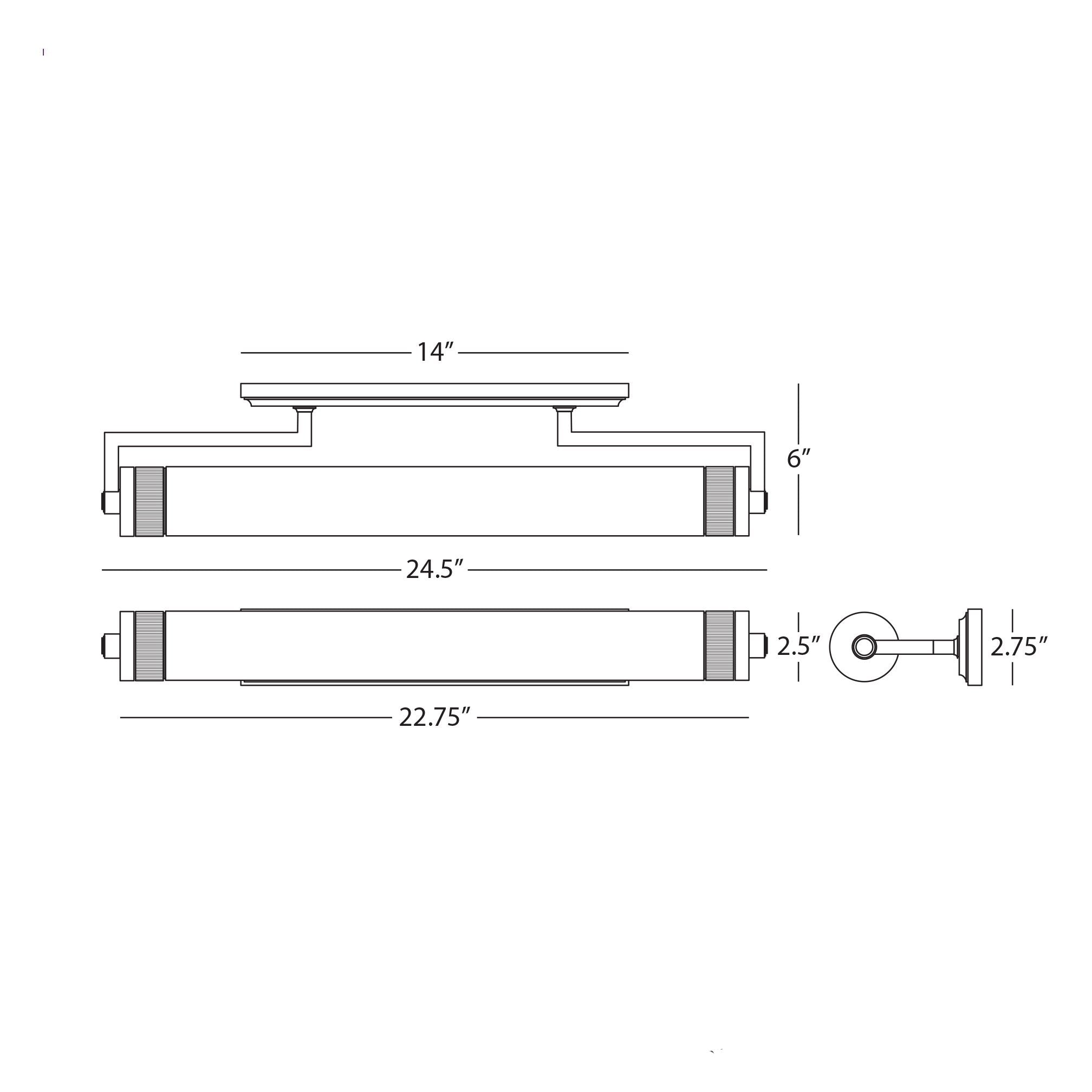 - Large: 24.5"W X 2.63"H; 6" Extension