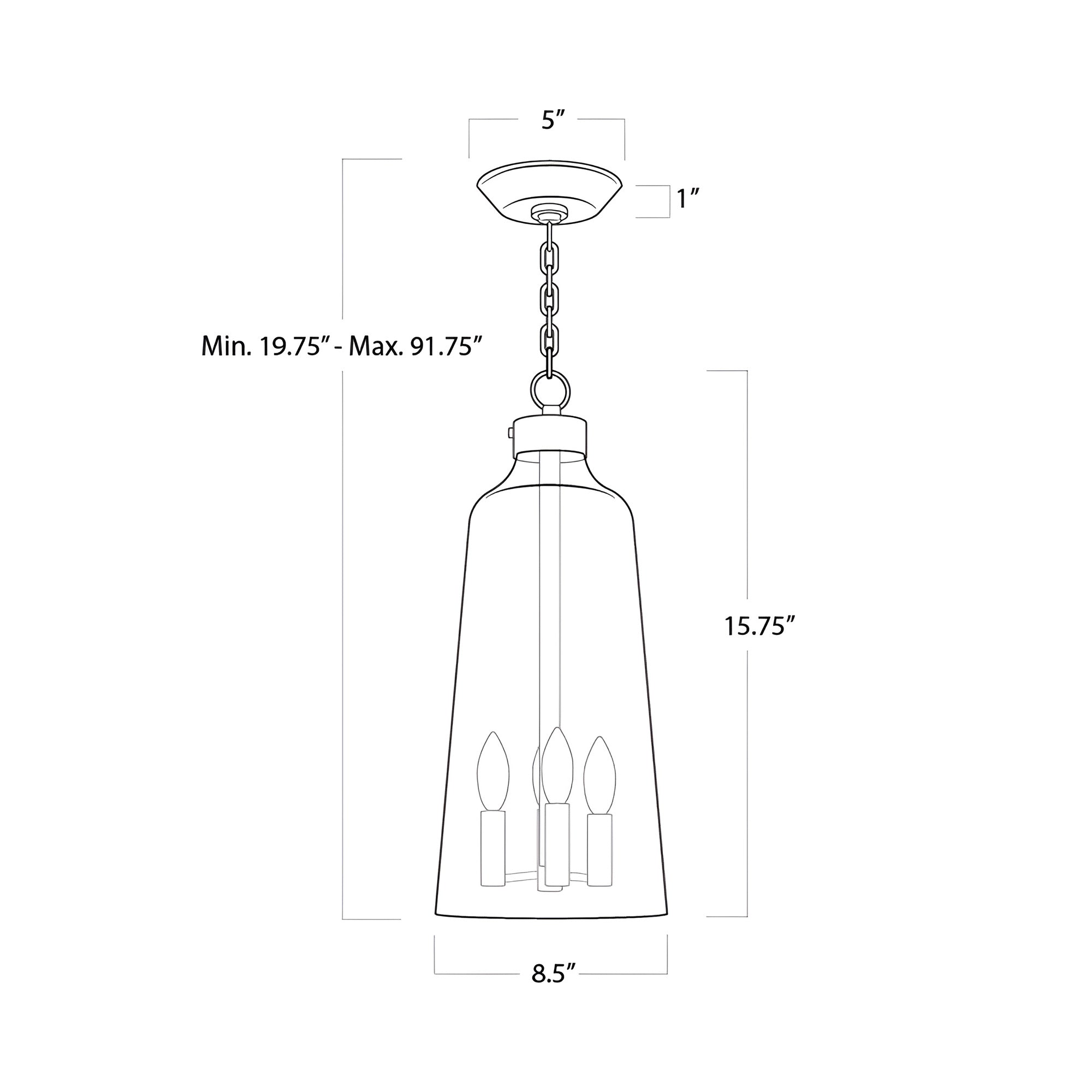 - Fixture Dimensions: 8.5"D X 15.75"H