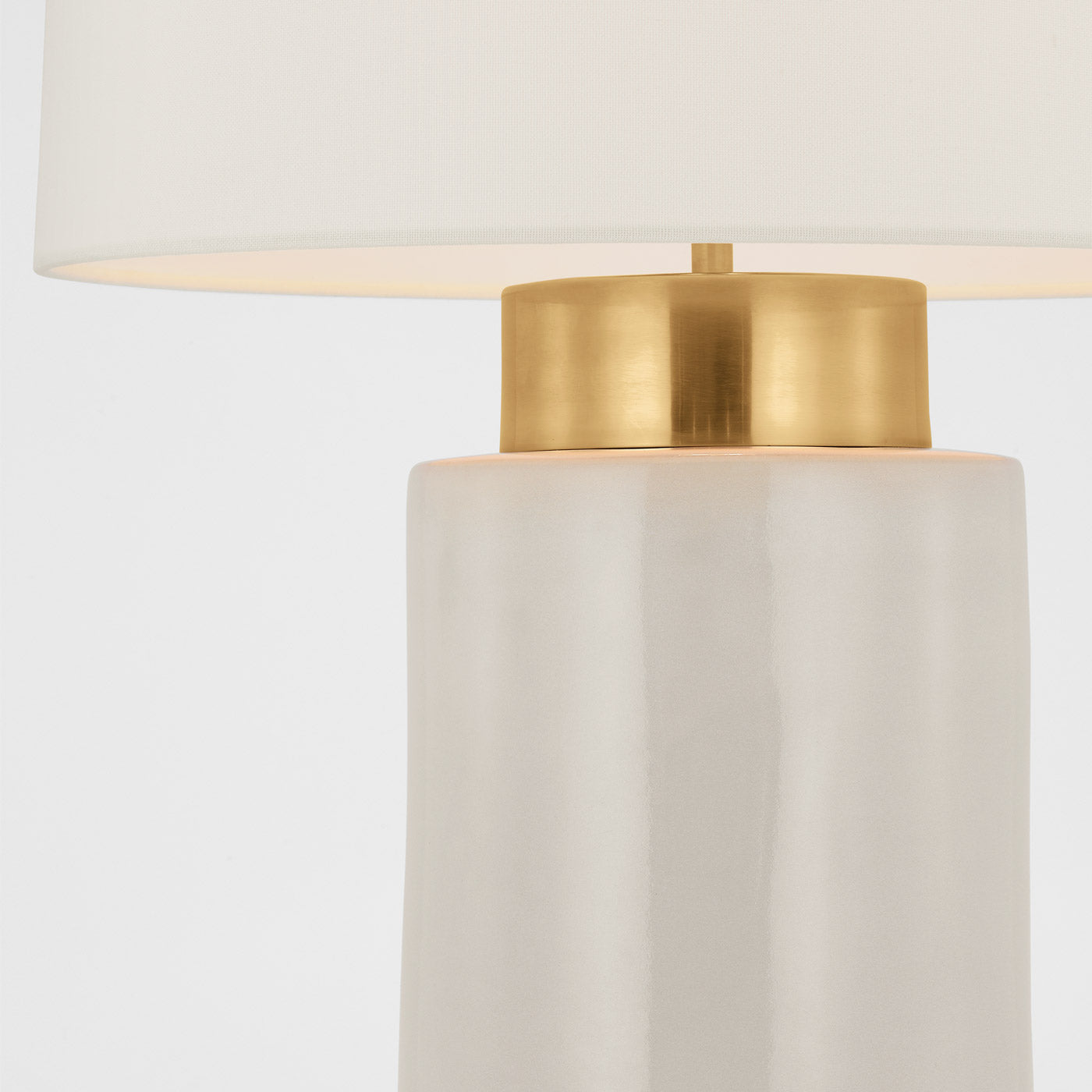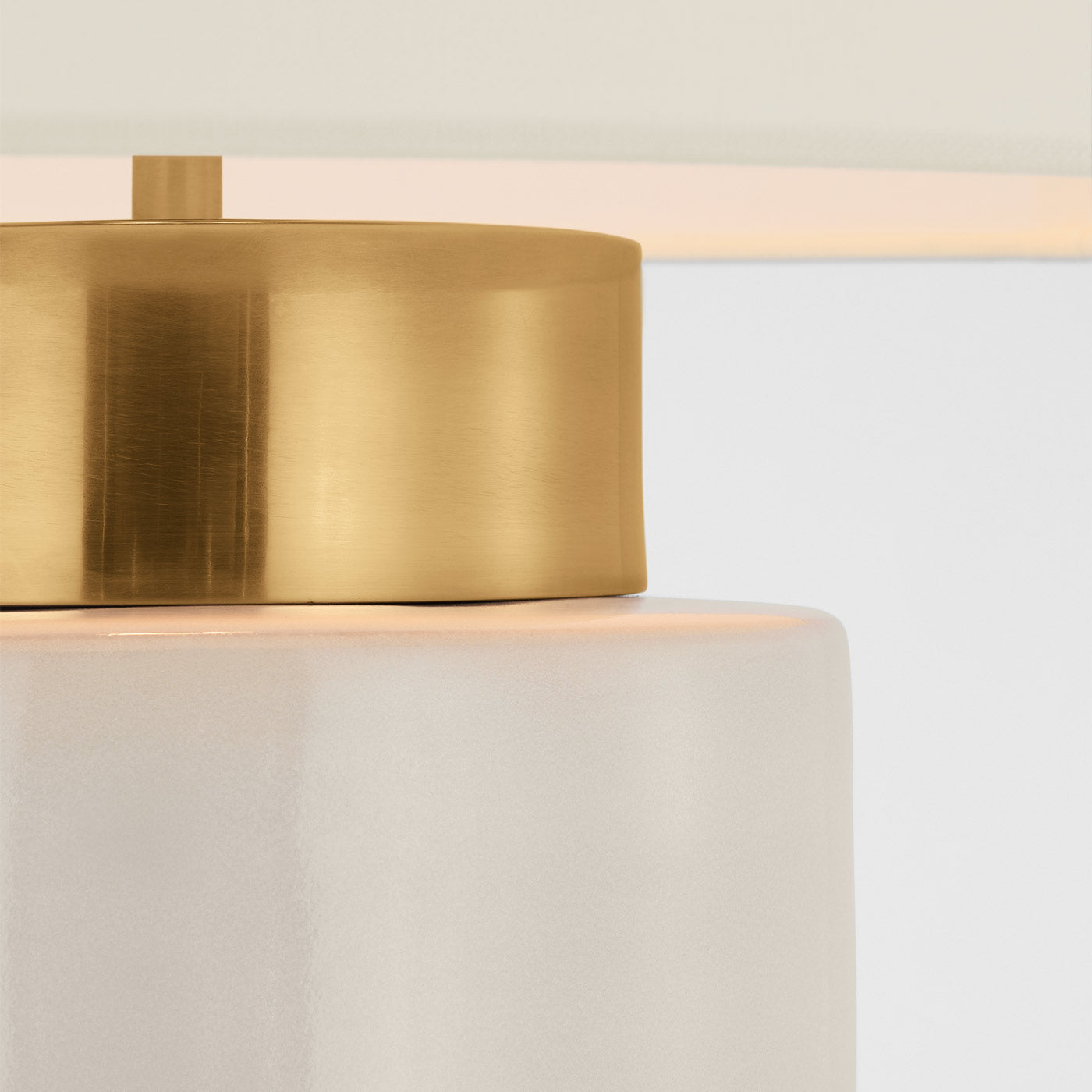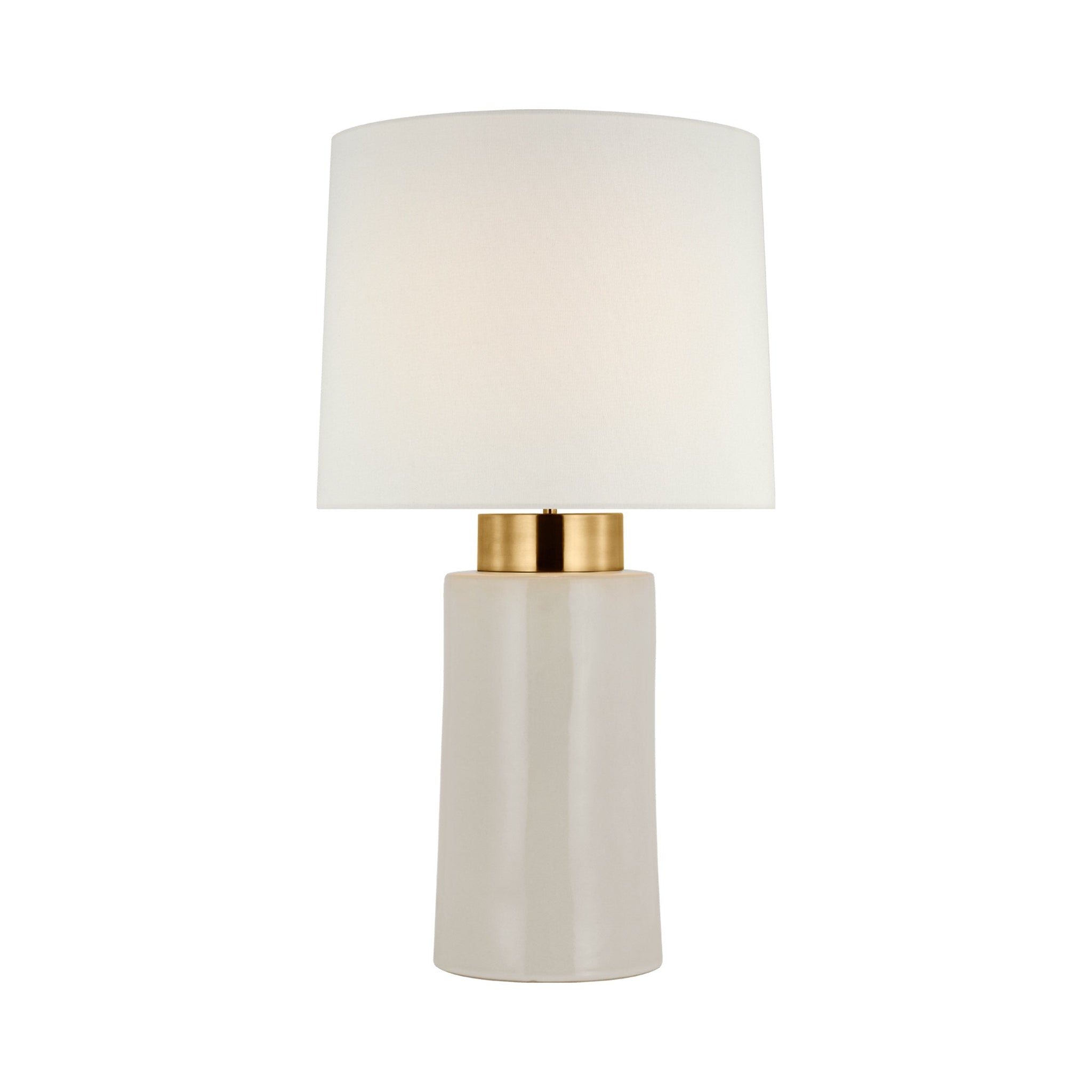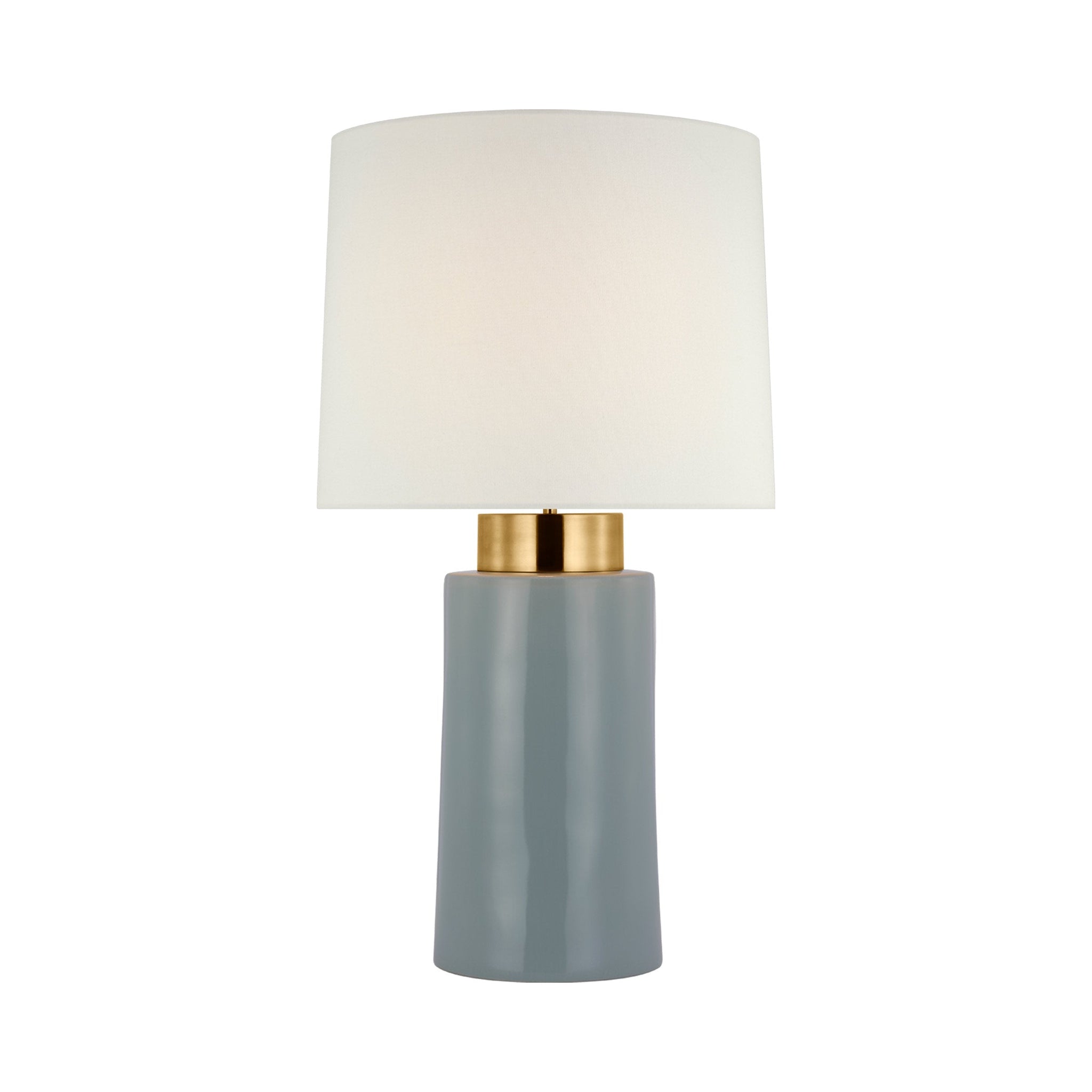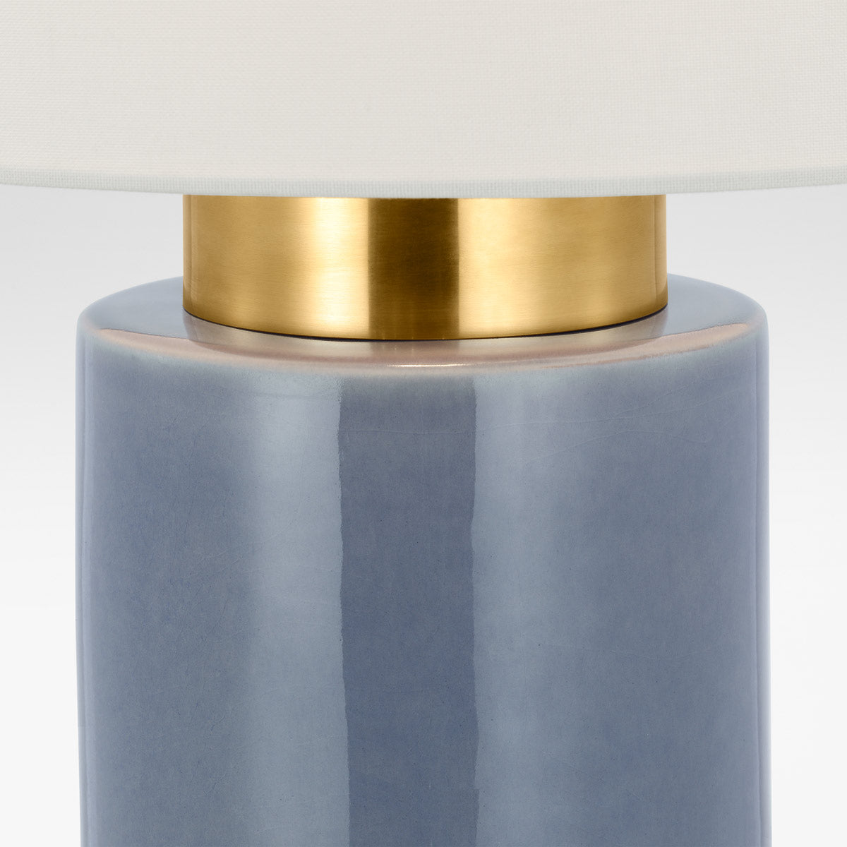 Artistic character infuses the Xian Table Lamp from Visual Comfort Signature, creating a chic accent piece for your console or side table. Its ceramic cylinder base features a reactive glaze that brings artisan spirit to the lamp, while a soft brass collar adds the perfect touch of warmth. On top, a drum shade in white linen casts bright, true illumination to establish an inviting ambiance.