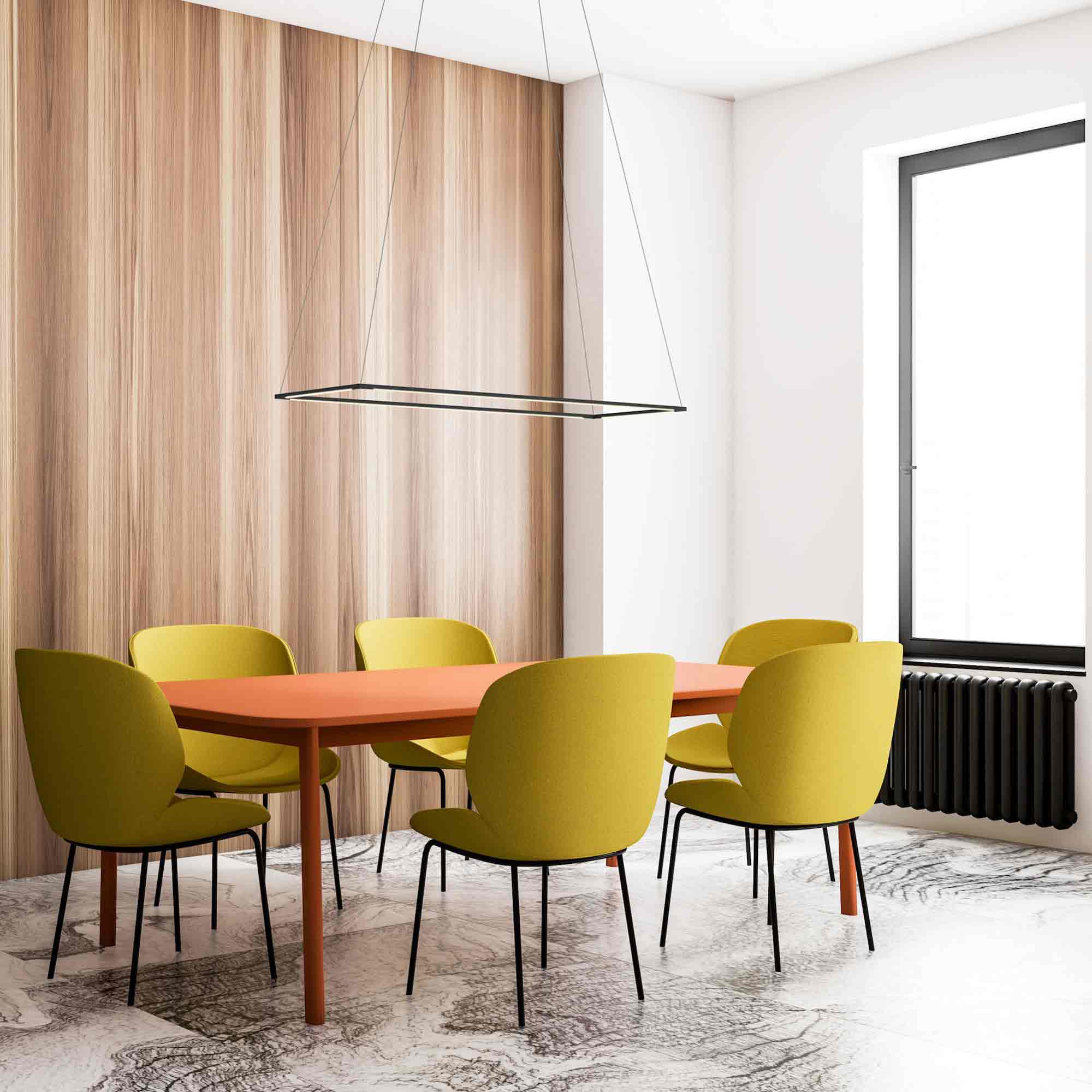 The Z-Bar Pendant line is an architectural lighting system featuring modular LED light bars. Choose from a variety of standard shapes, or design your own pendant using Koncept's dedicated web app. The "Rectangle" is a minimal standard shape featuring 4 rotatable luminaires. Compatible with ELV wall dimmers.