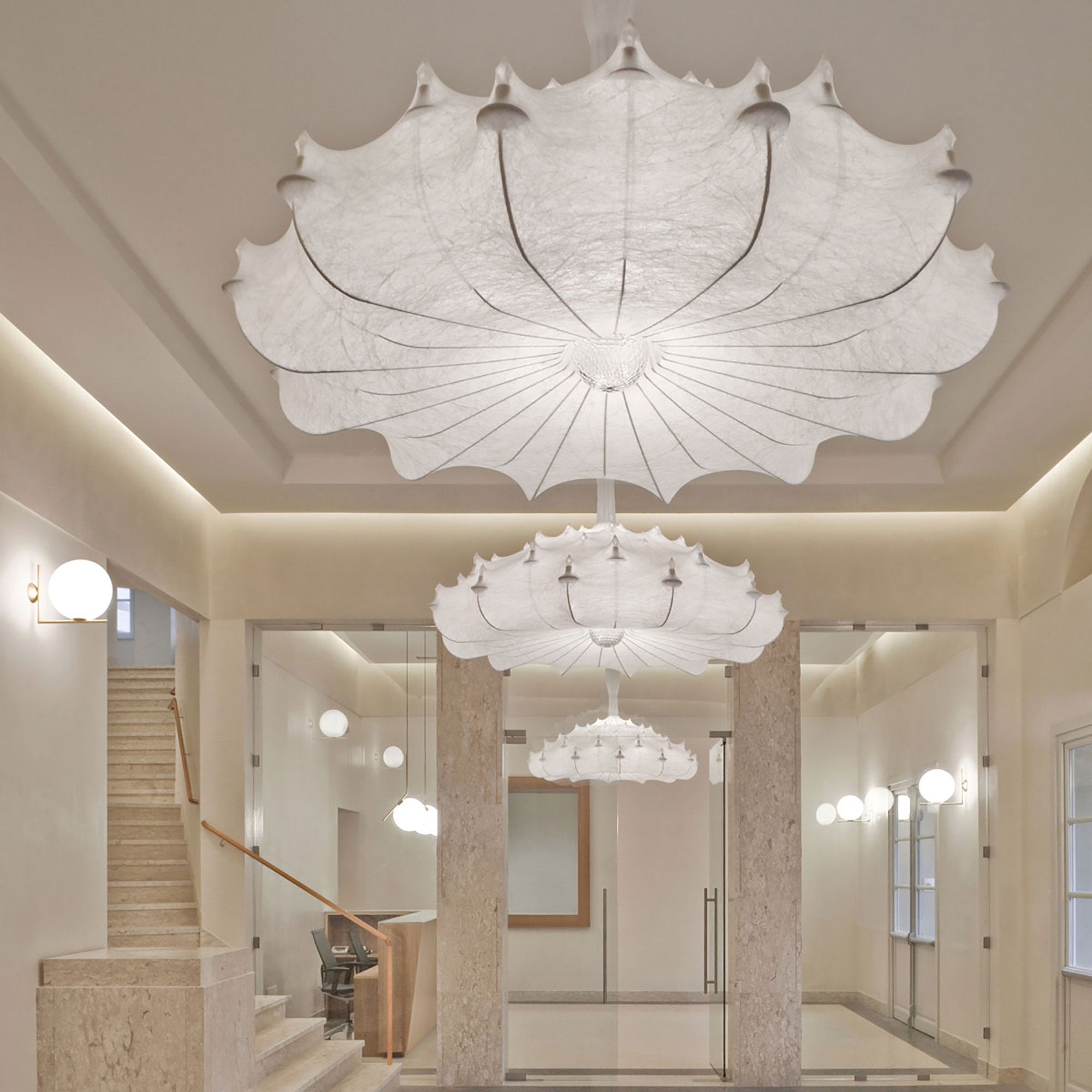 A delicate fusion of glamour and artistry, the Zeppelin Chandelier from FLOS illuminates with effortless elegance.