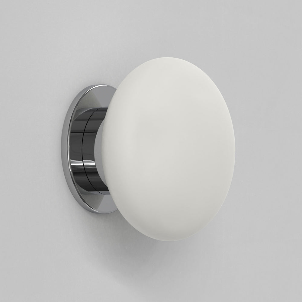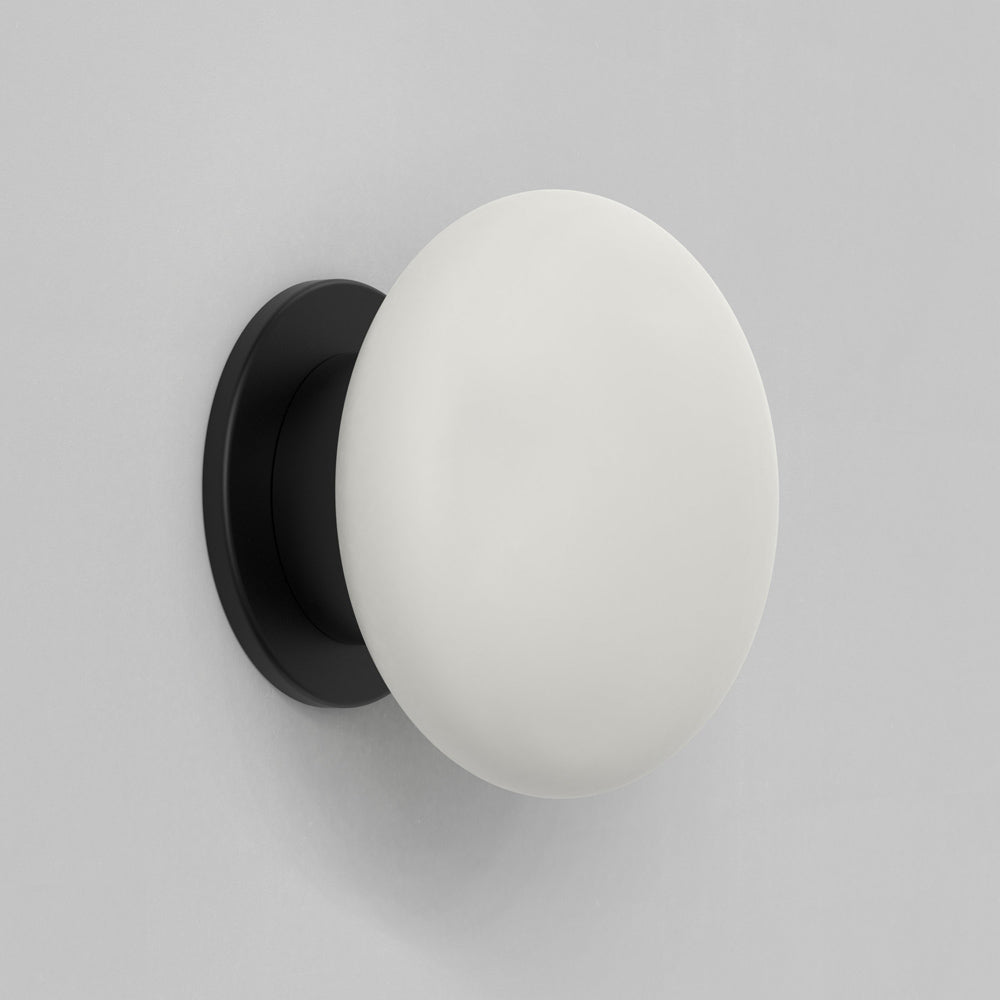 A minimalist vibe turns creative and outspoken as the Zeppo Bath Wall Light from Astro Lighting turns conventional style on its head. Its spotlight-like effect resonates in a light with a flattened orb diffuser affixed to a charming round metal wall plate. Residential or hospitality settings welcome this charming fixture.