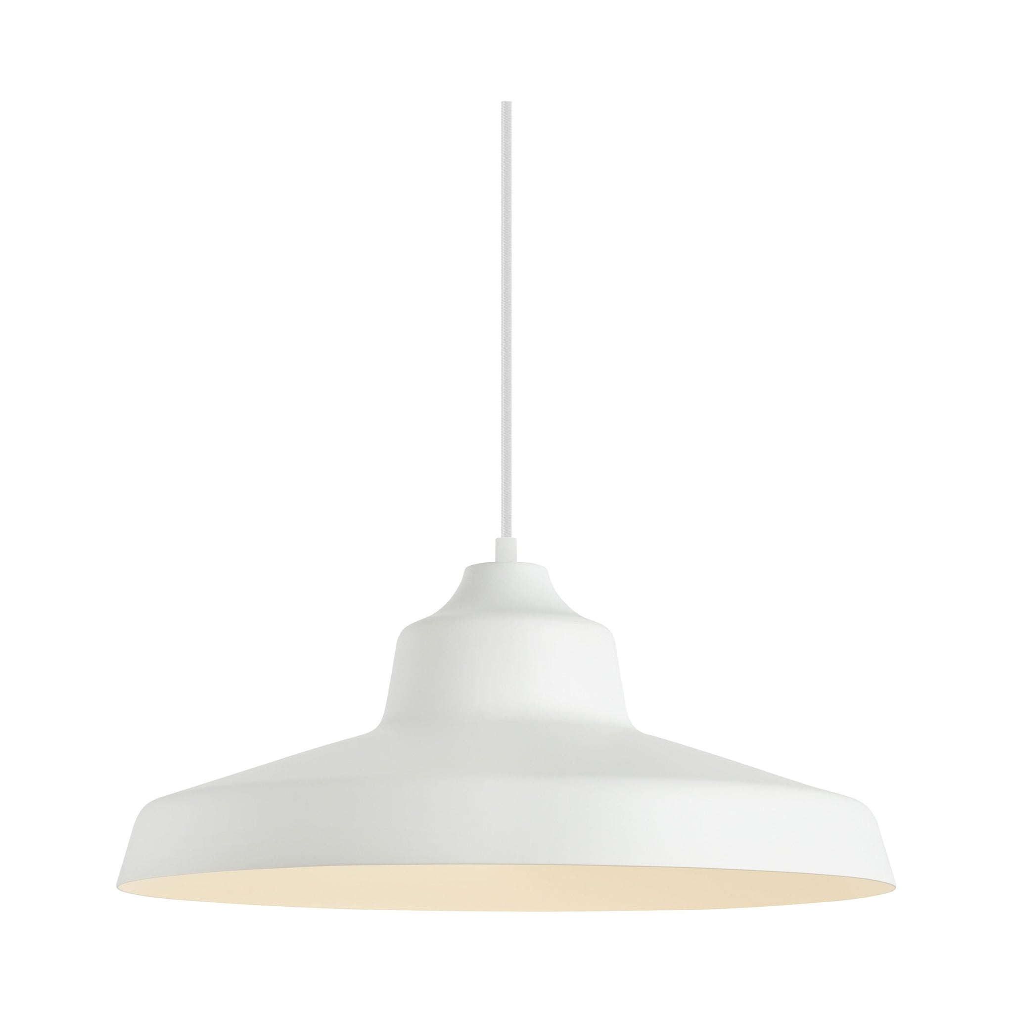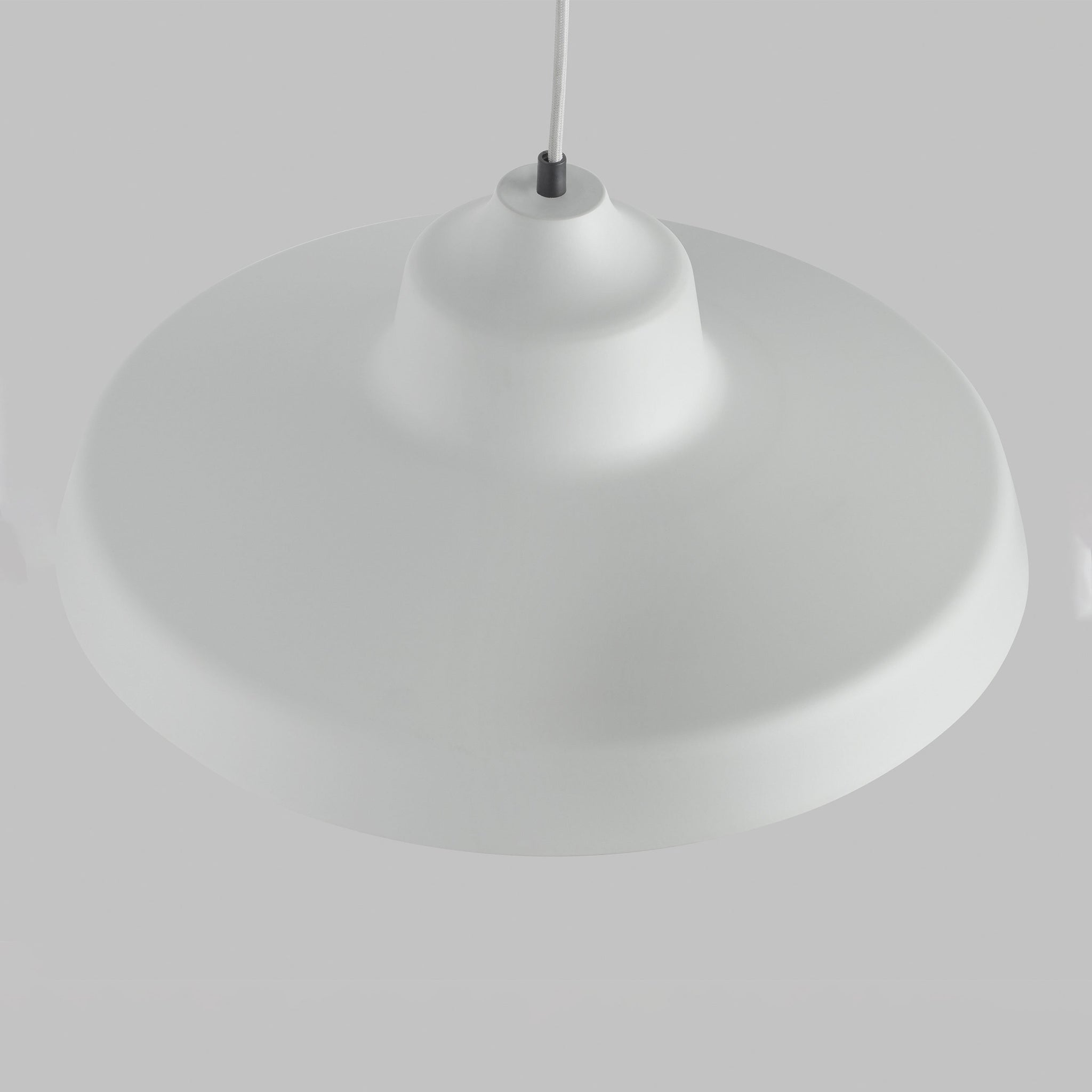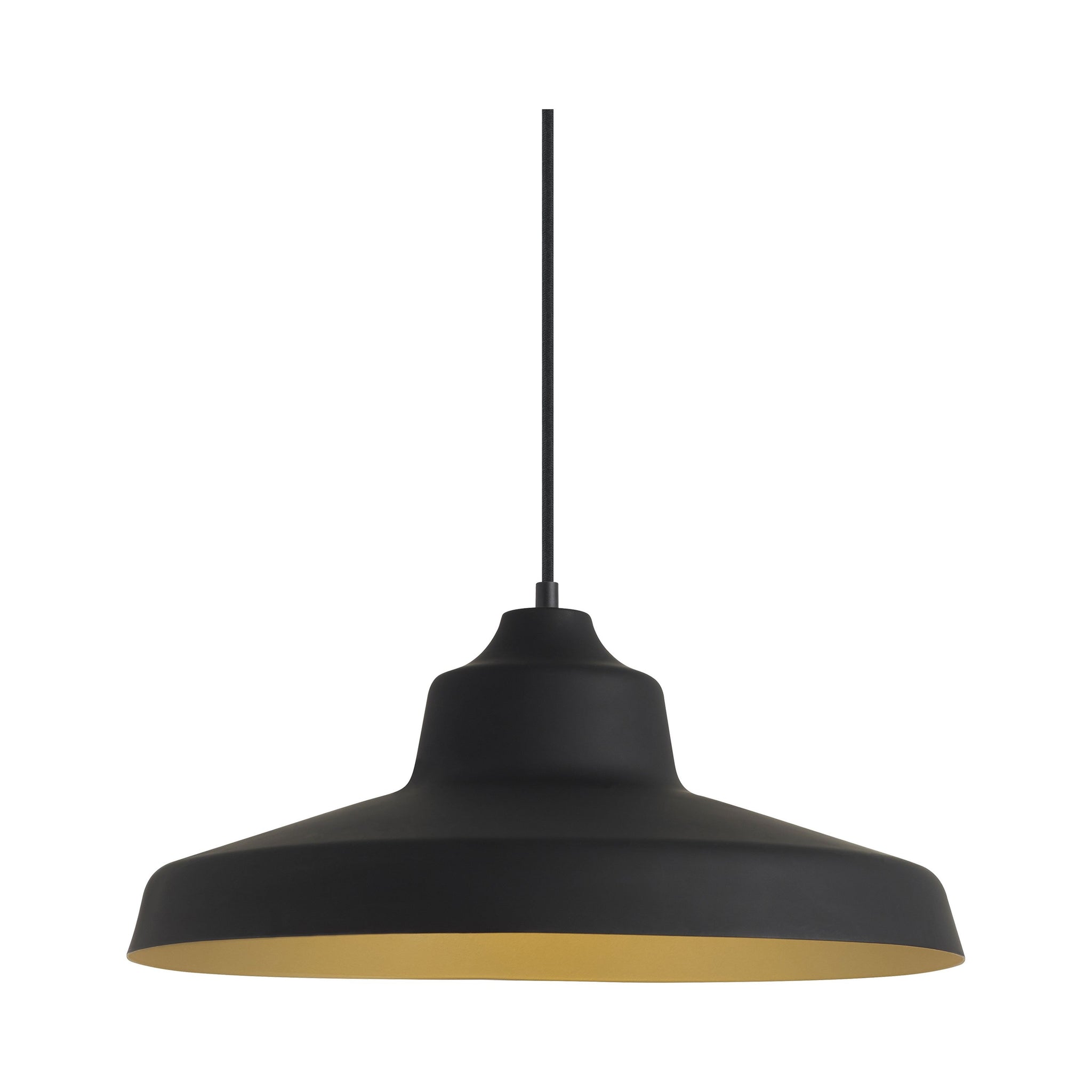 The Zevo Pendant Light light from Visual Comfort Modern is an oversized 18"diameter version of a popular industrial-inspired design and creates a bold statement no matter which of the diverse finish options is selected. Fixtures with this ubiquitous silhouette were used for decades as light in warehouses, factories, barns and are now found as light in hip restaurants and eclectic homes. Available in a Fossil Gray finish with a Black cloth cord, a Matte White finish with a White cloth cord or a Black Exterior finish coupled with a Gold Interior finish with a Black cloth cord. All with matching canopy. Damp-rated and dimmable.