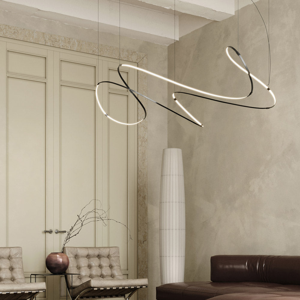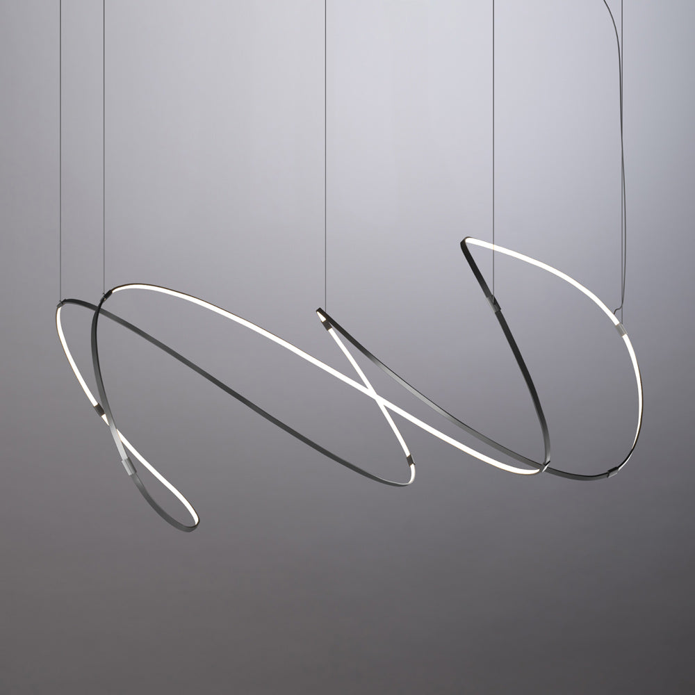A dazzling display of festive artistry finds itself at home in a modern setting as the Zigouzi LED Pendant Light from 10 heures 10 by DCWeditions offers an approachable dose of playful style. Its ribbon-like twisted frame lined with diffusing material creates a light show like no other, capitalizing on both sculptural glam and an effervescent look.