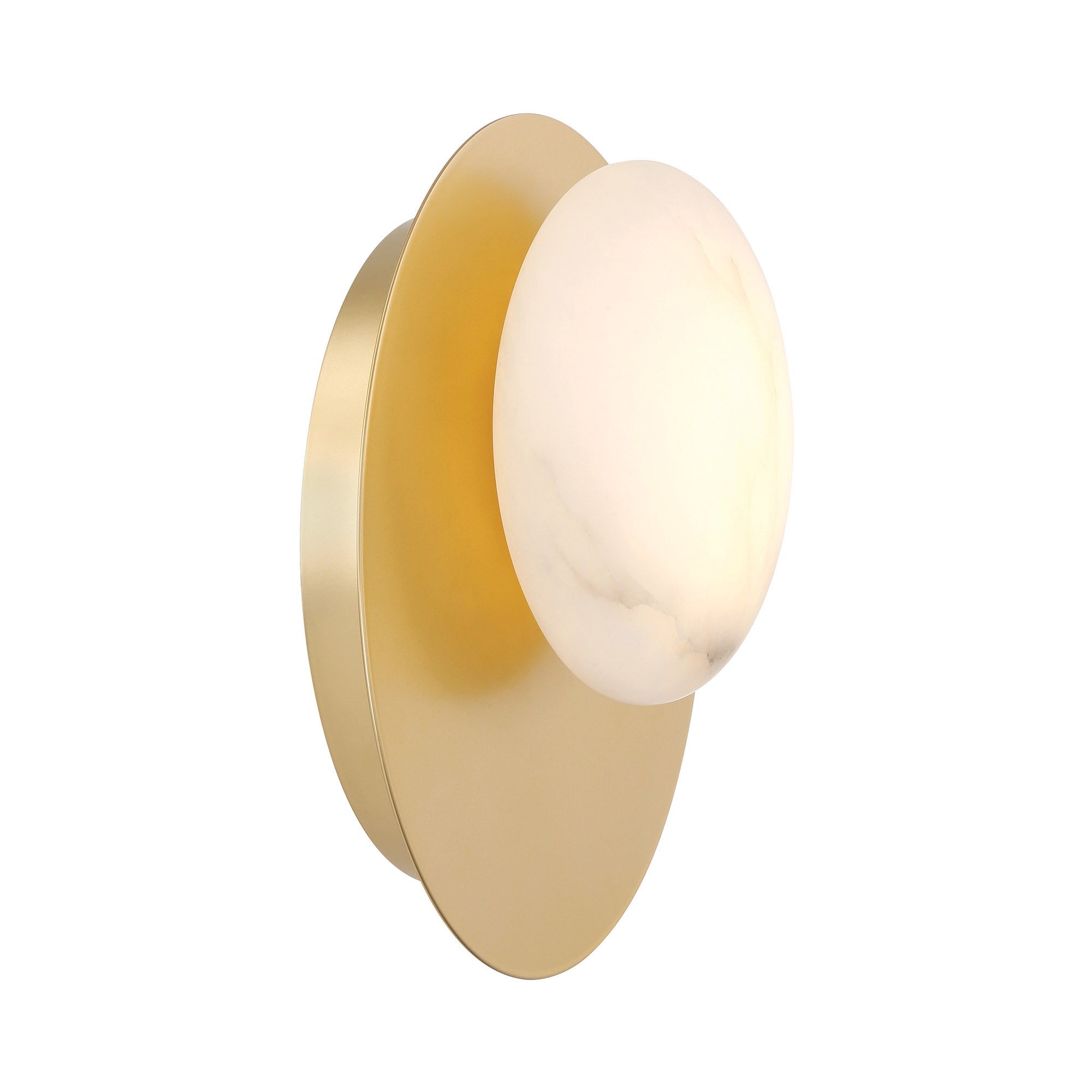 An unmistakable iteration of jeweled elegance shapes the Zill LED Wall Light from Minka Lavery, creating an unexpected upgrade to minimalism. Alabaster creates a dimensional oval shade, adding organic style to a fixture with an exquisite lily gold finish metal oval backplate.